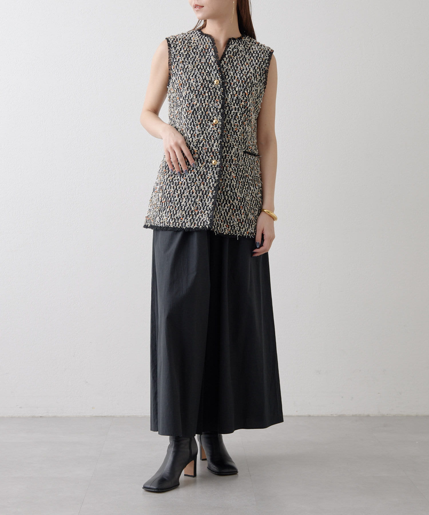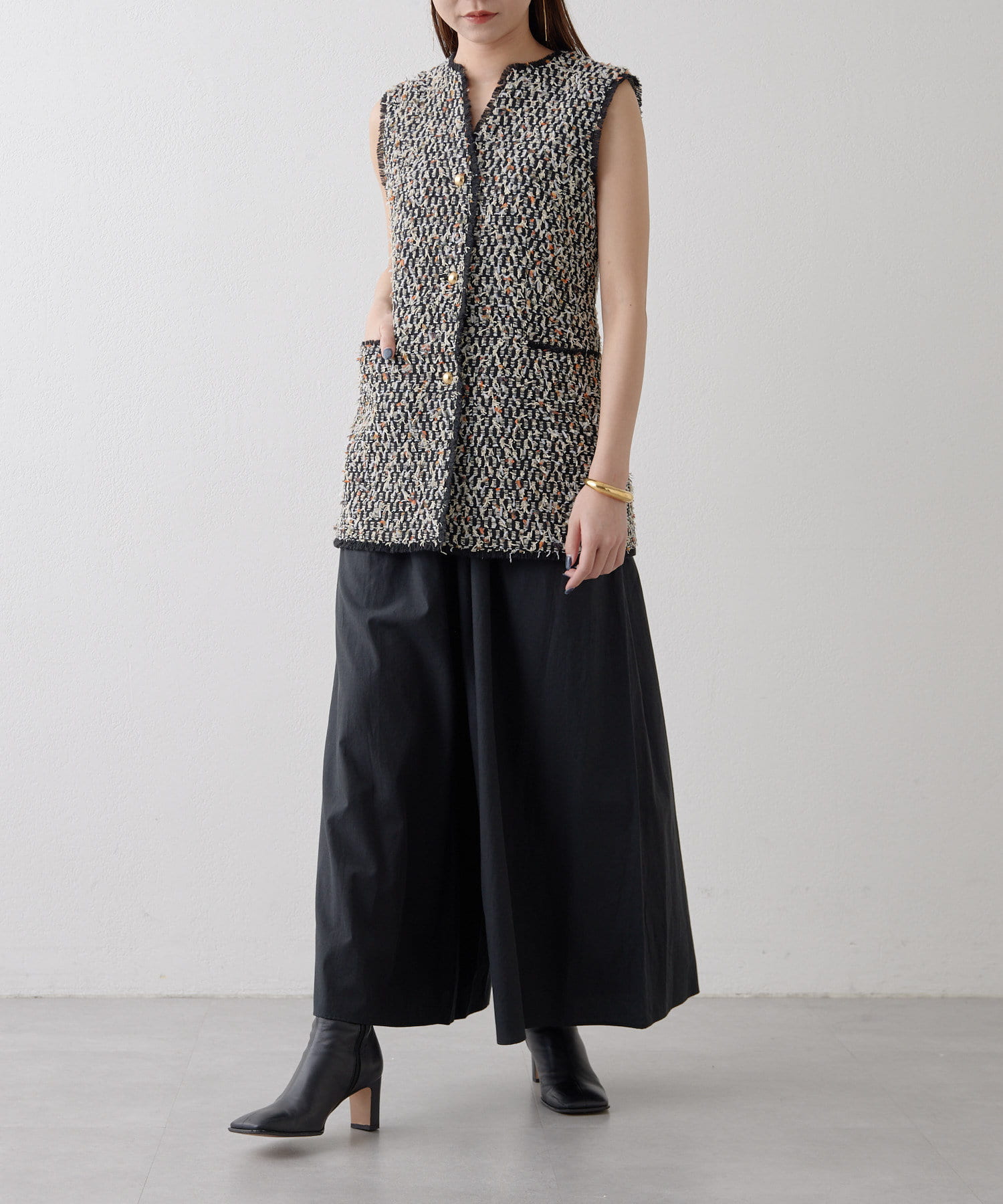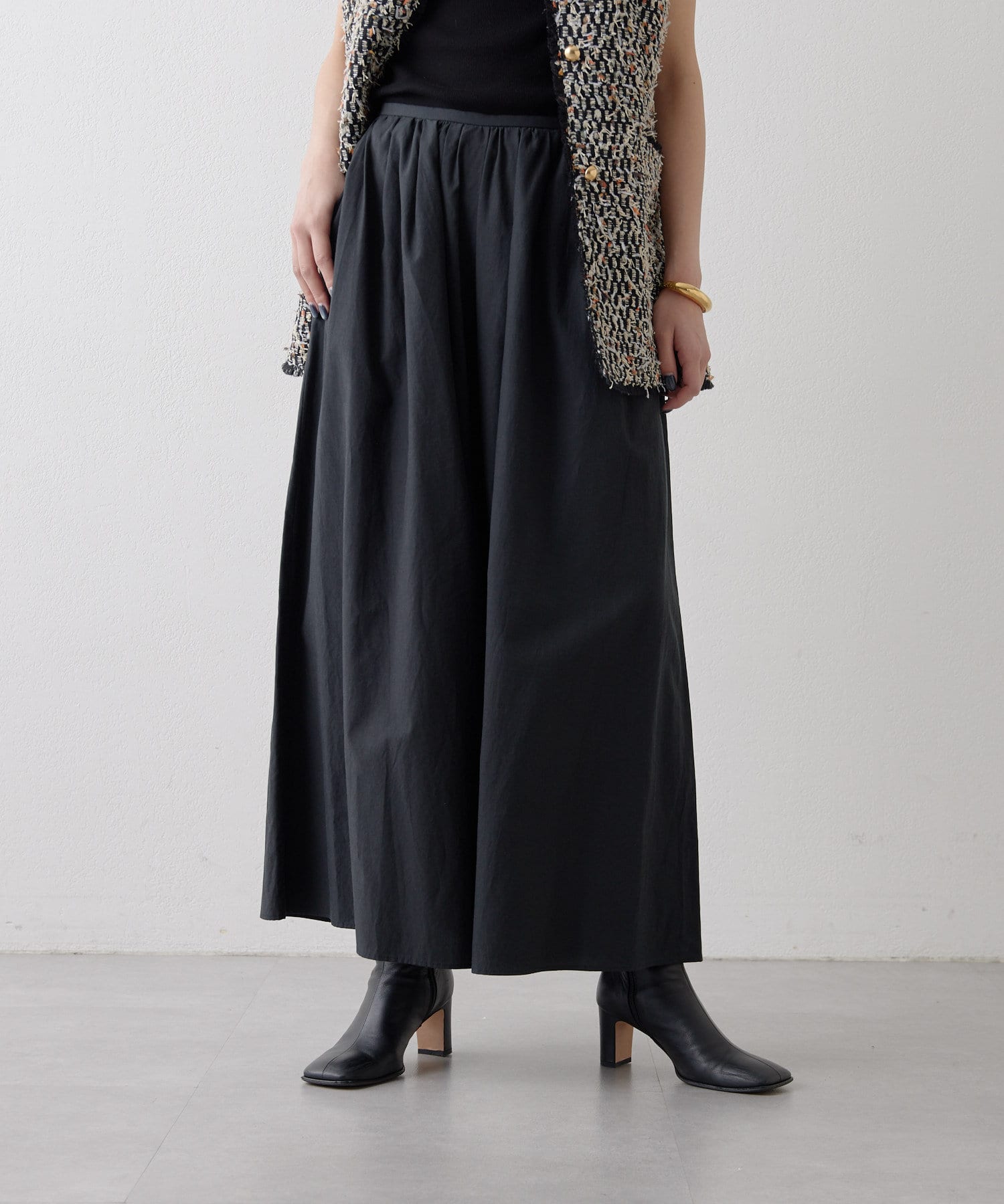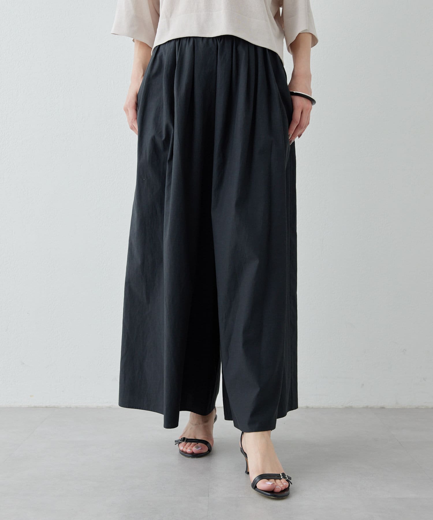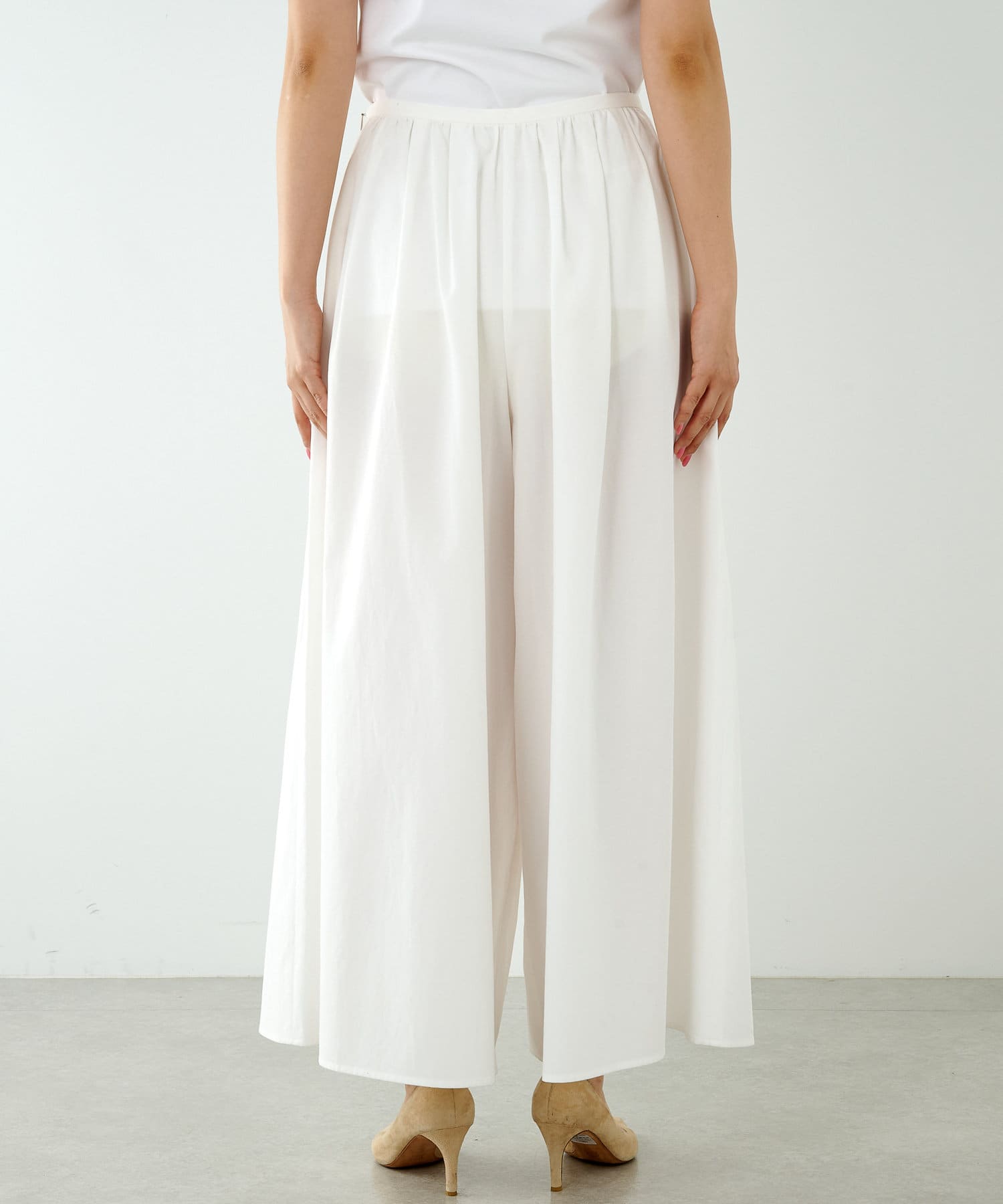 ■ウエストにしっかりとタックギャザーを入れることで、フレアスカートのような華やかさのあるシルエットに。