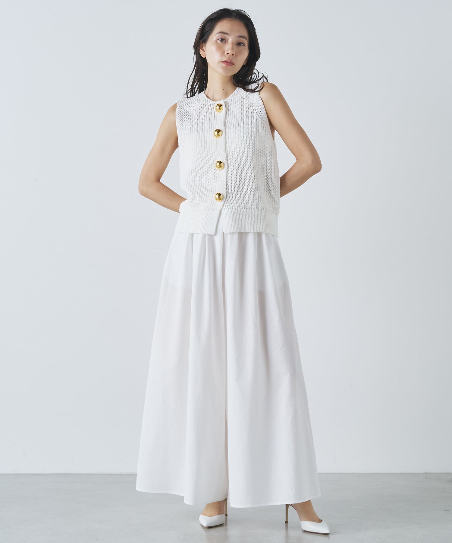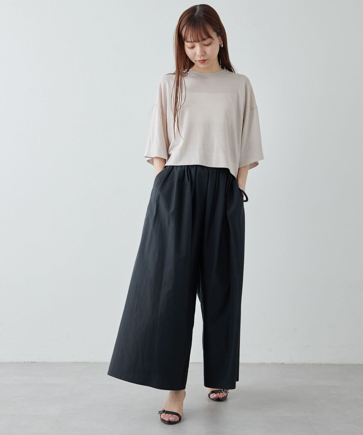 スカートみたいなワイドパンツは、とにかく涼しく快適です。36サイズでも、腰履きデザインなので、ウエスト周りはゆったりと感じました。