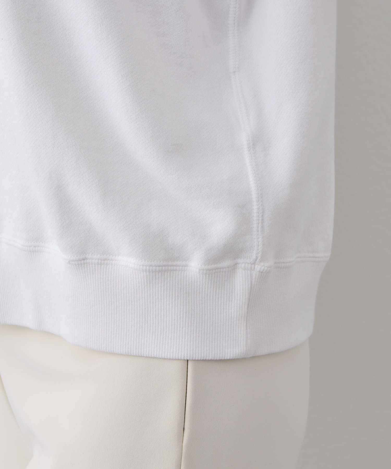 ■空気を含んだようにふっくらと柔らかい編み地に洗濯を繰り返して少しカサついた糸感に生地加工にて着古したようなくったり感を加えました。