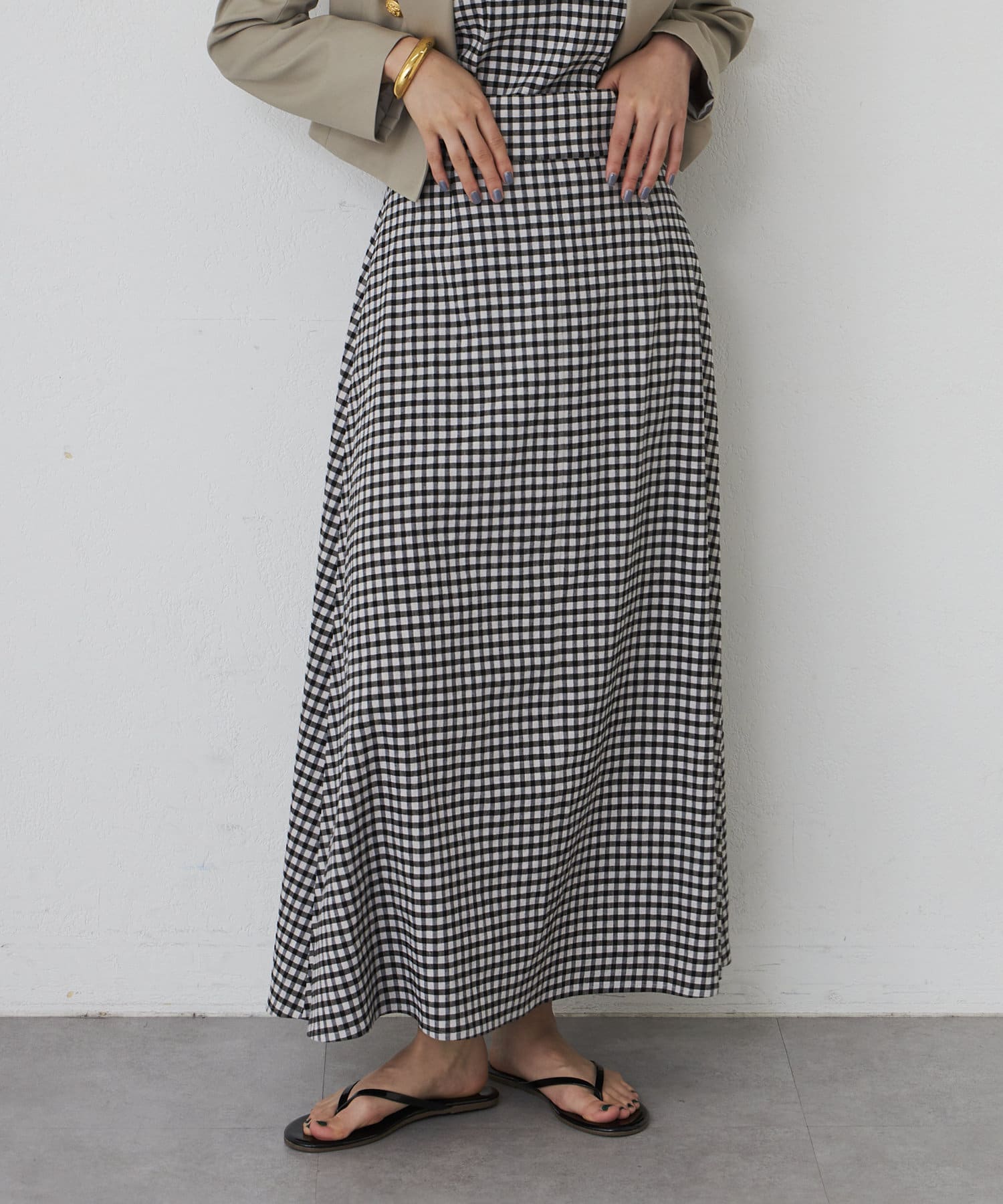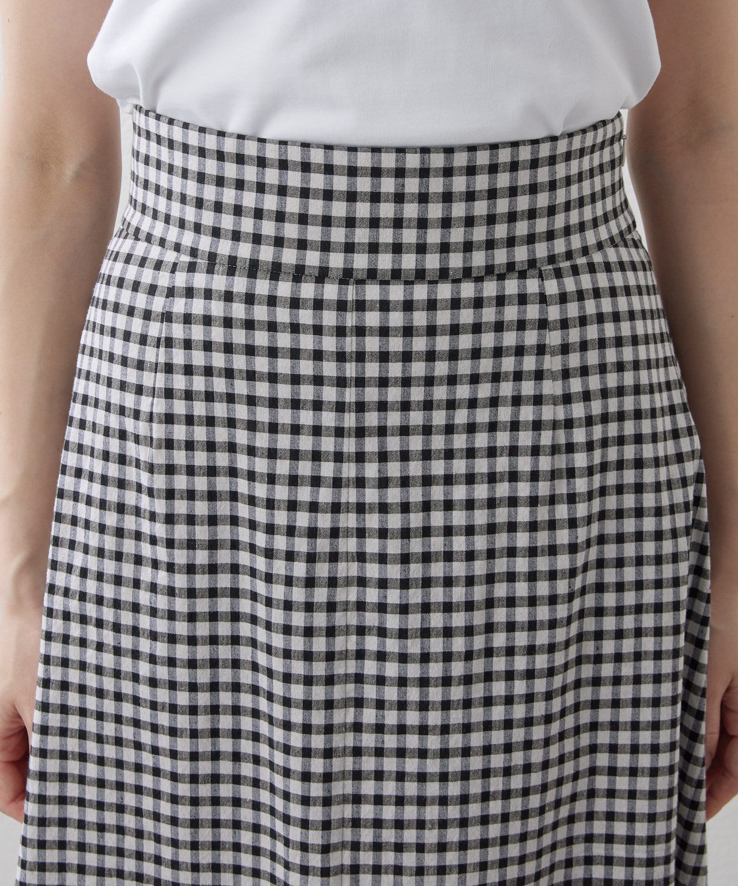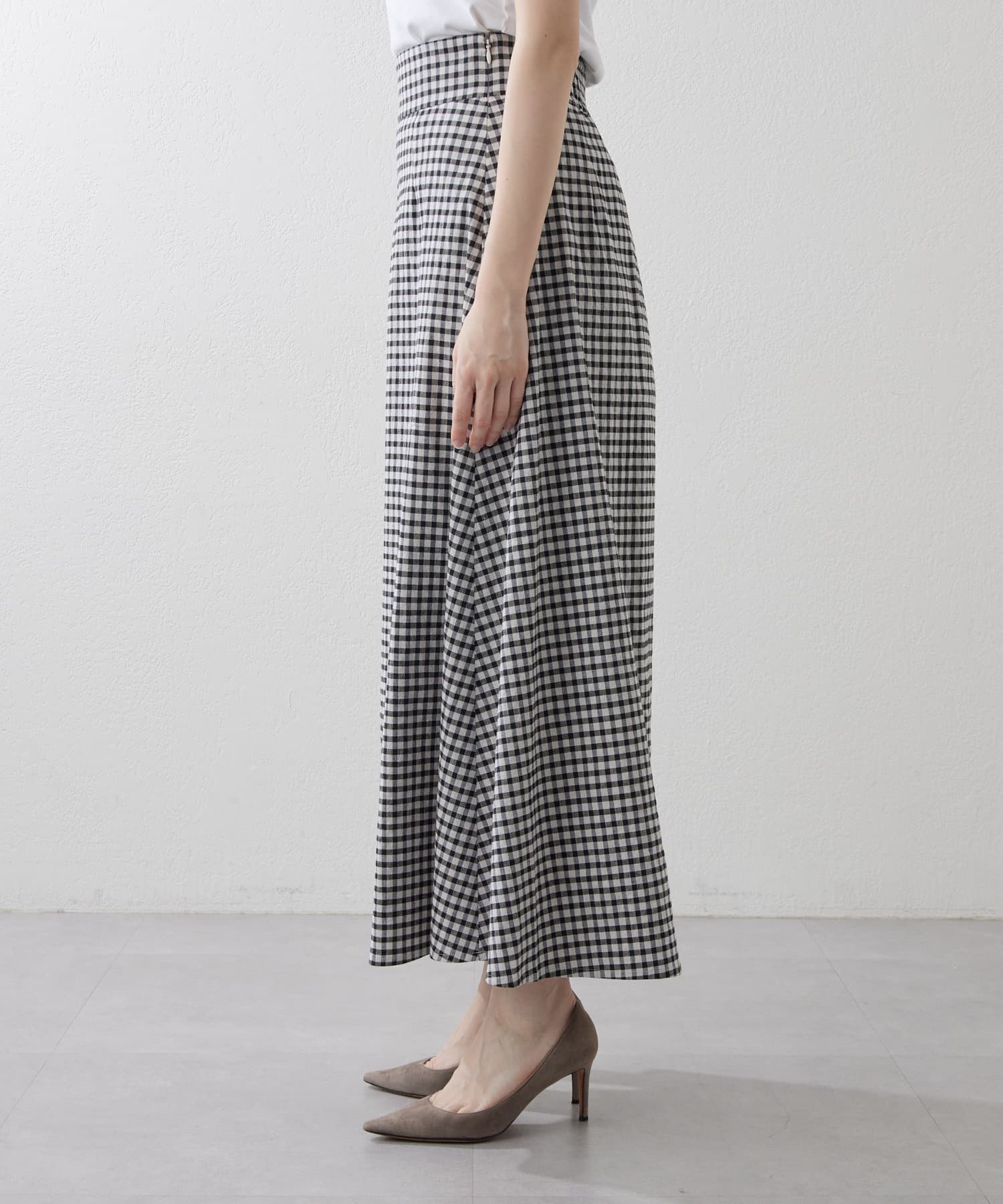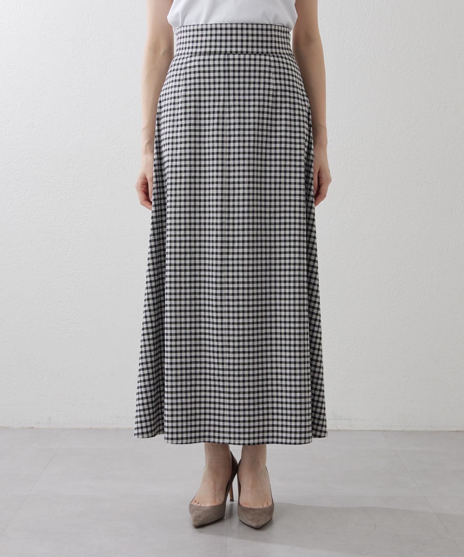 ■直線的なフレアシルエットがすっきりとした印象のスカート。