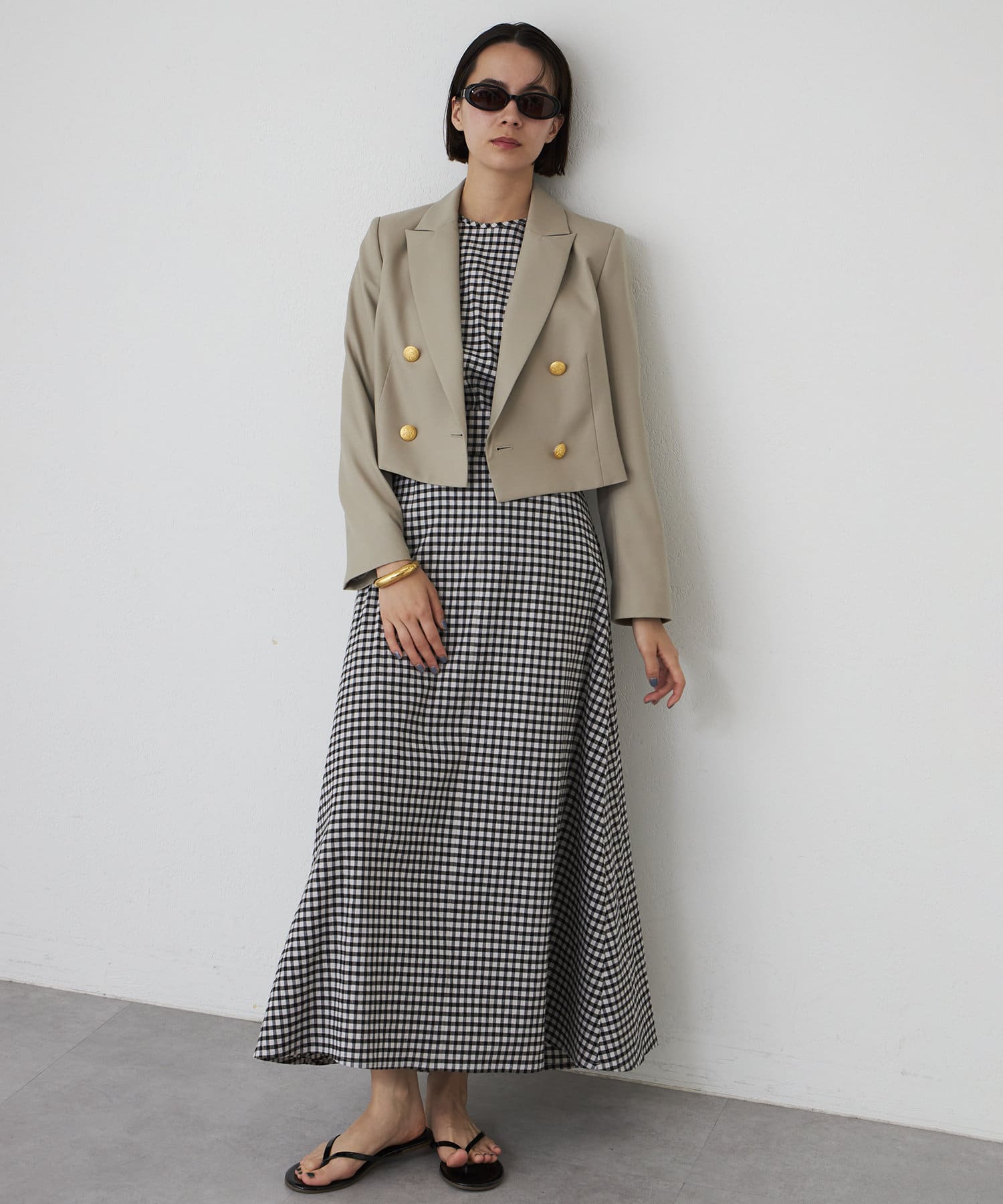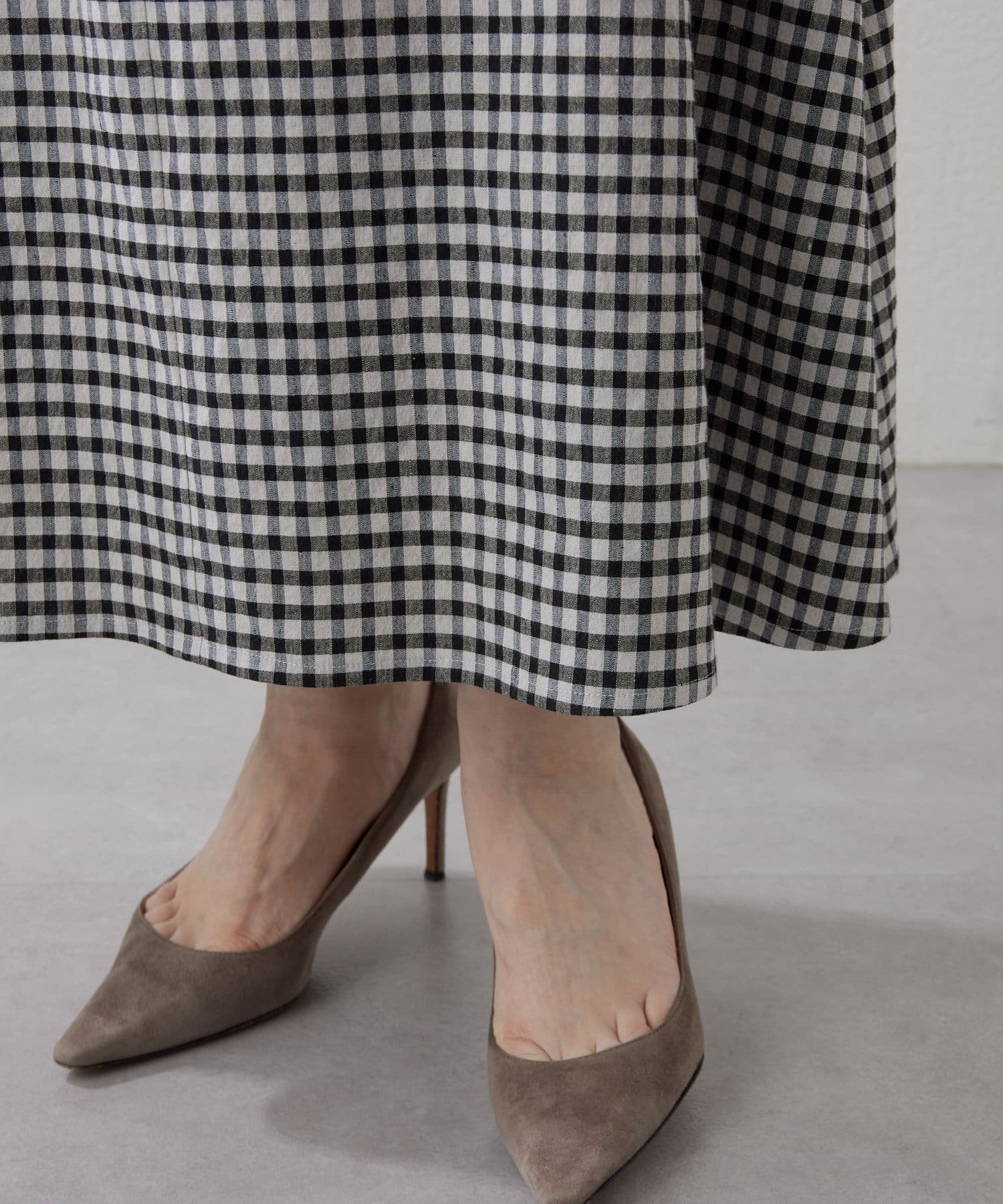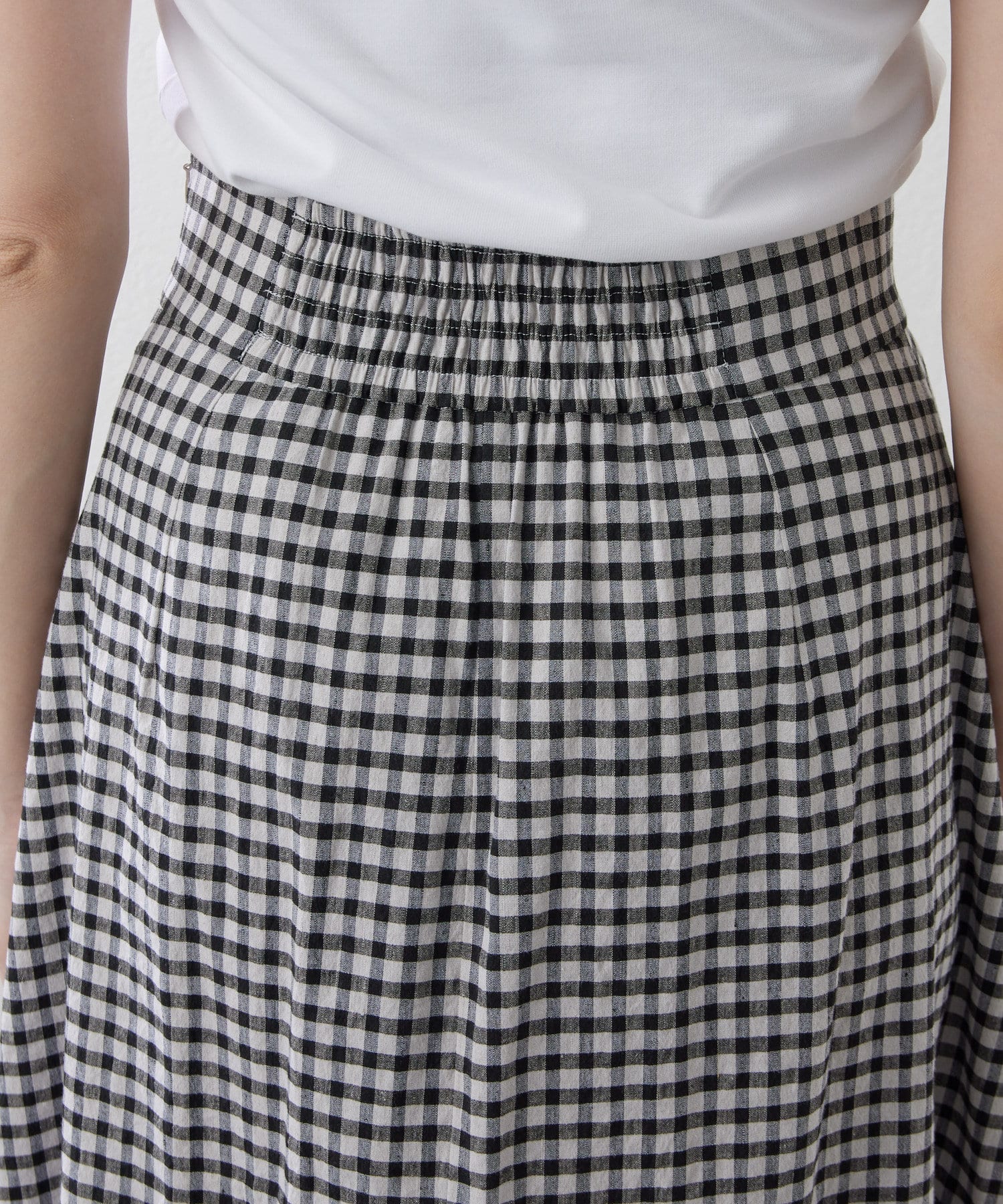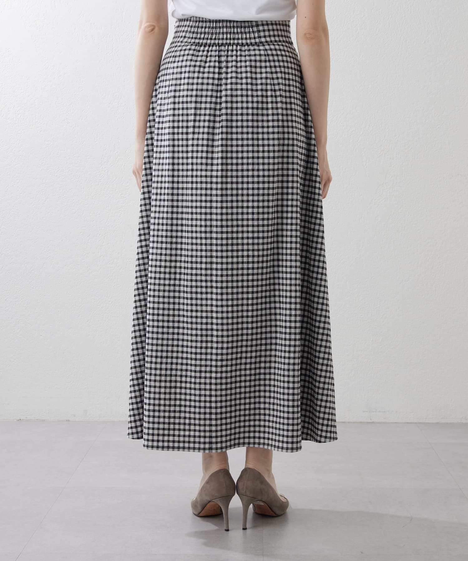 ■直線的なフレアシルエットがすっきりとした印象のスカート。
