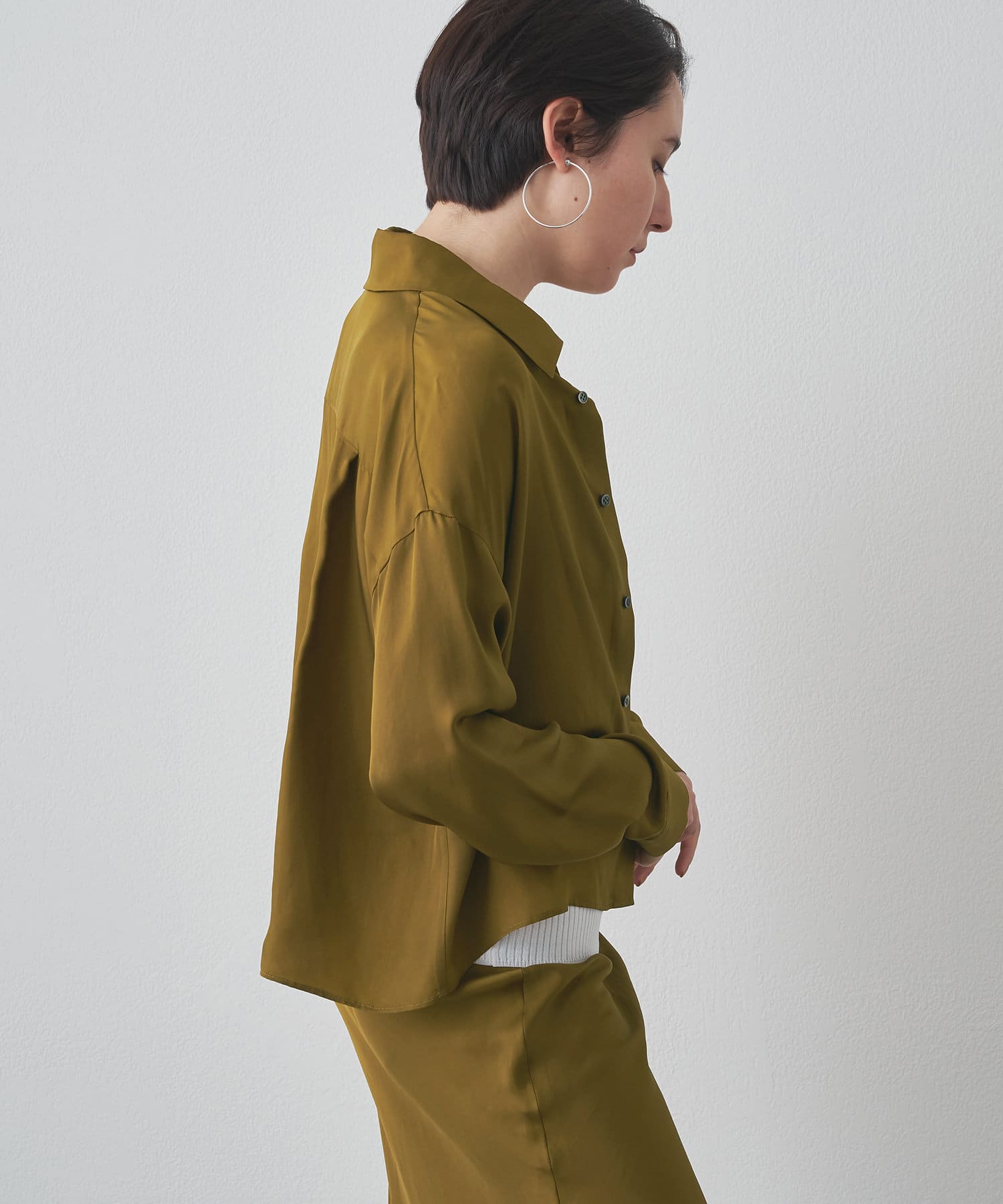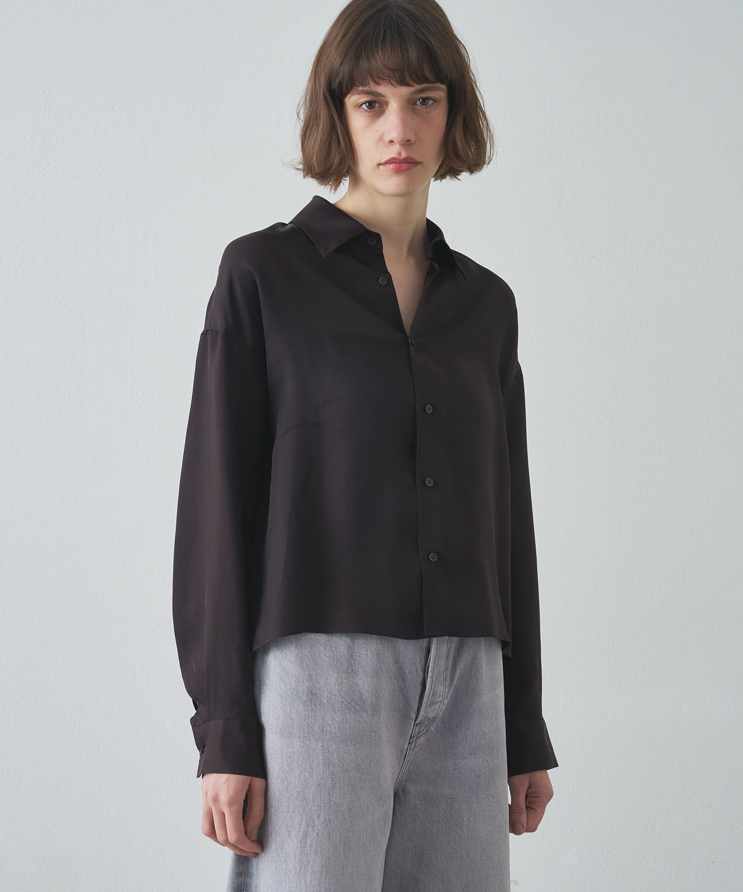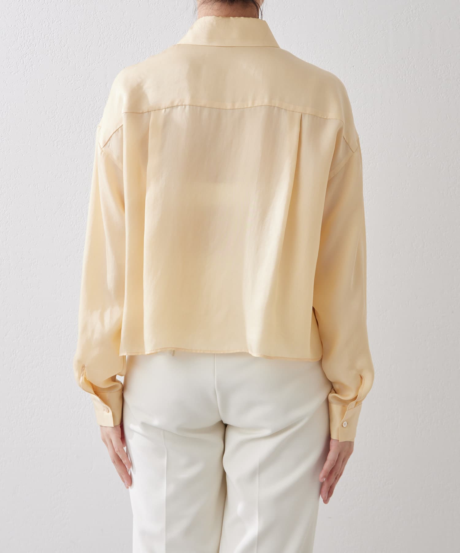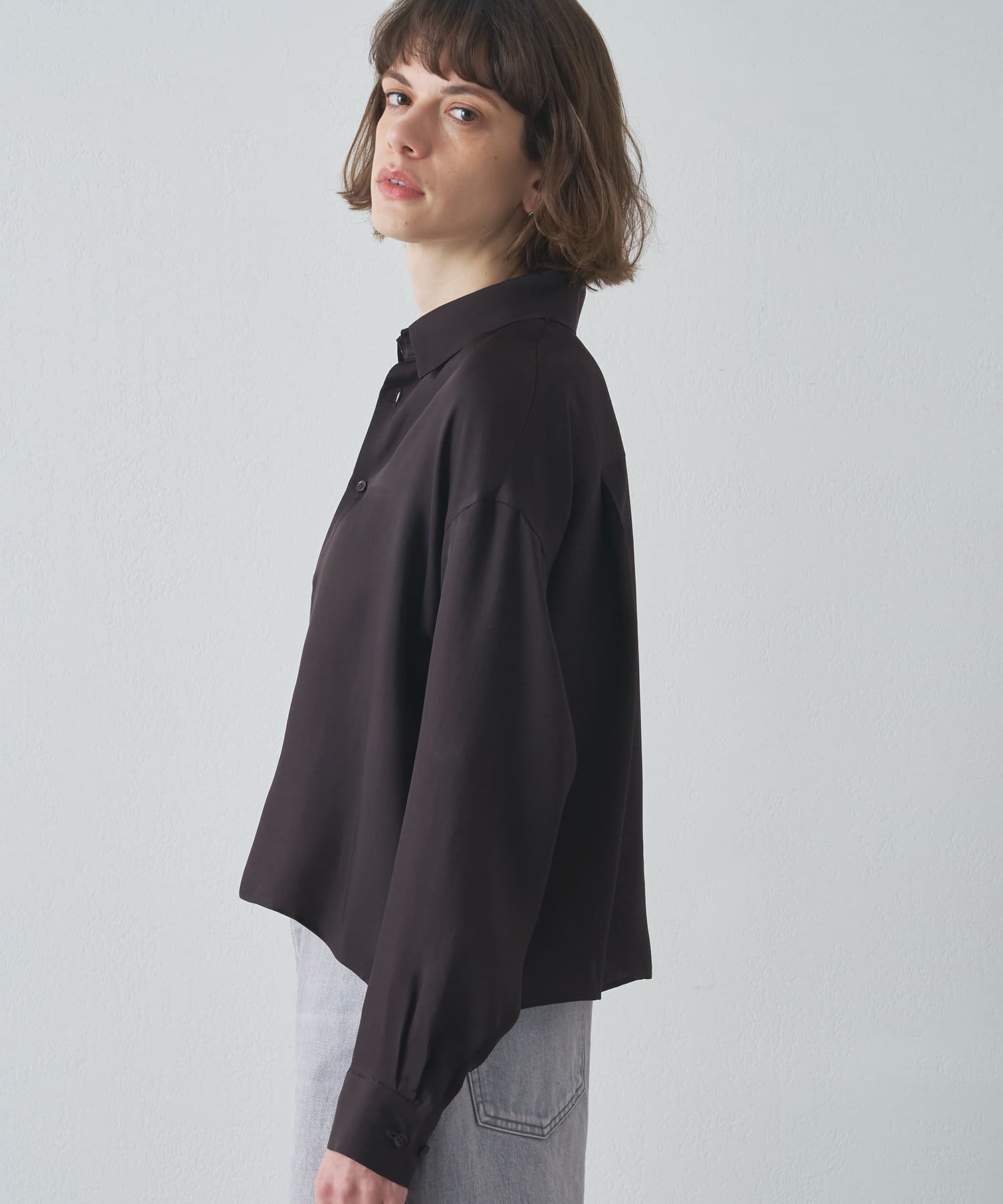 ■シンプルながらも品のある艶やかなクロップドシャツ。