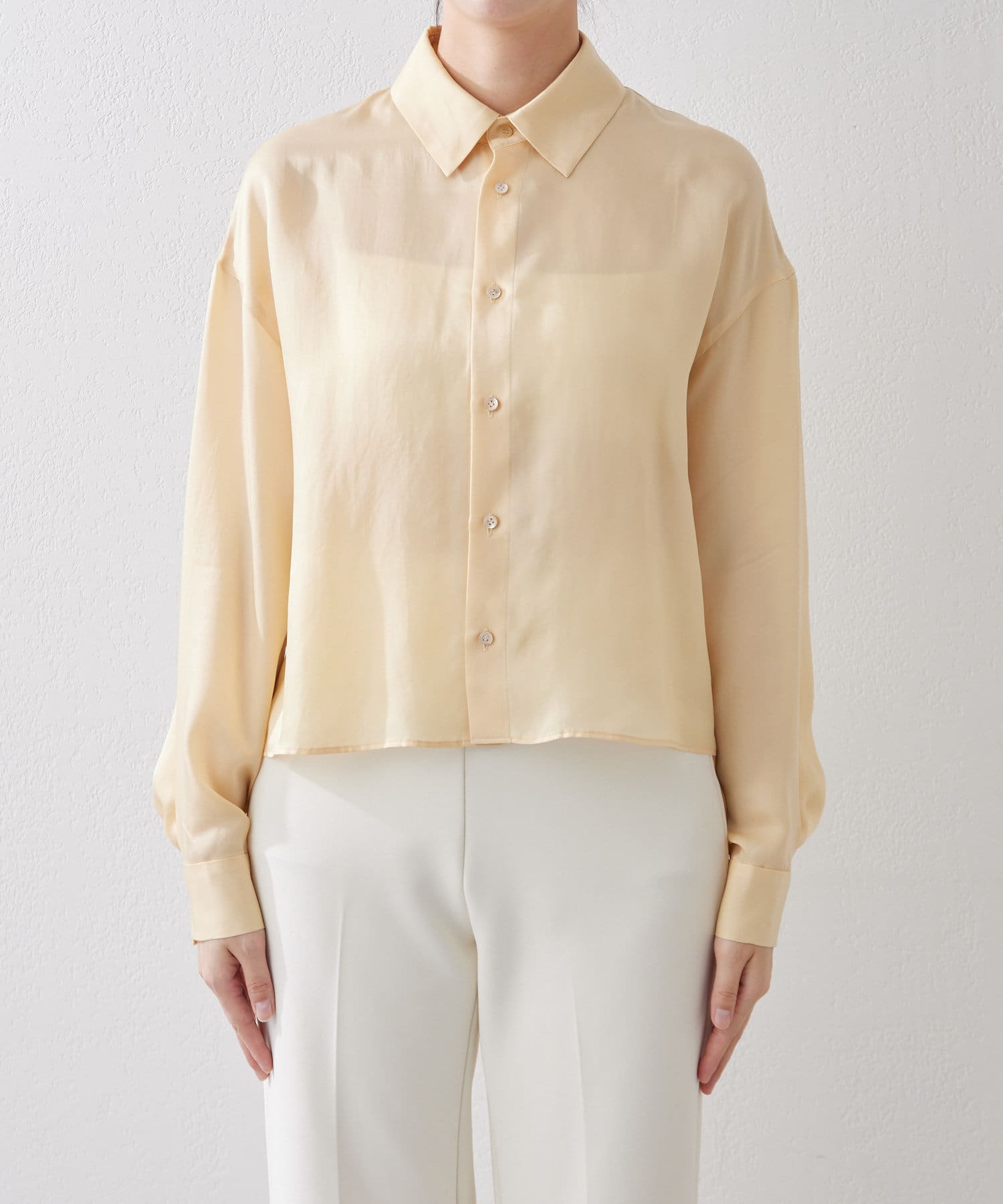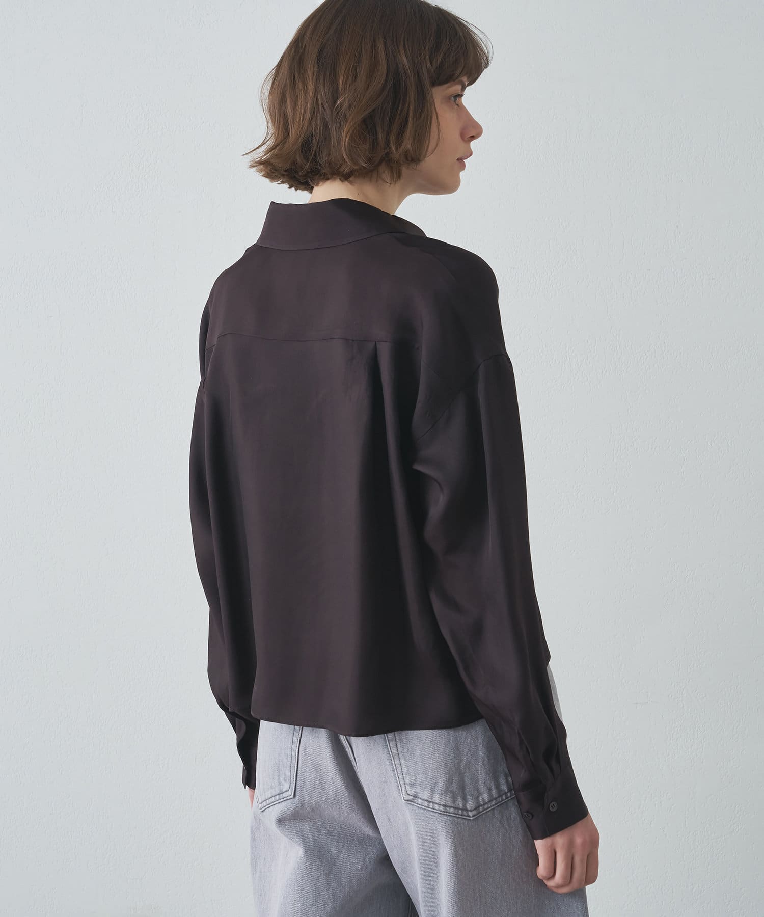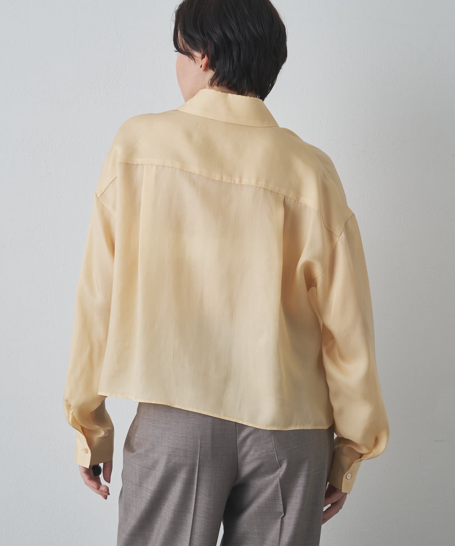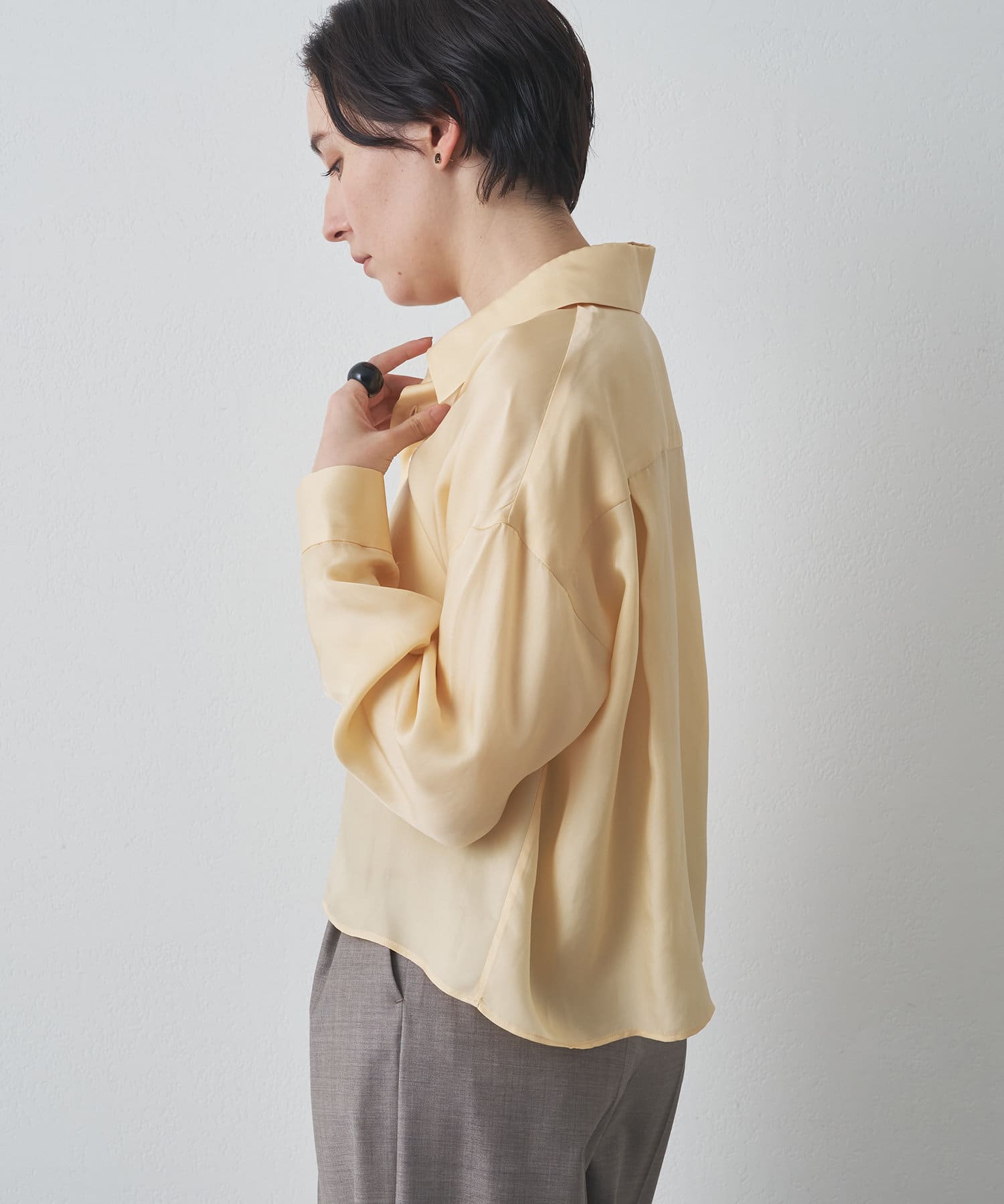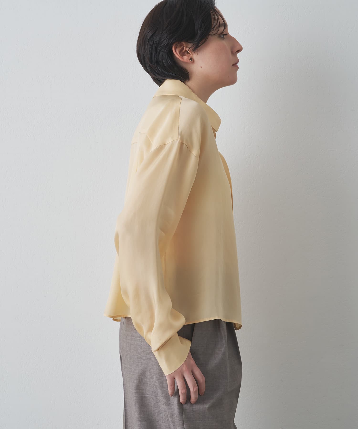 ■シンプルながらも品のある艶やかなクロップドシャツ。