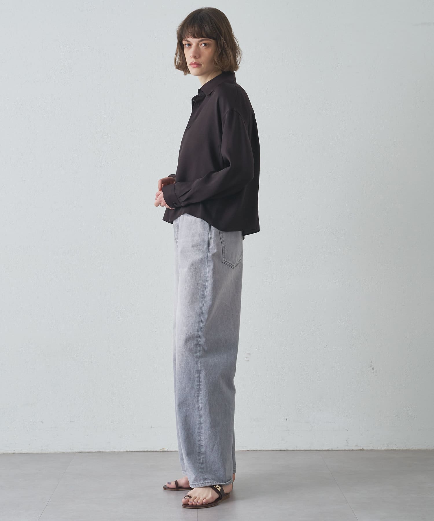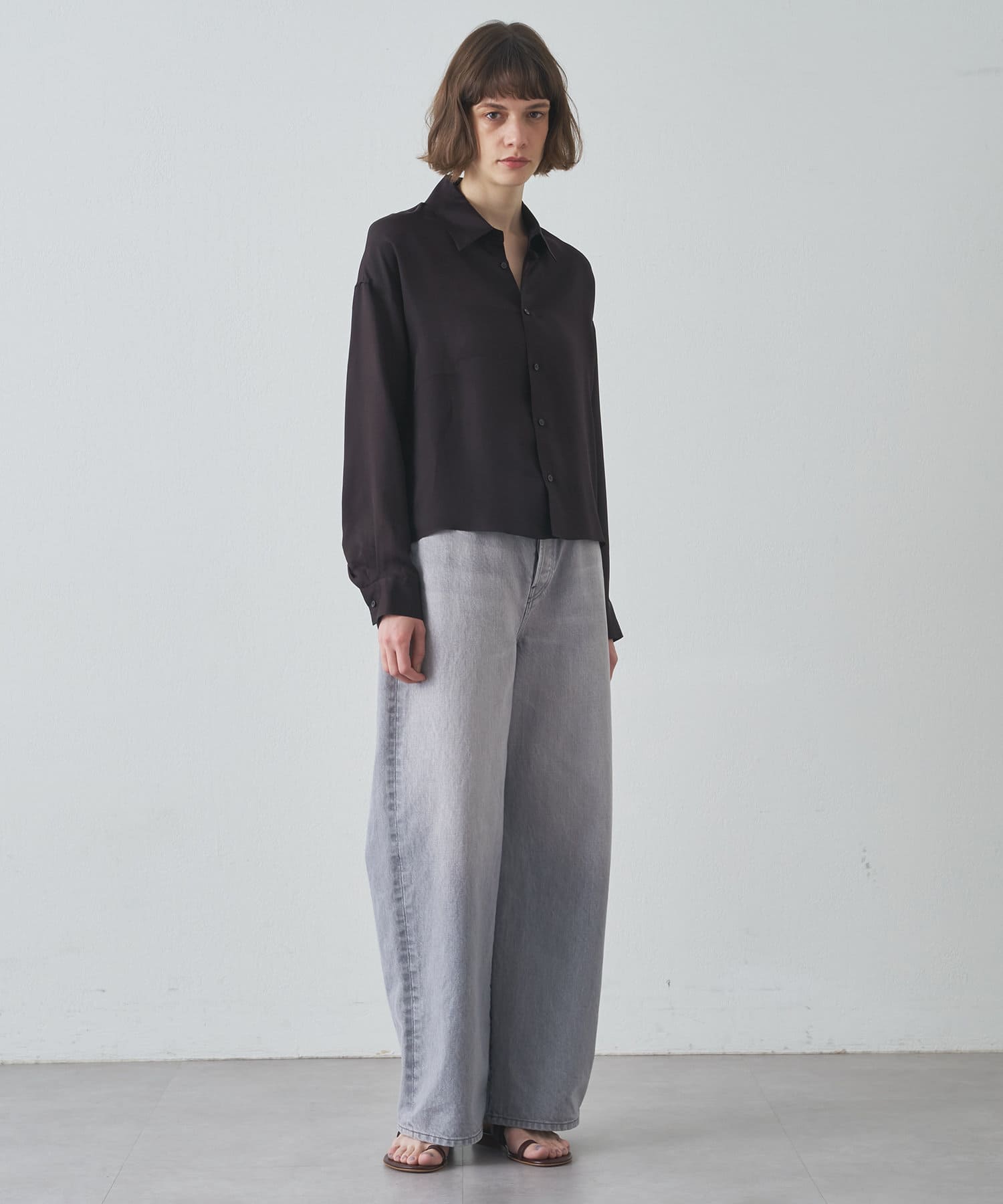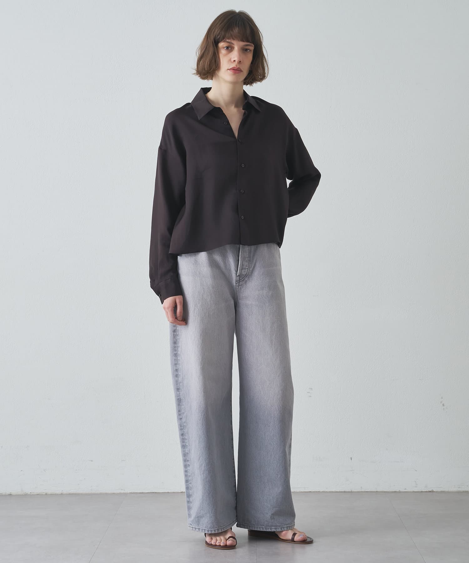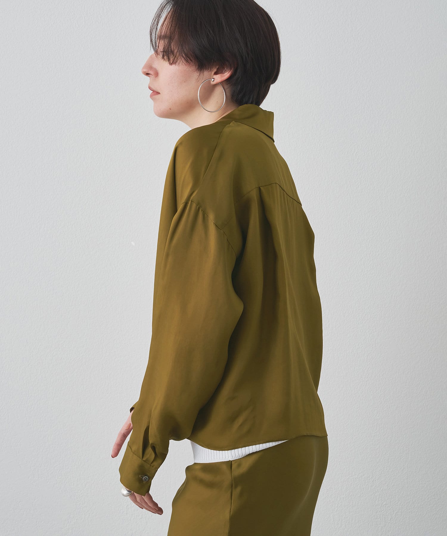 ■シンプルながらも品のある艶やかなクロップドシャツ。