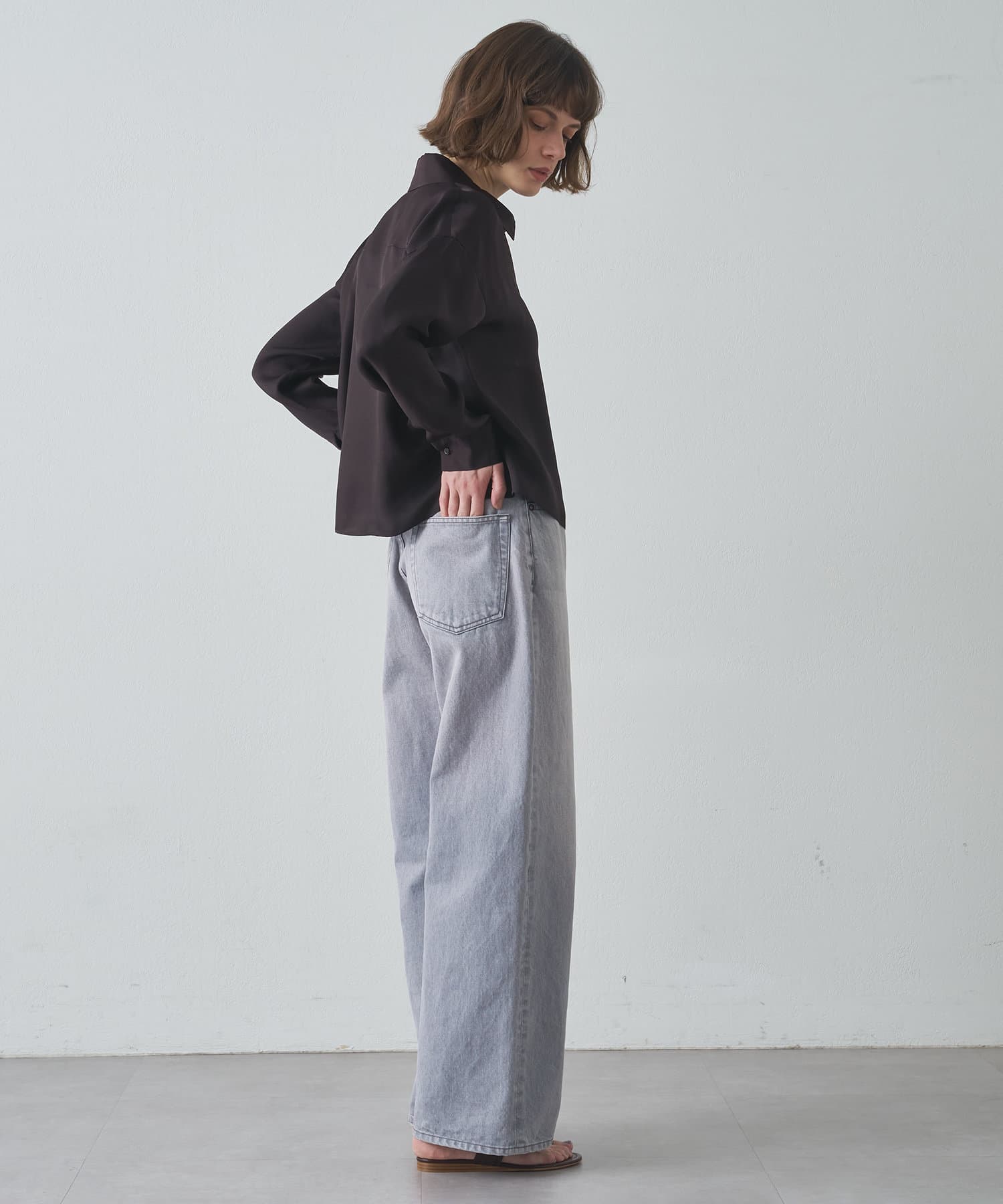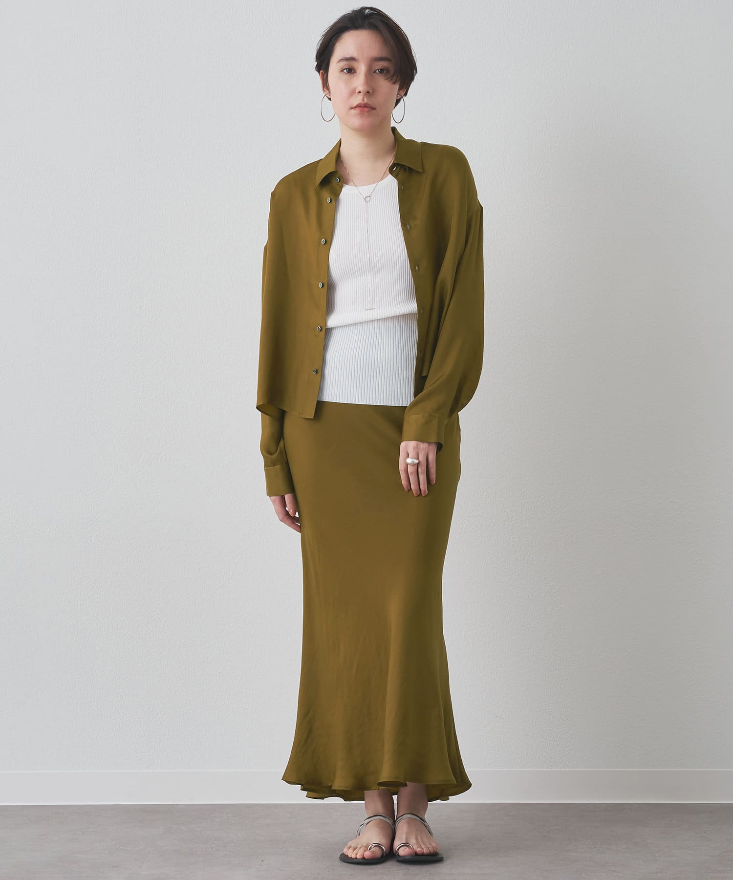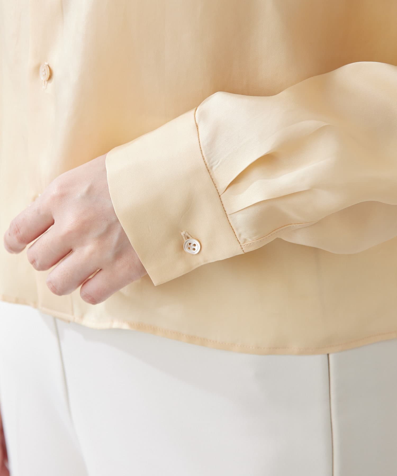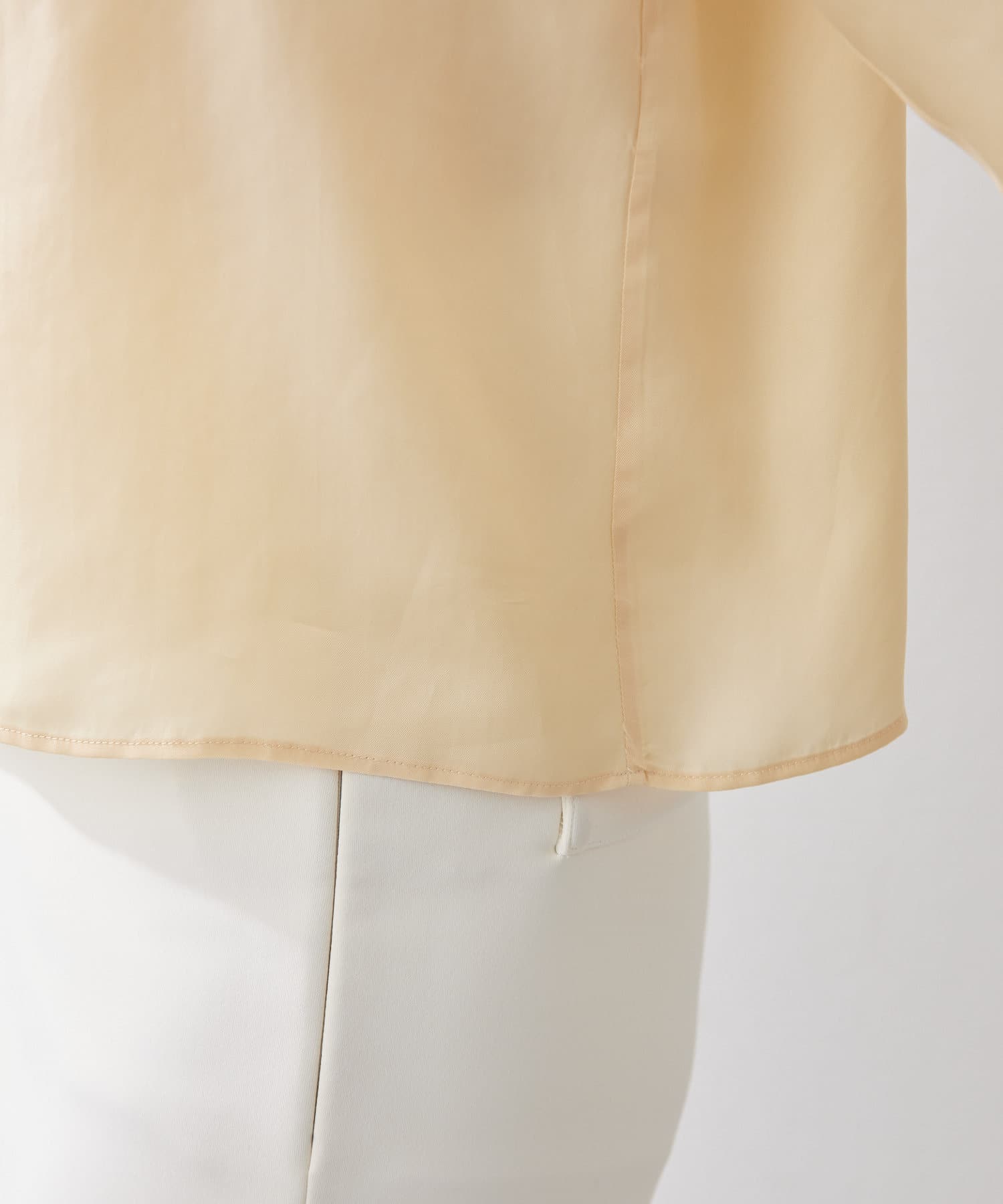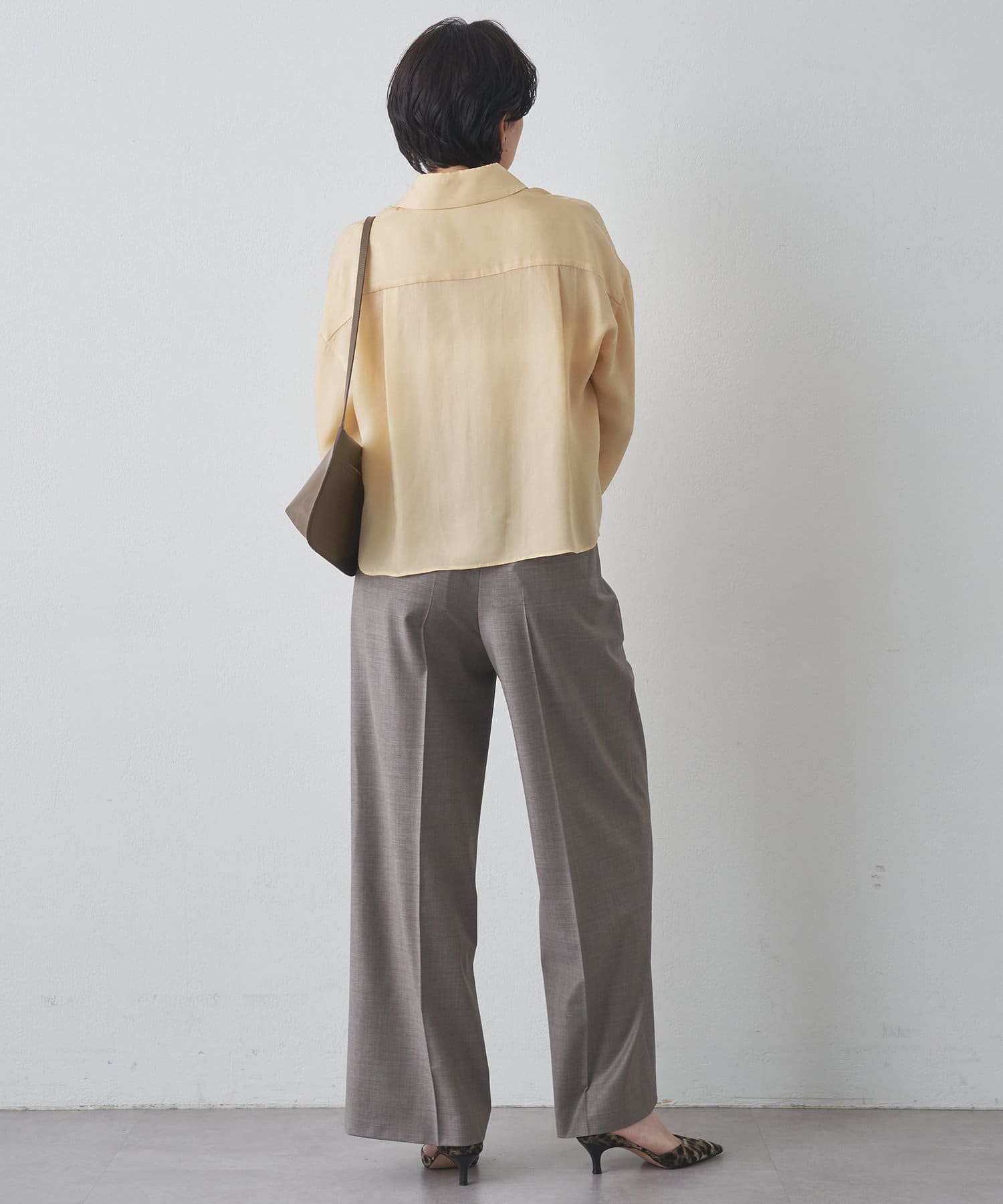 ■シンプルながらも品のある艶やかなクロップドシャツ。