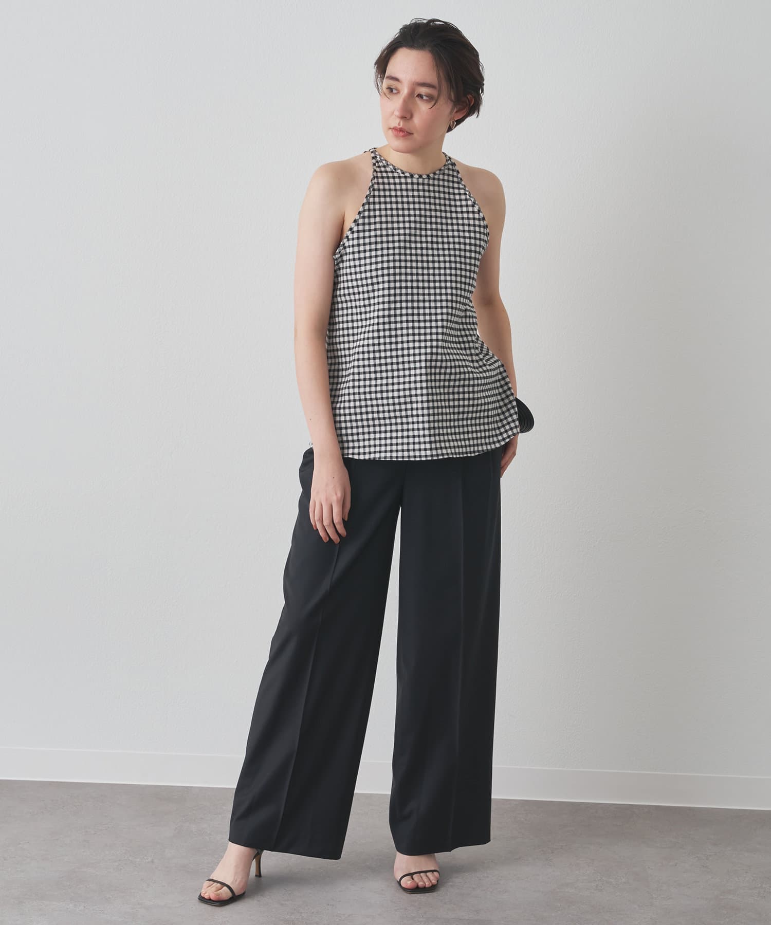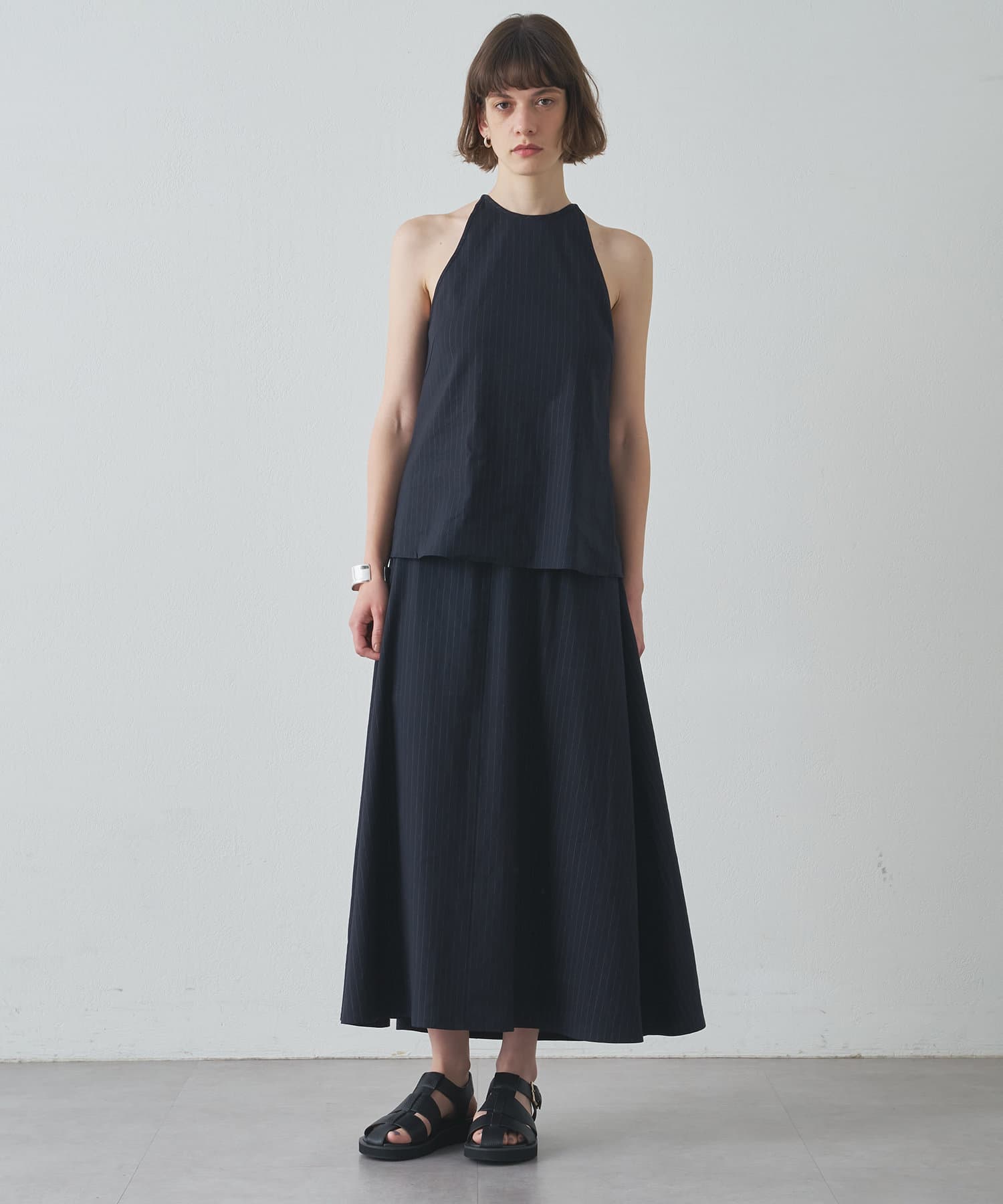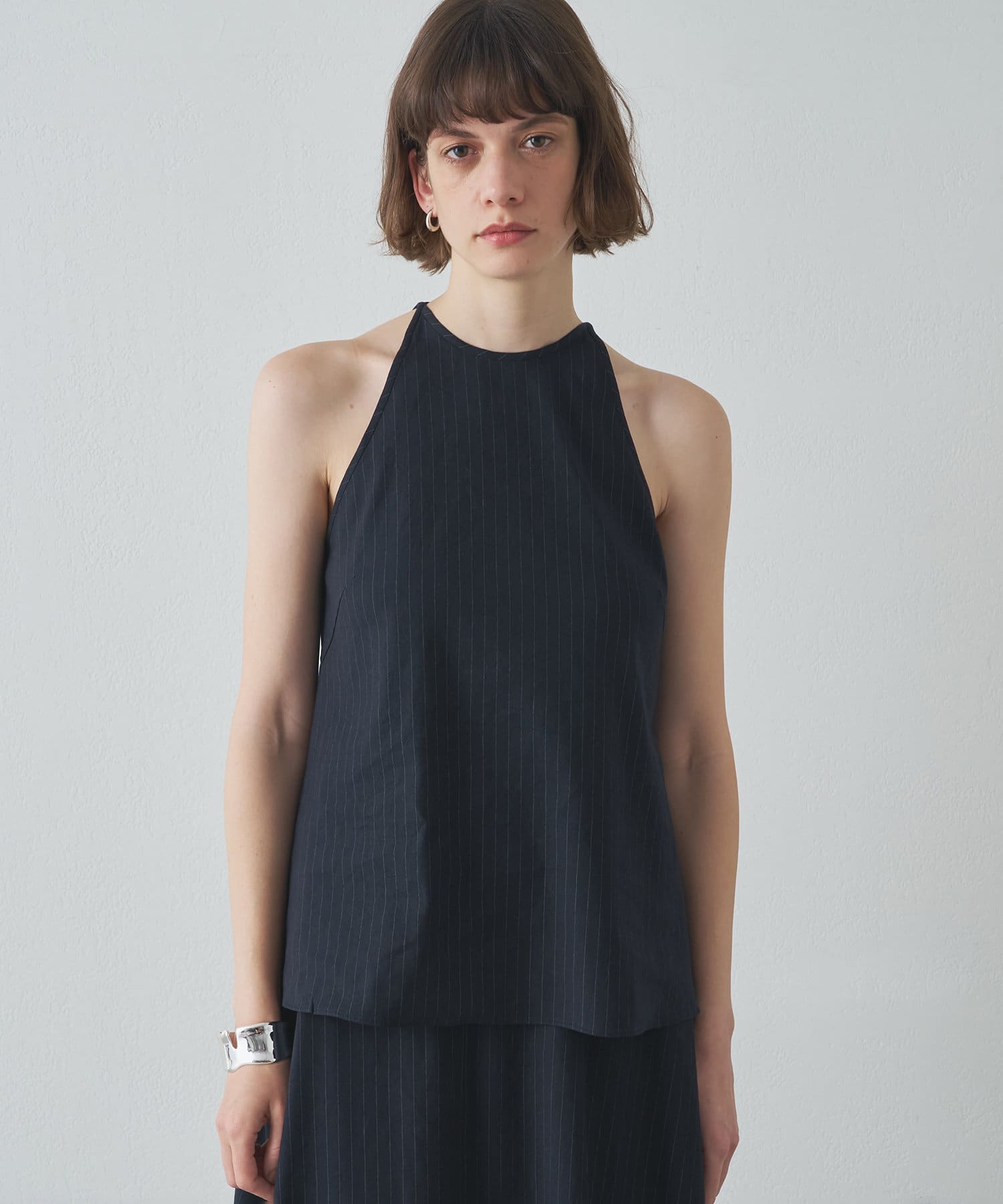 ■Aラインのフレアシルエットが女性らしいホルターブラウス。