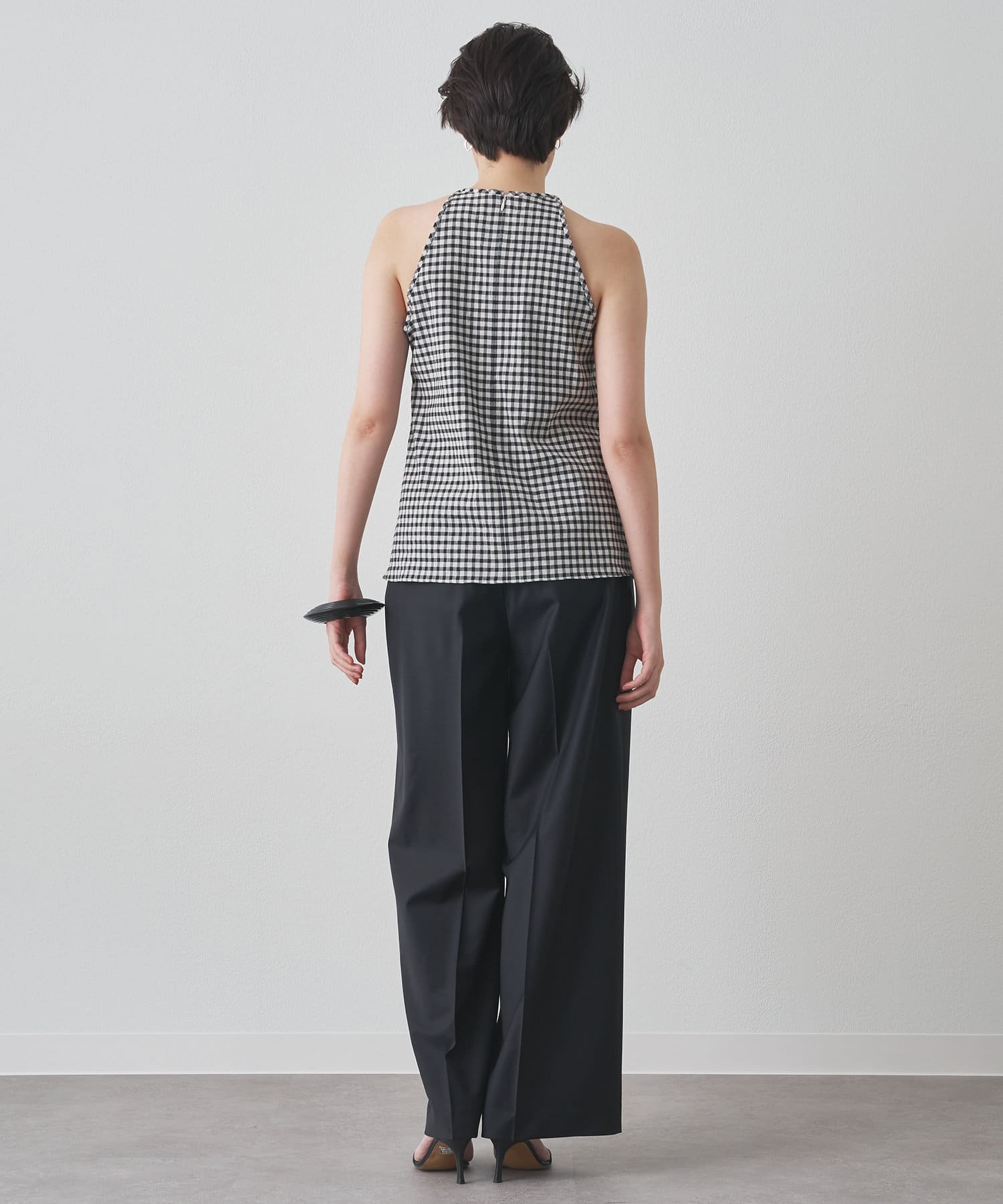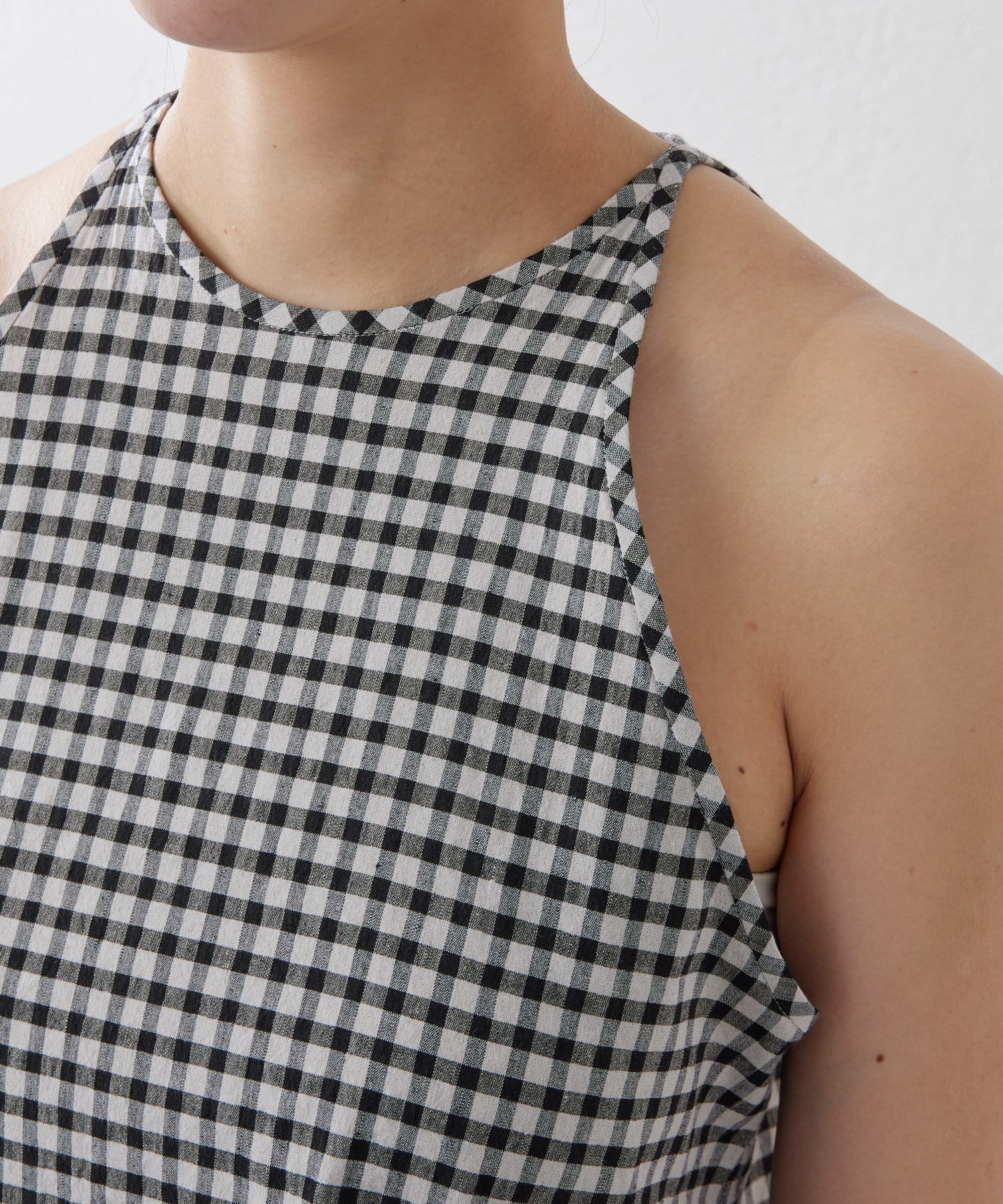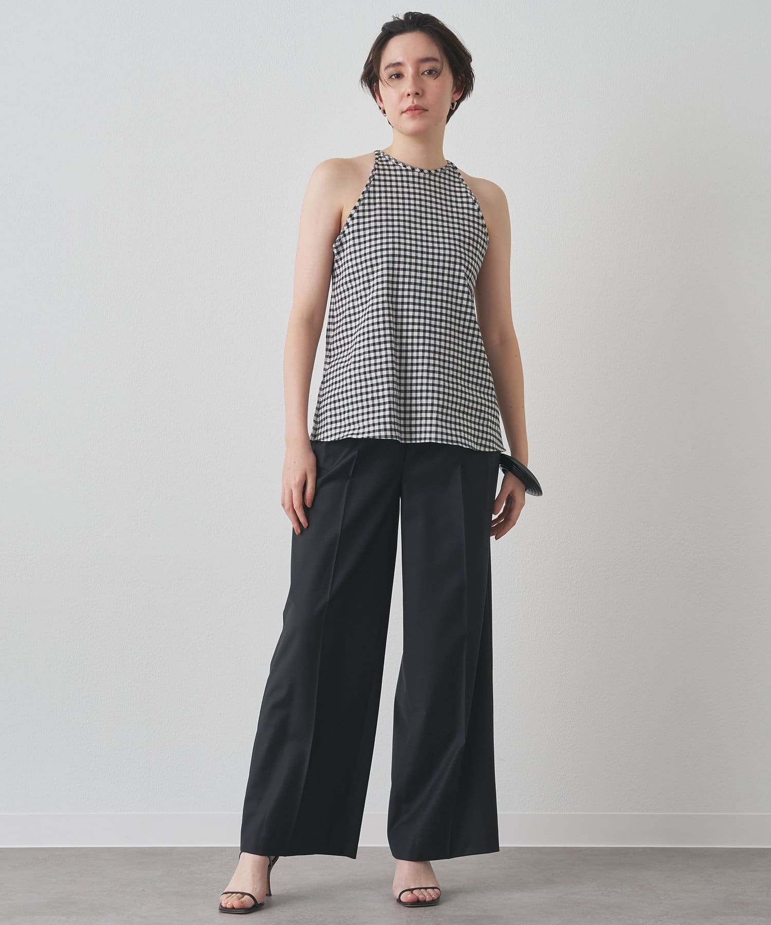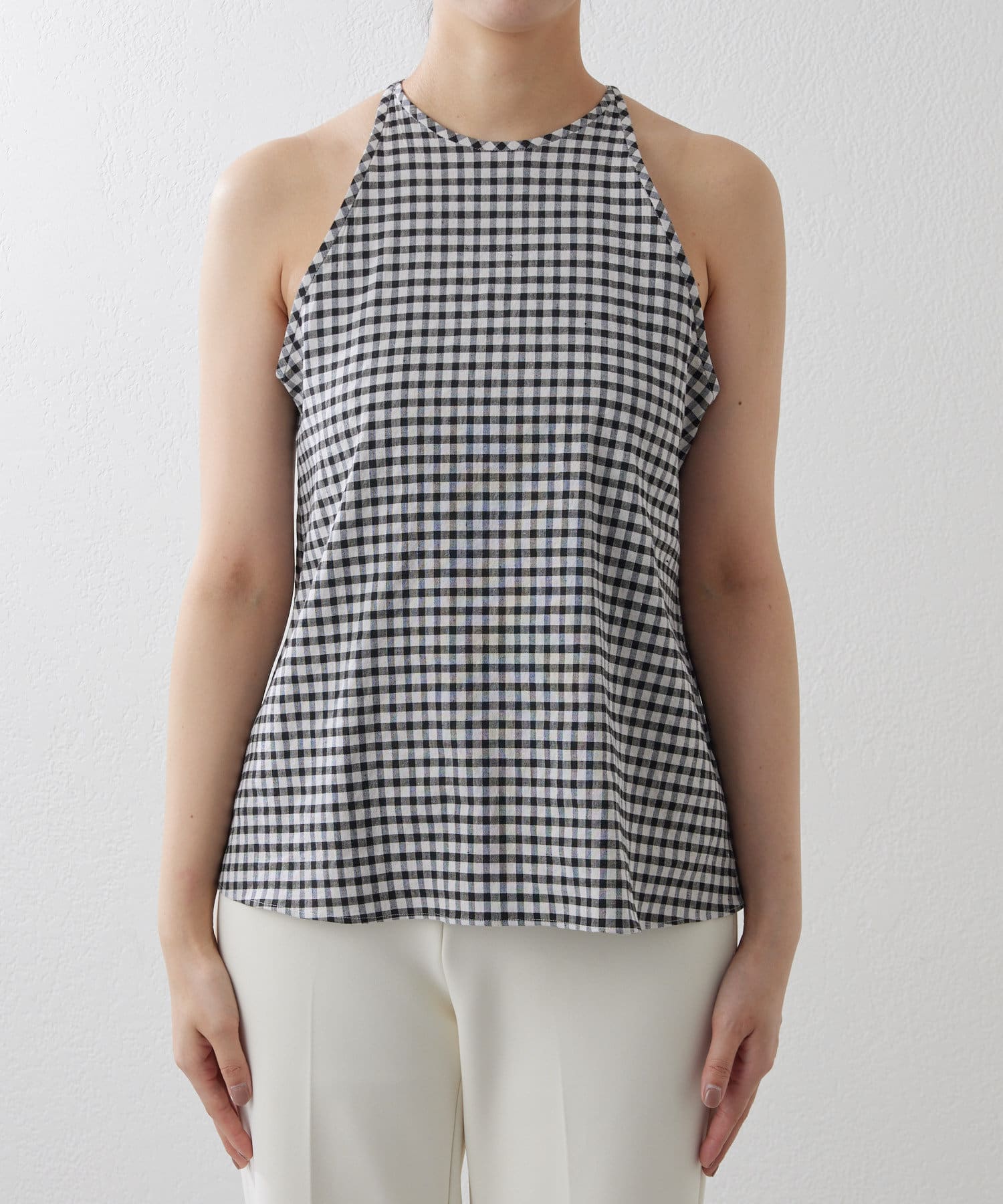 ■Aラインのフレアシルエットが女性らしいホルターブラウス。