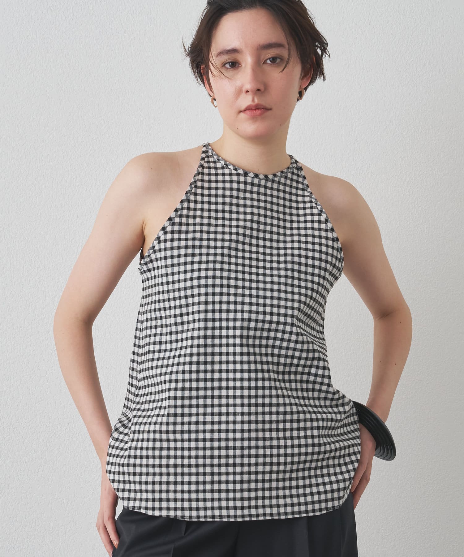 《セットアップ対応可》ミックスリネンホルターブラウス