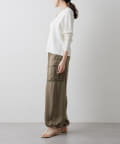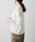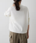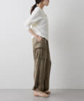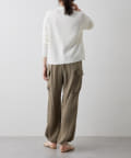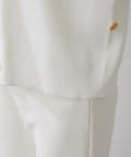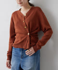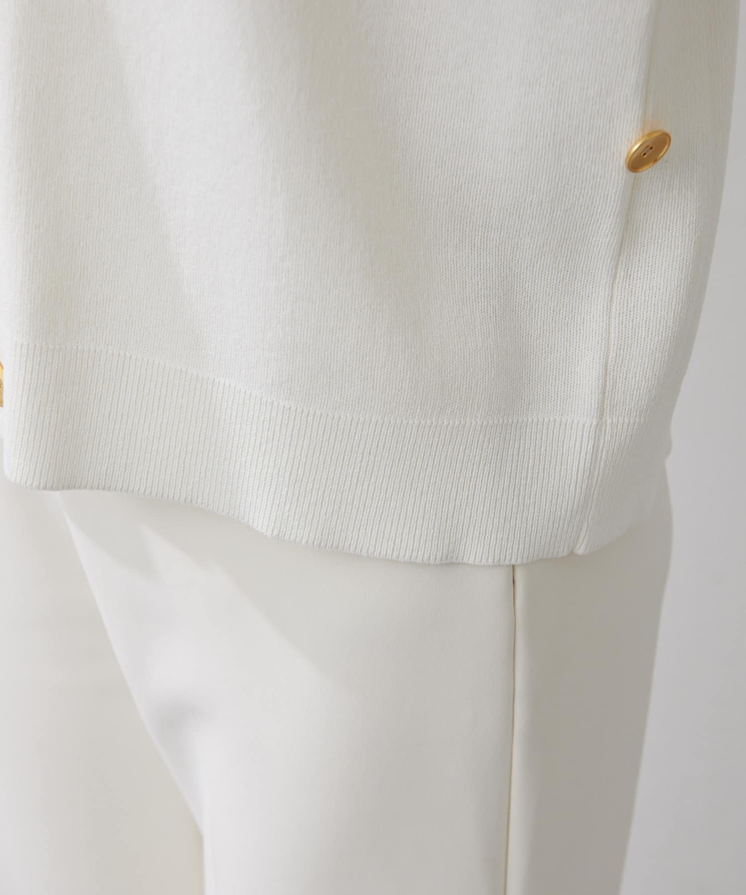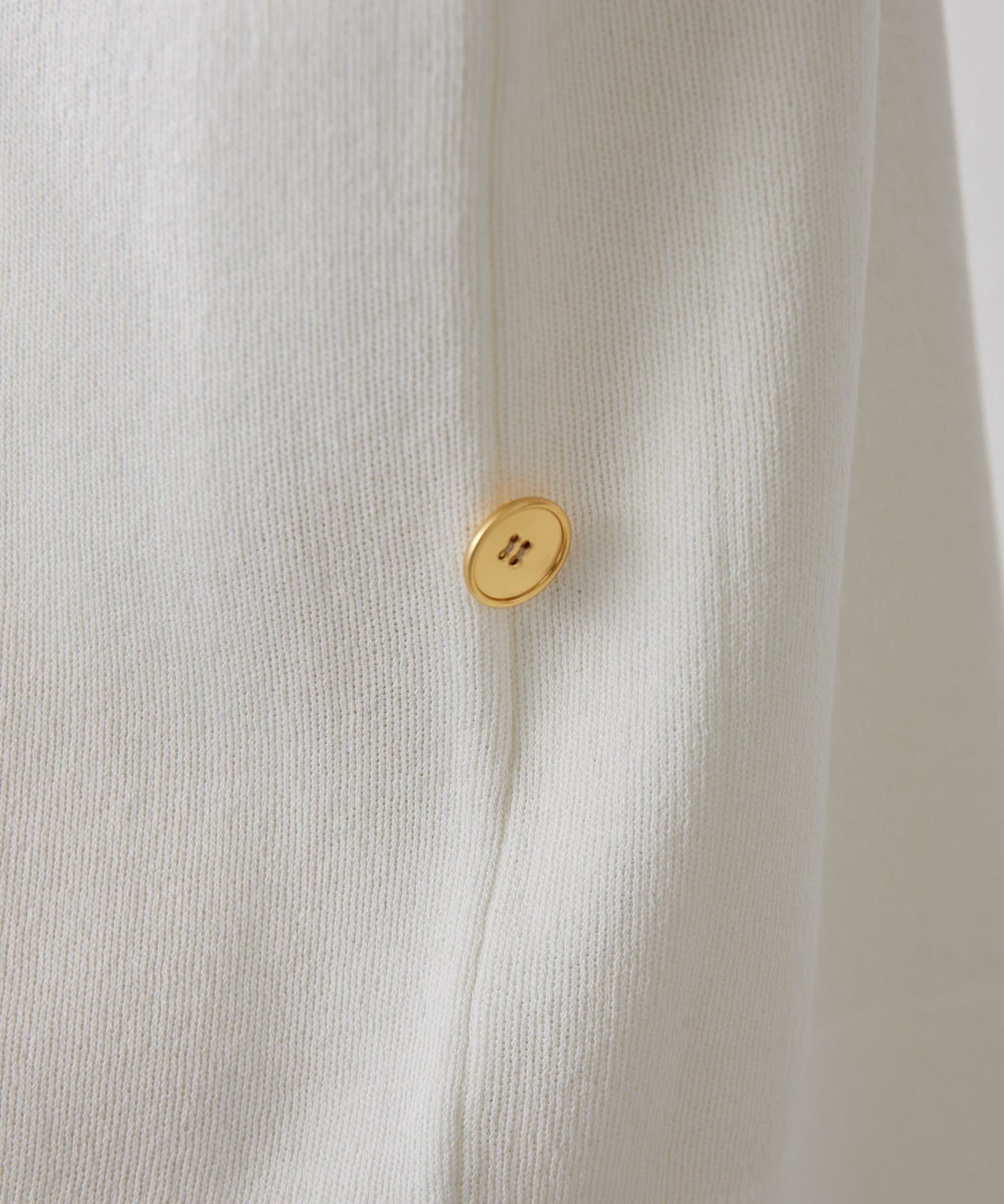 ■4個目のボタンを左脇のボタンに留めてその下のボタンは留めずに着るとウエストにドレープができ、デザイン性のあるプルオーバーのようなデザインに。