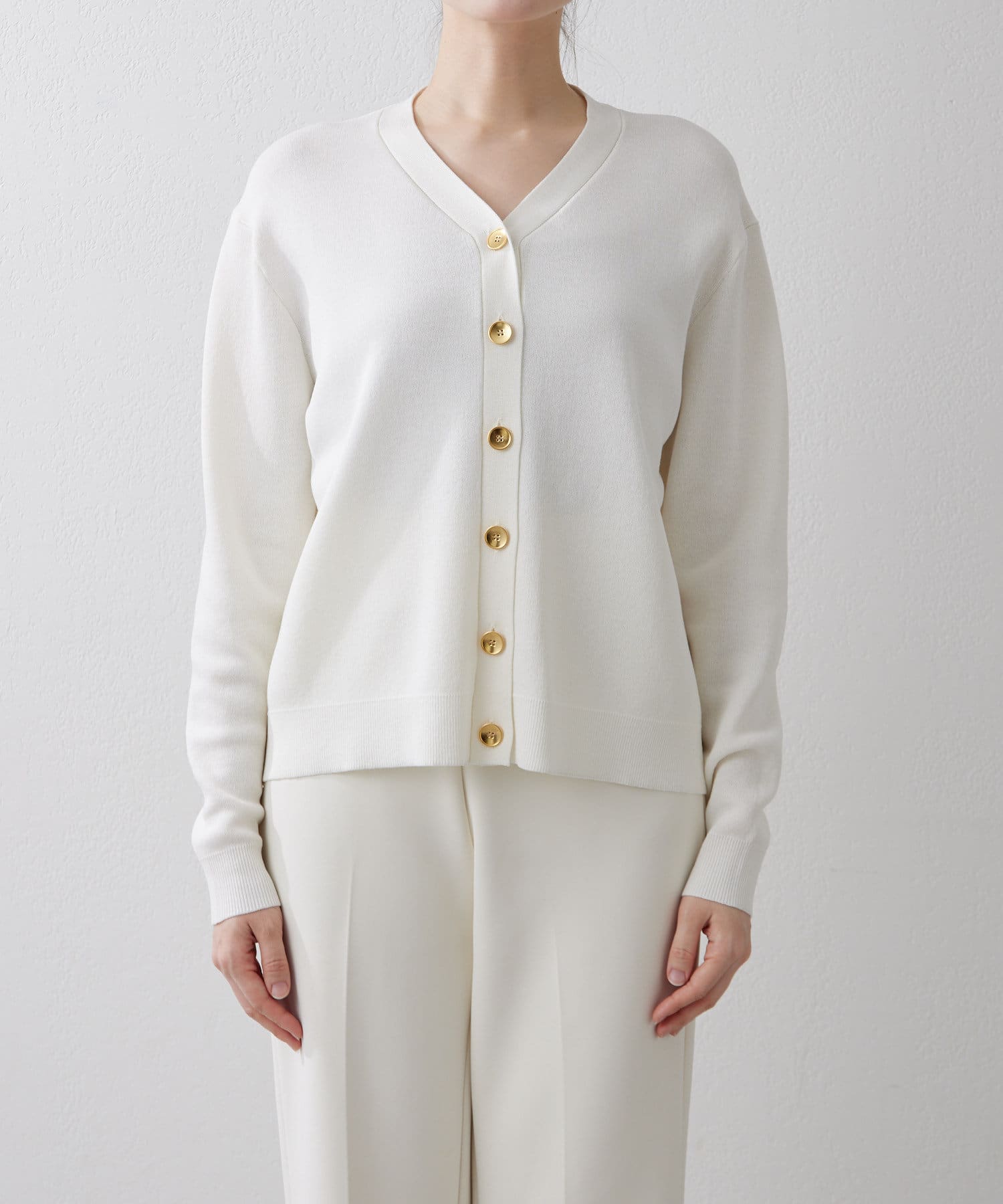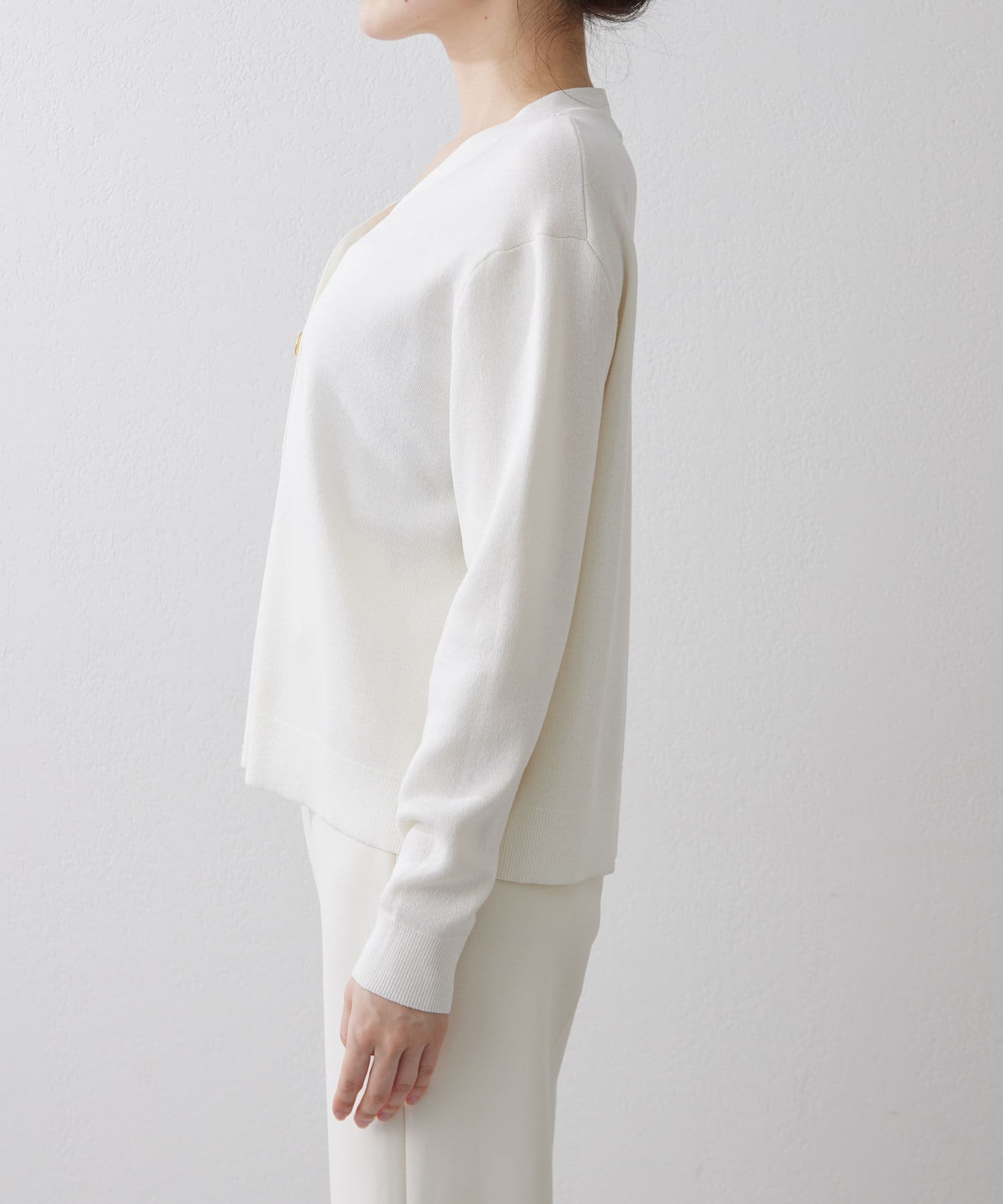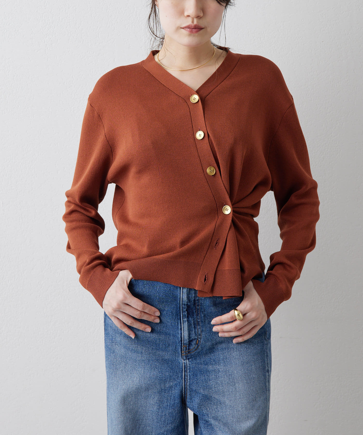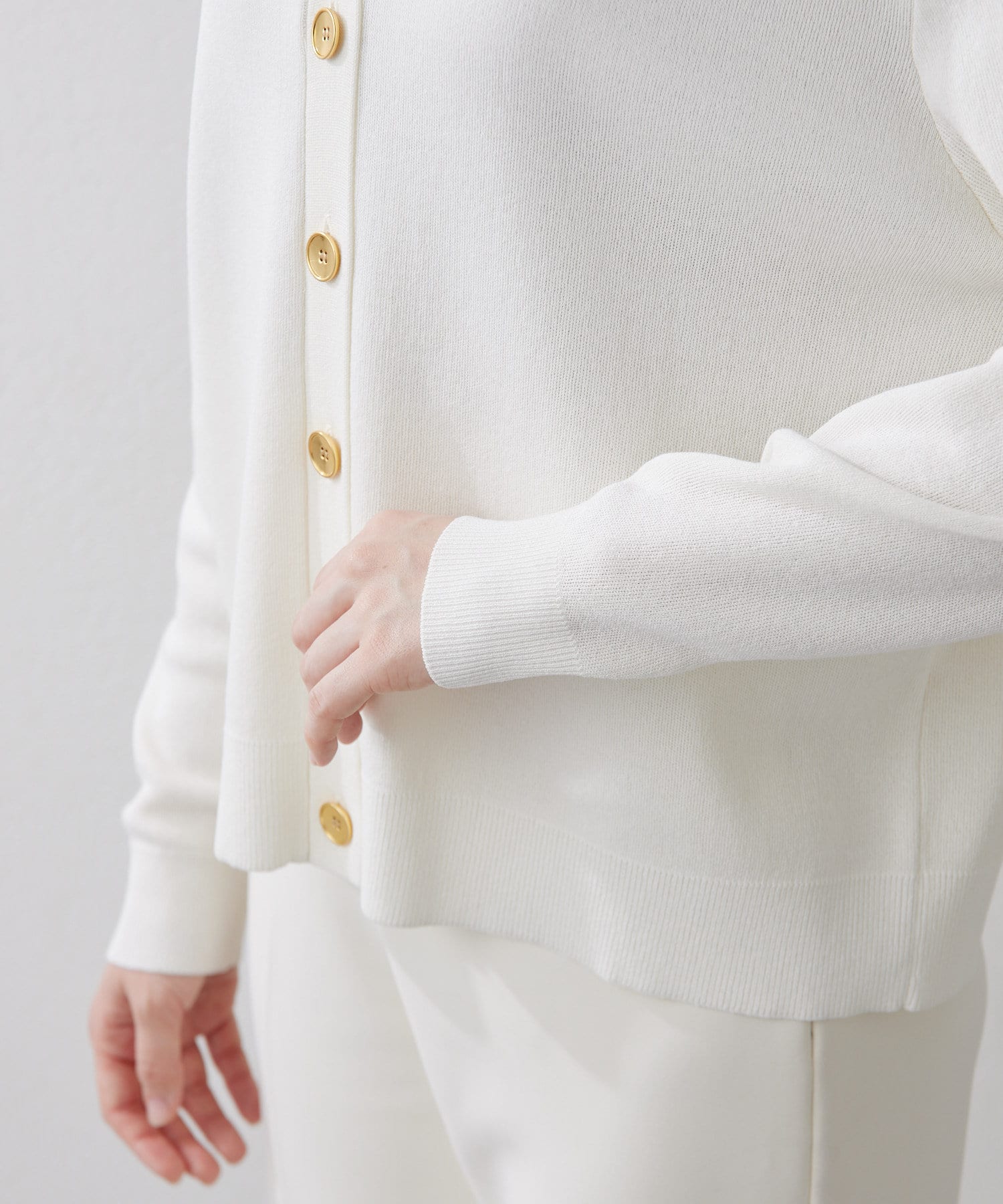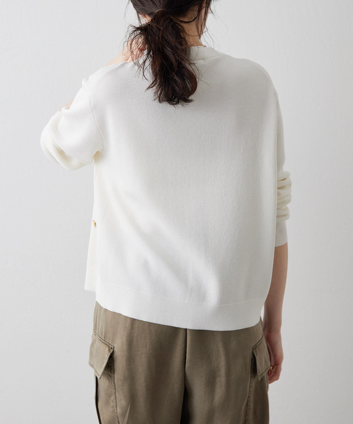■ボタンの留め方で2wayの着こなしを楽しめるニットカーディガン。