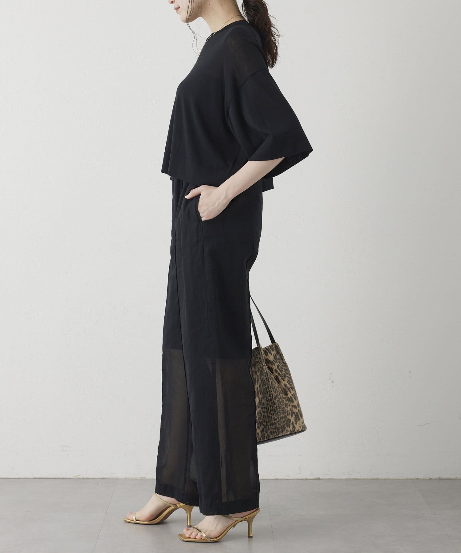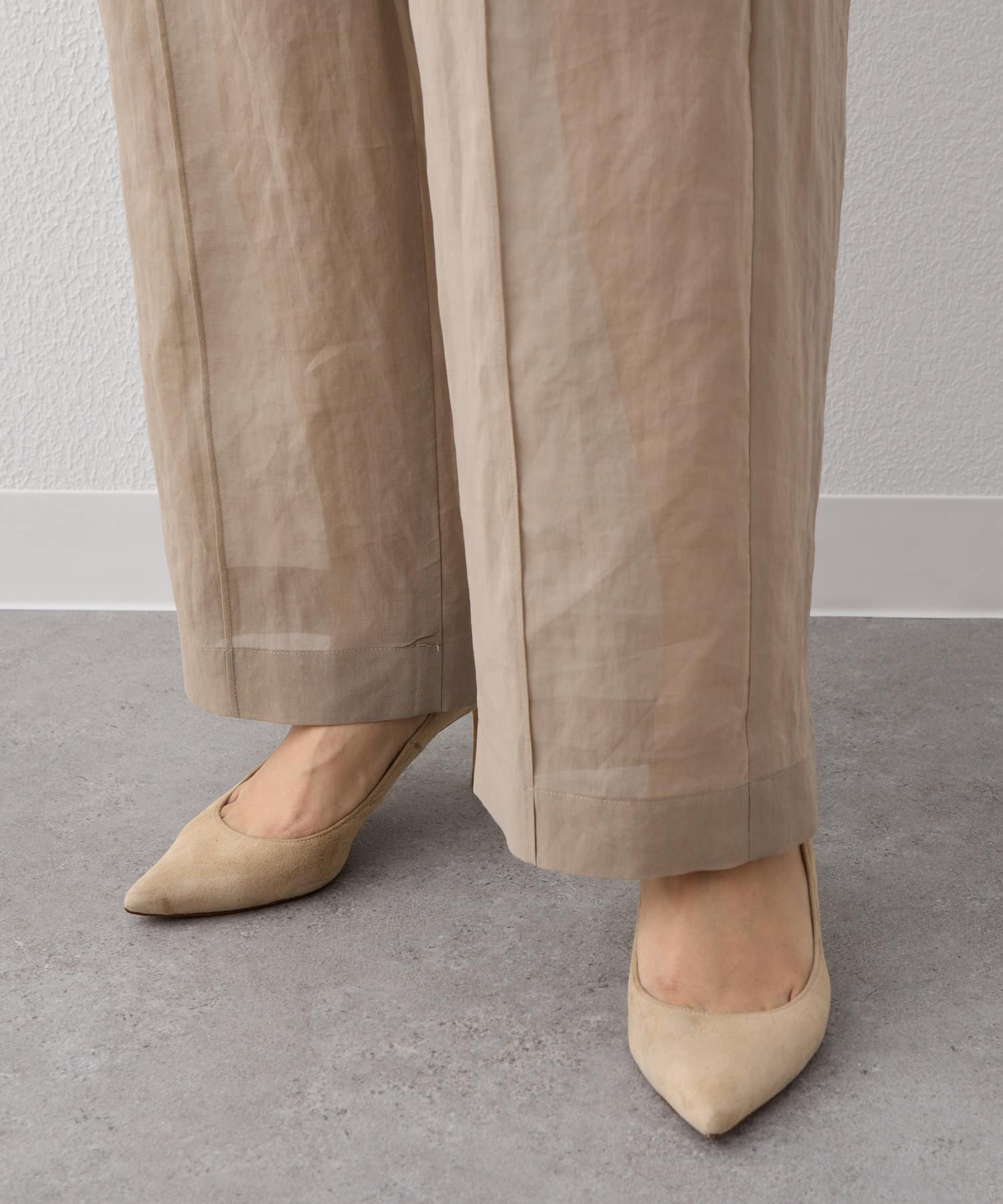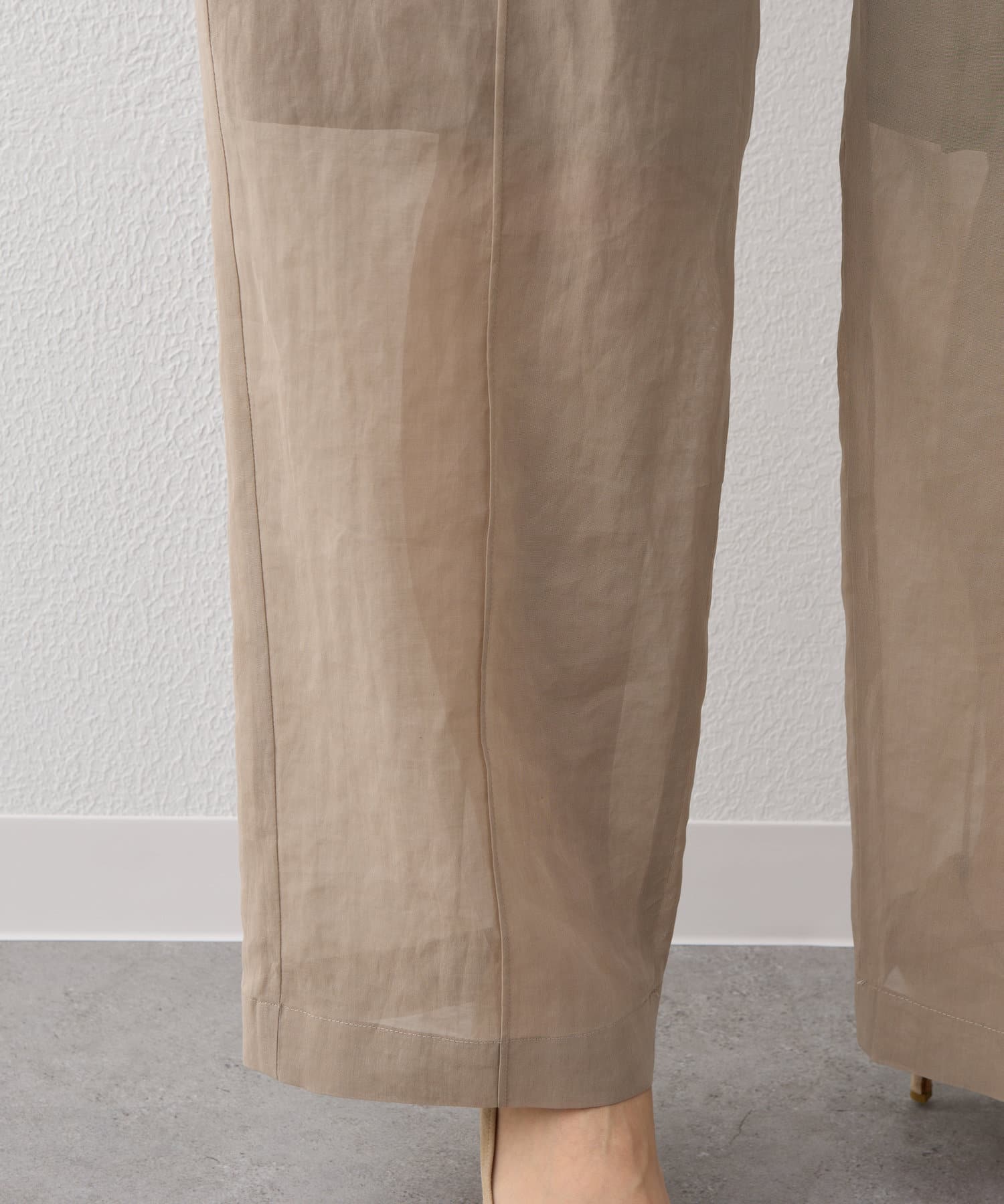 ■膝下の透け感がポイントのワイドテーパードパンツ。
