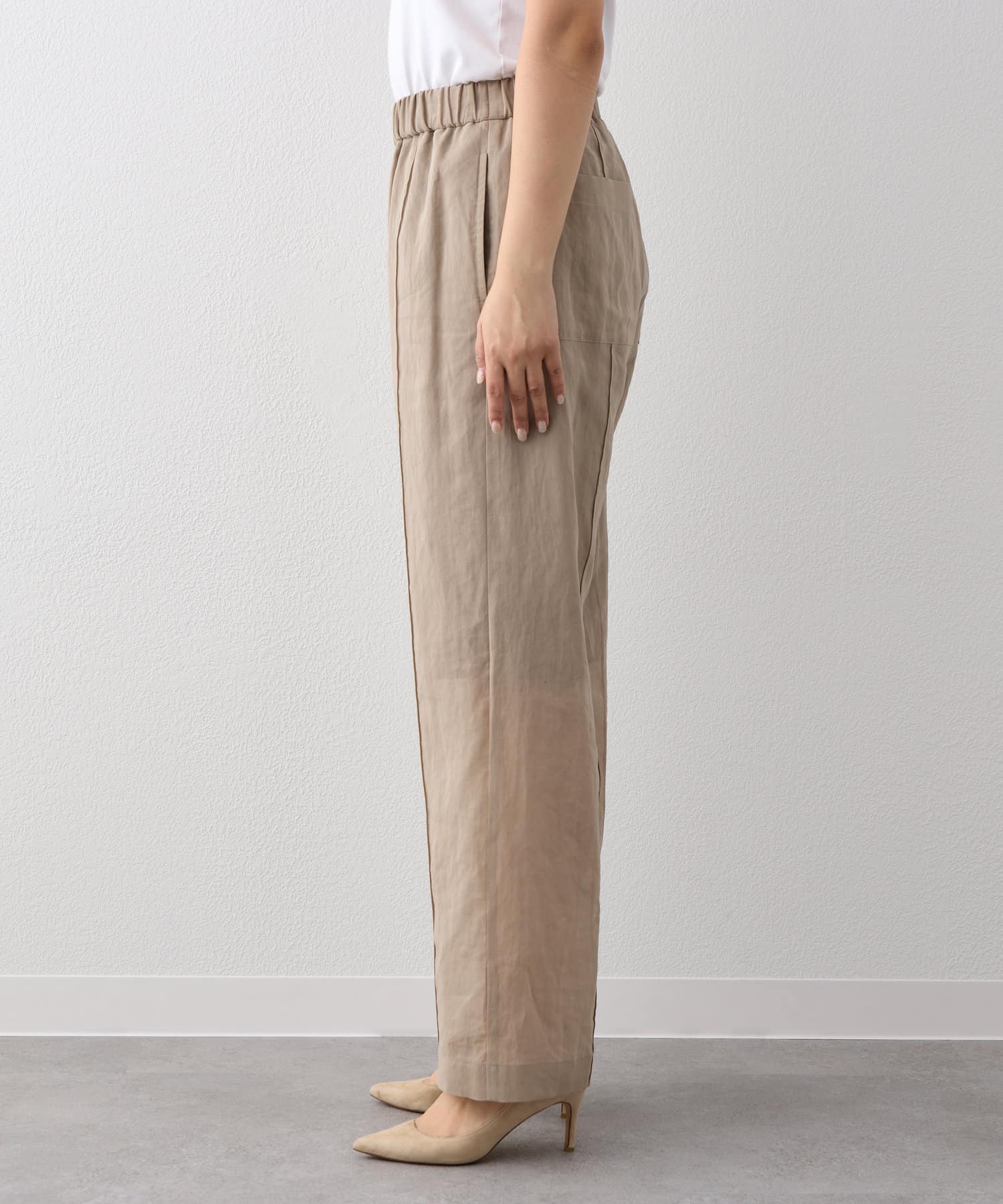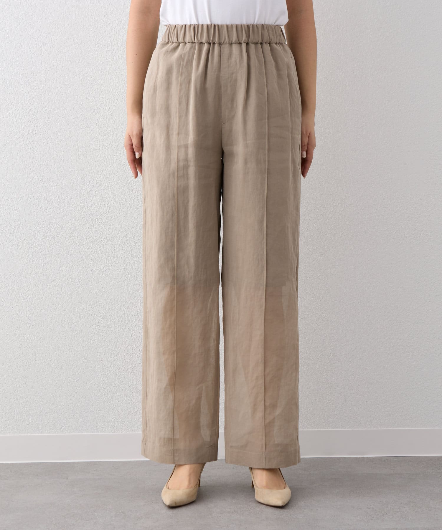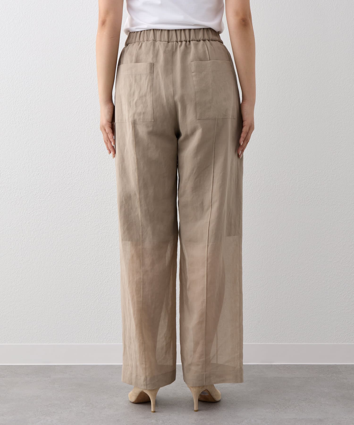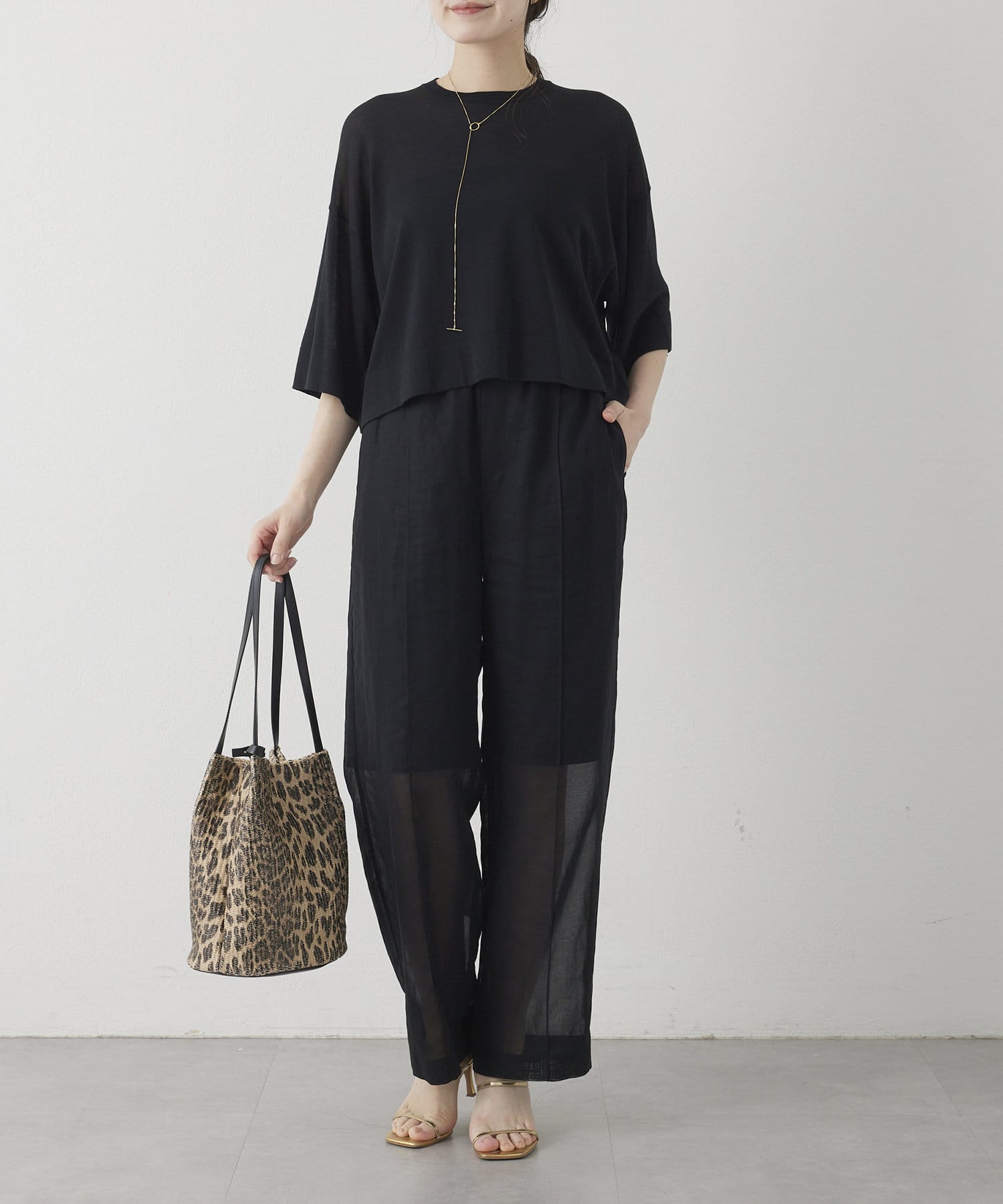■膝下の透け感がポイントのワイドテーパードパンツ。