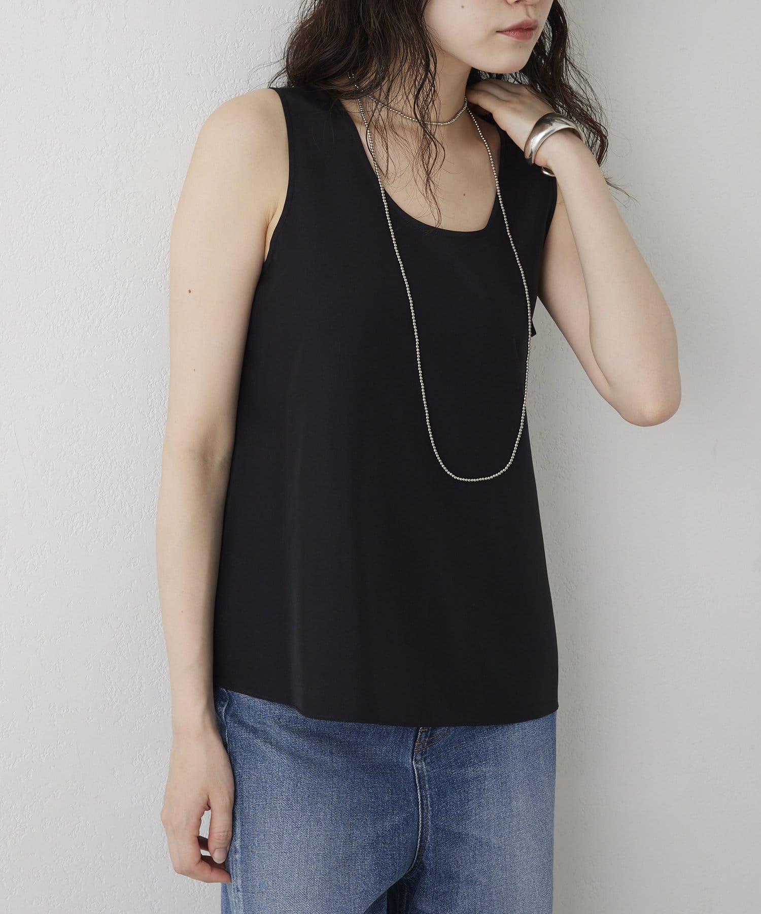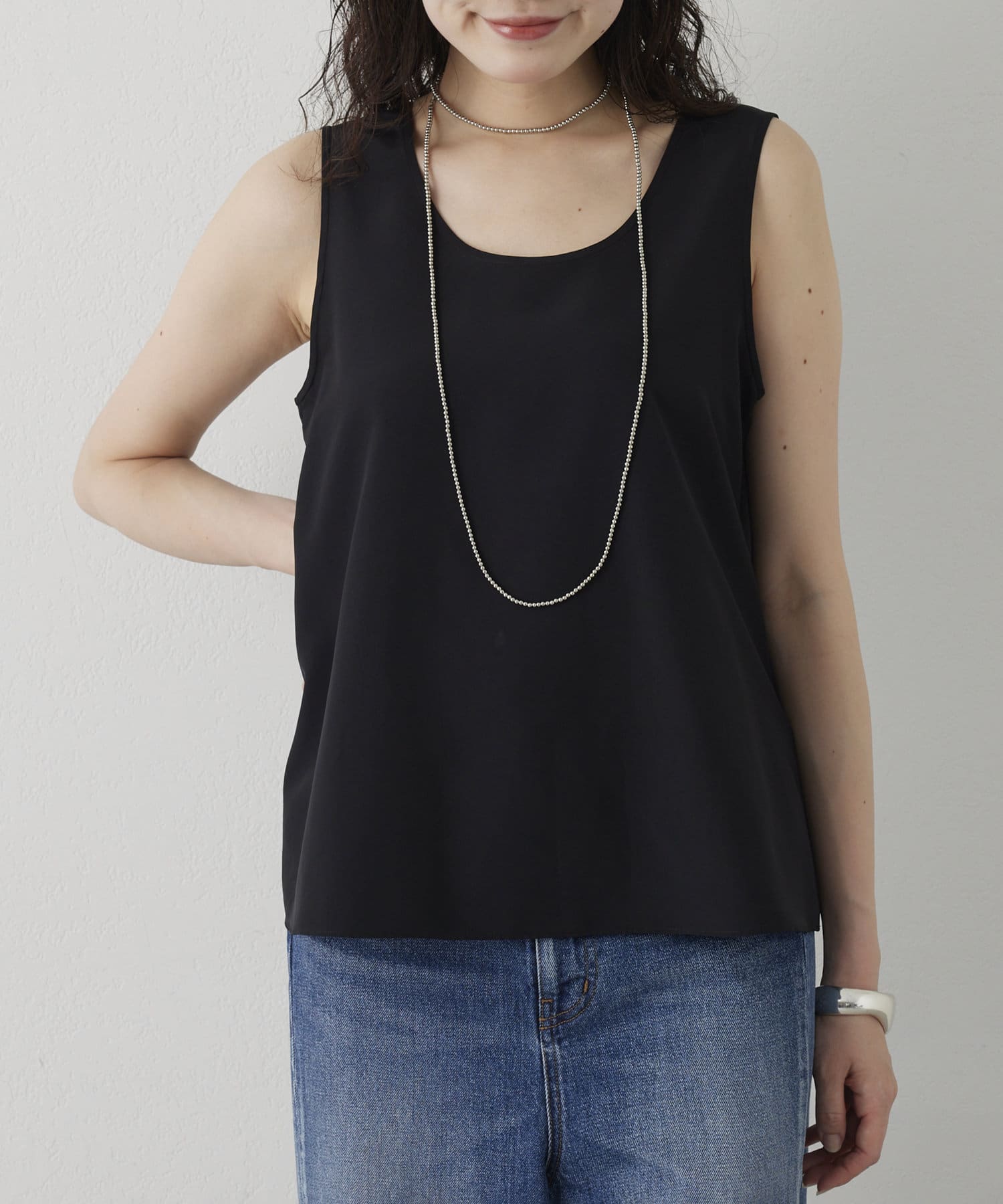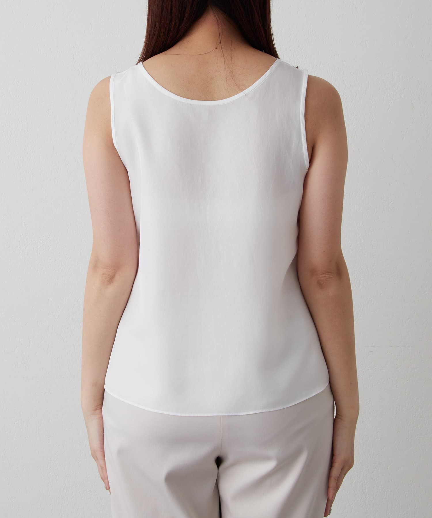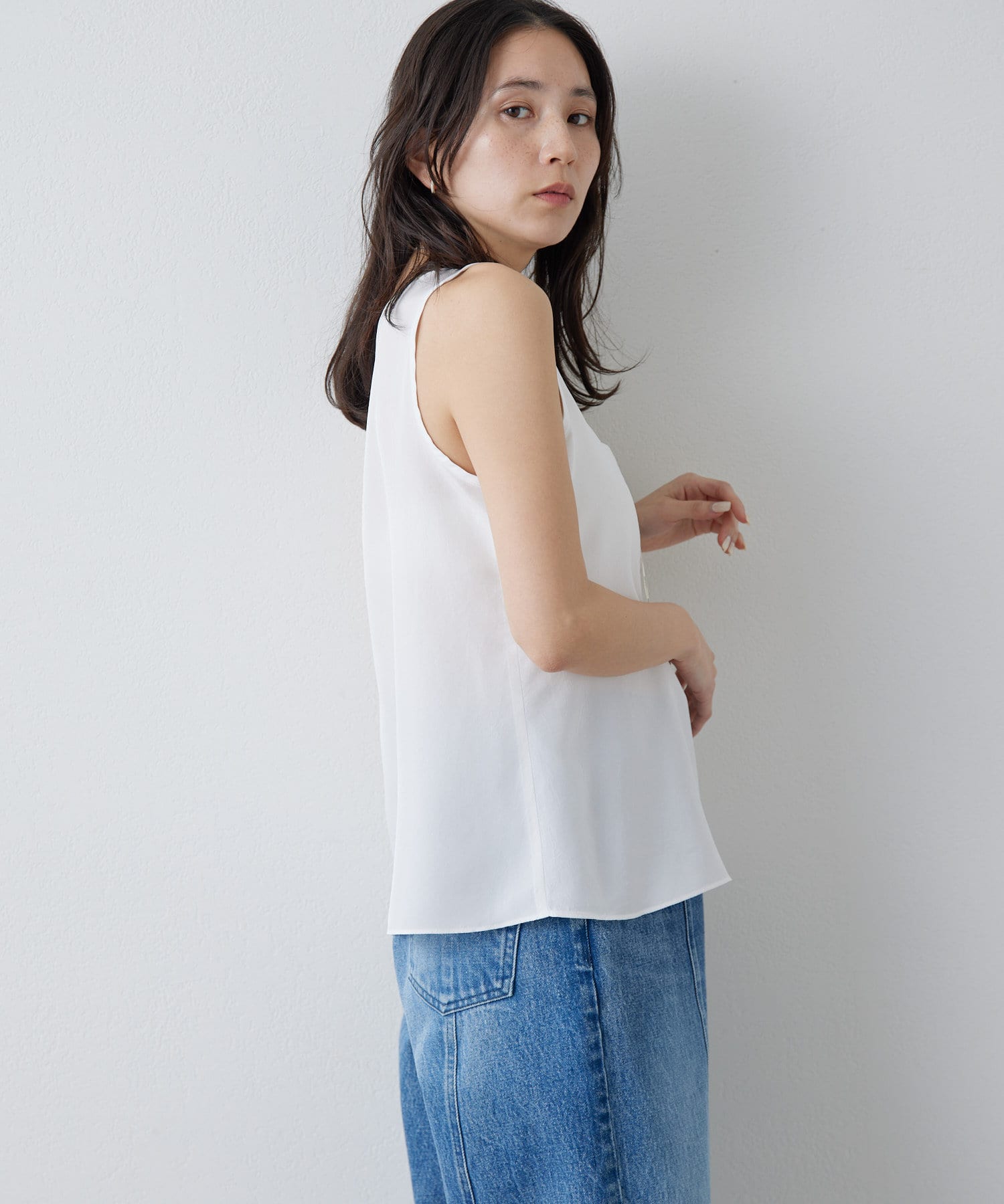 ■シルクのような見え感が特徴のサテンタンクトップ。