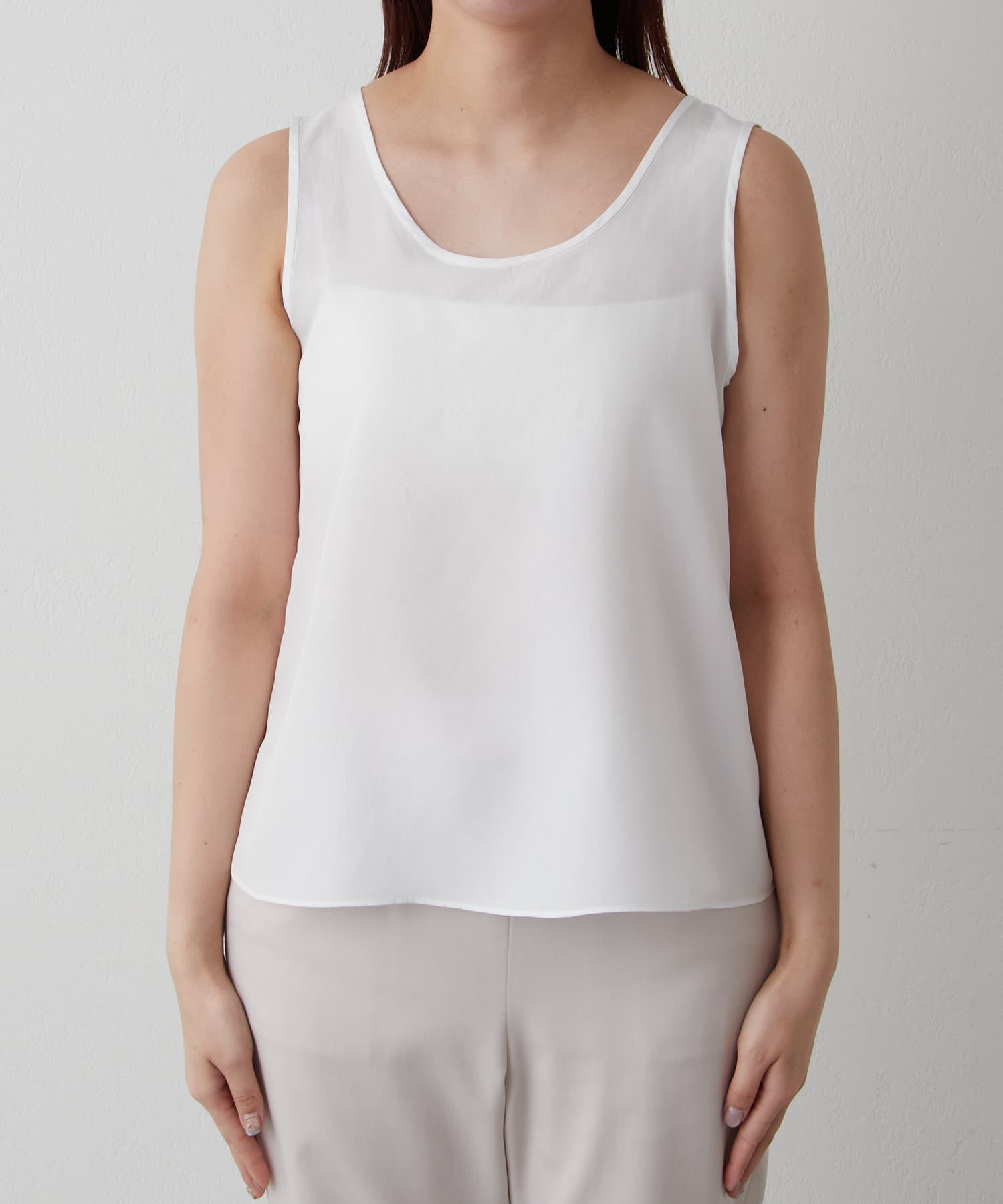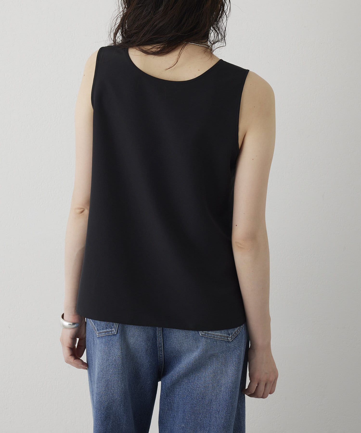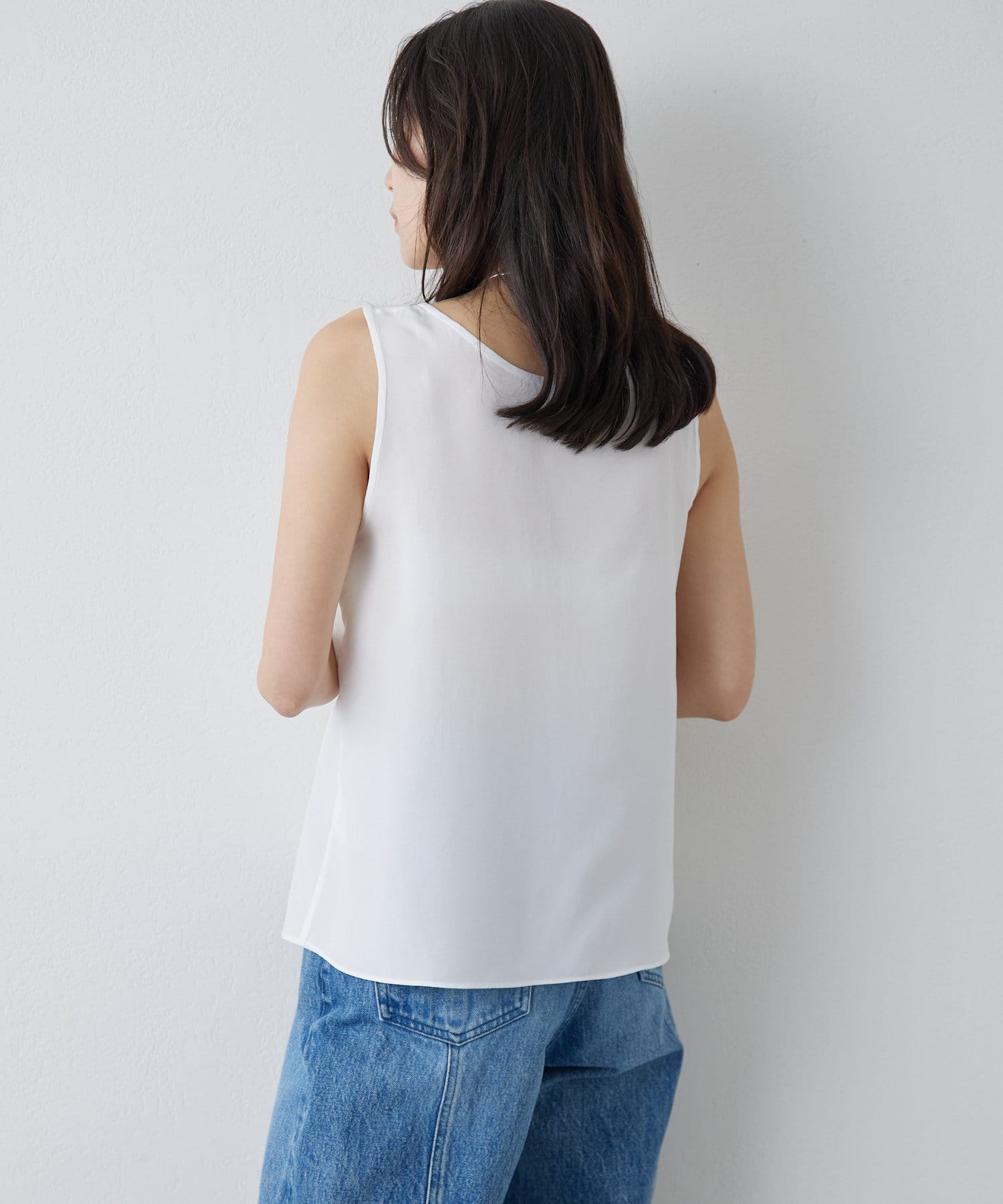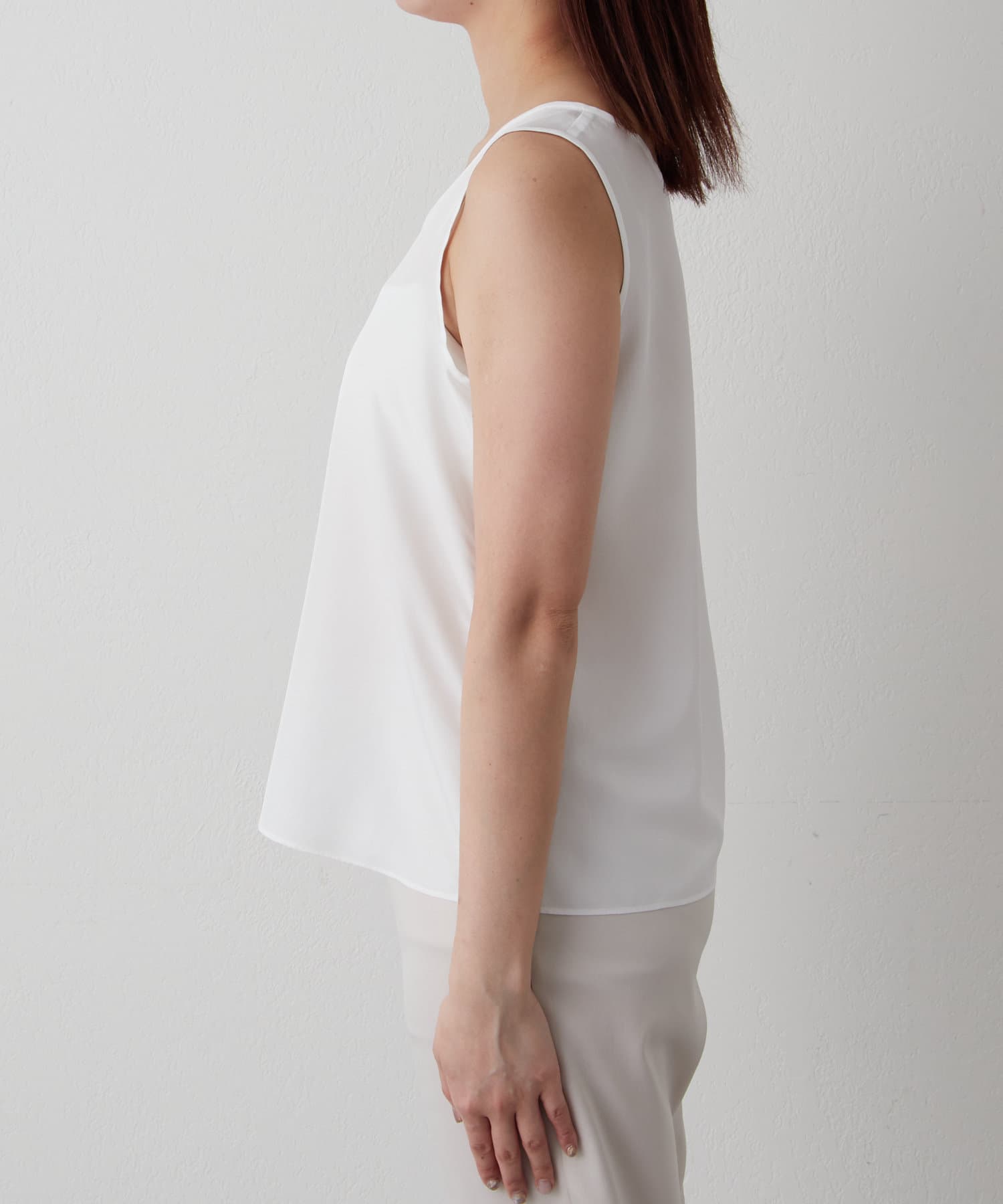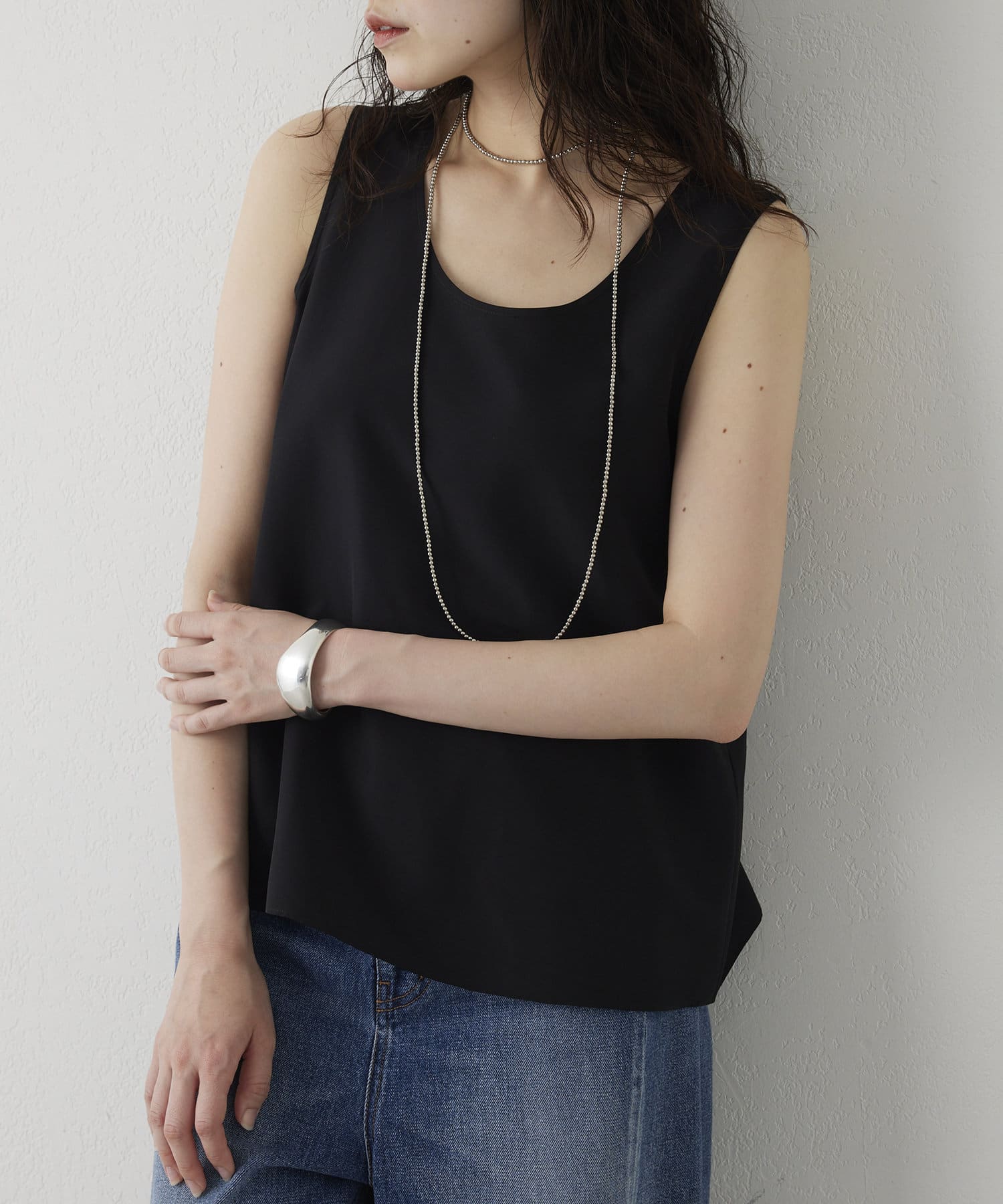 ■シルクのような見え感が特徴のサテンタンクトップ。