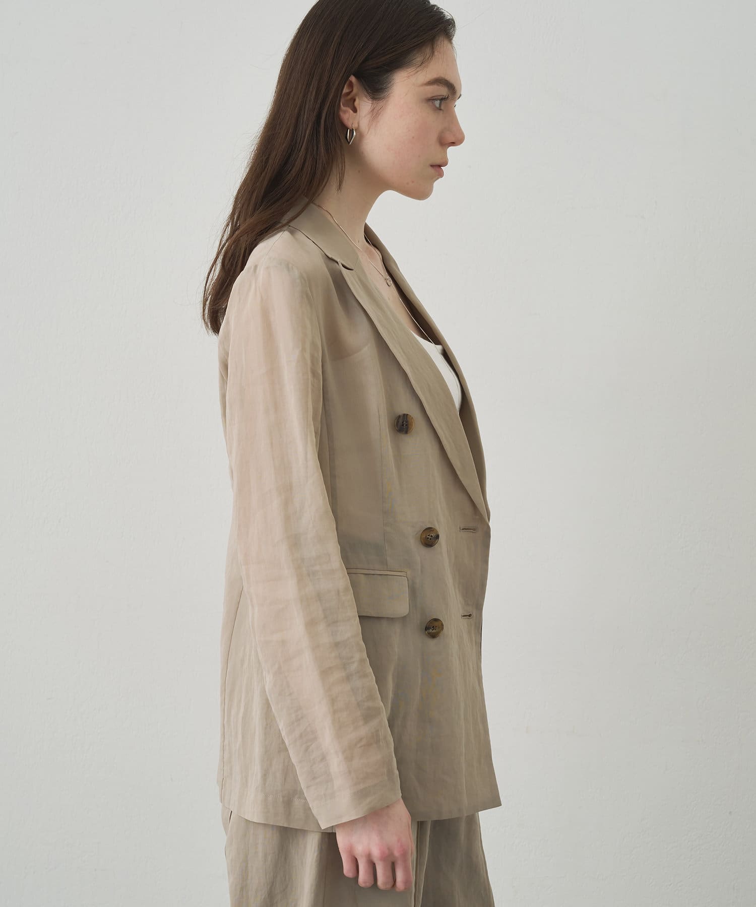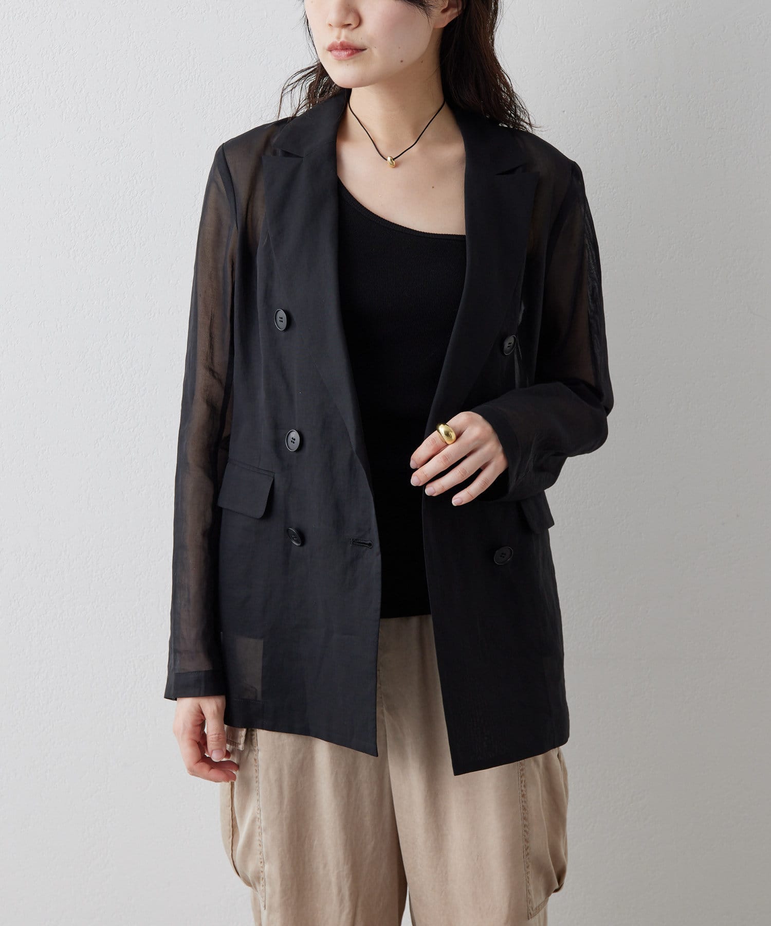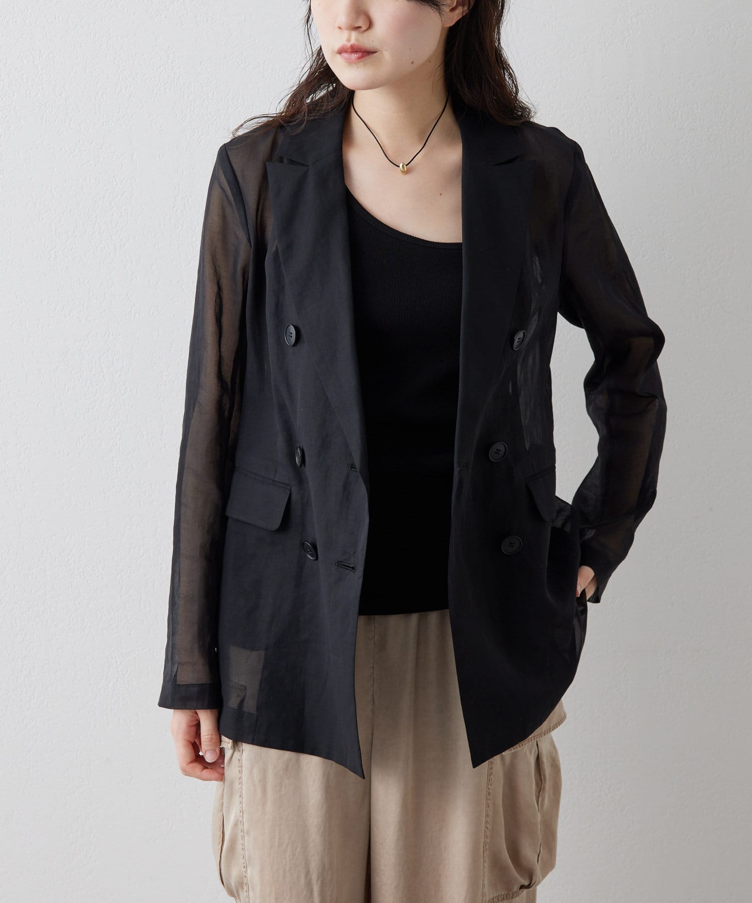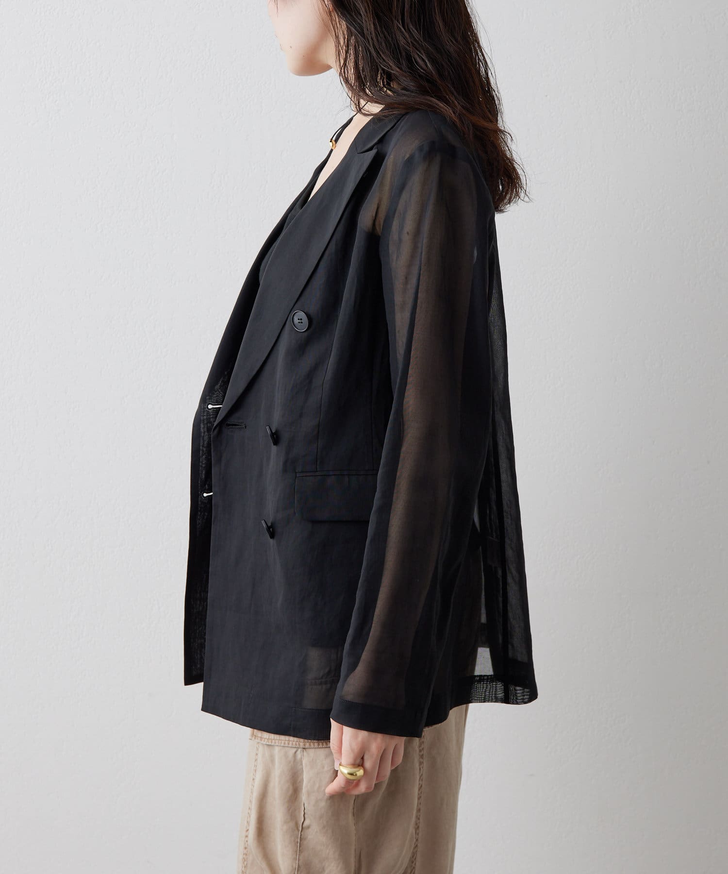 ■程よい透け感が涼しげなダブルジャケット。