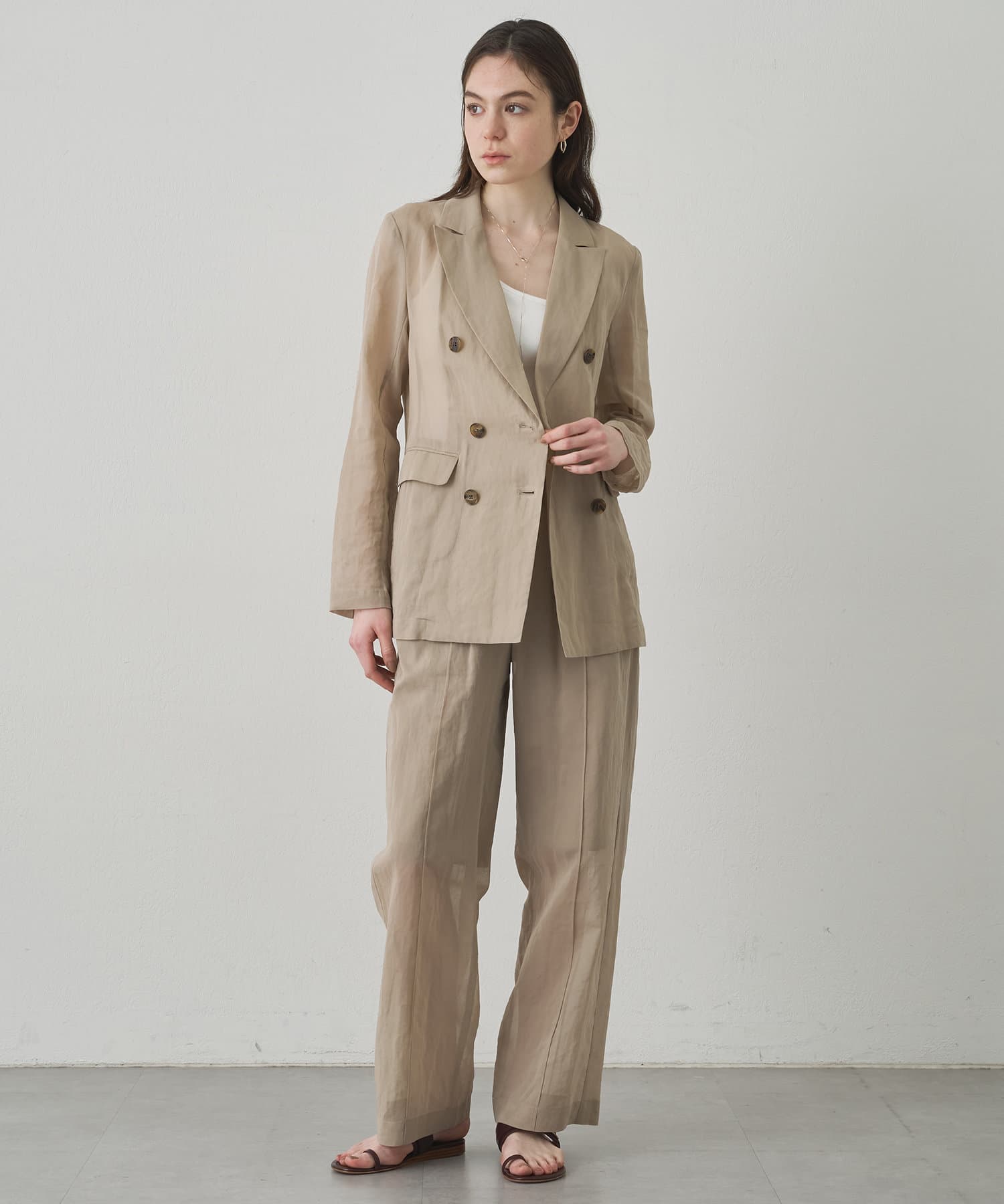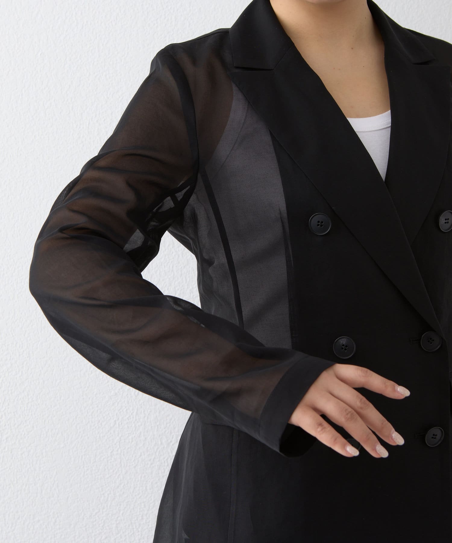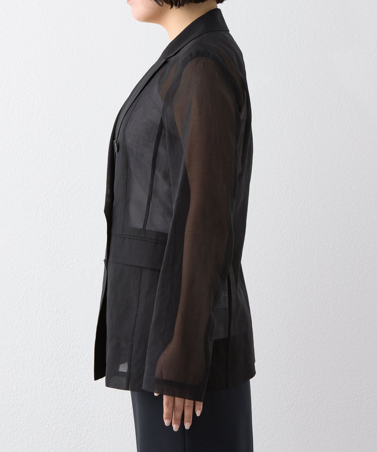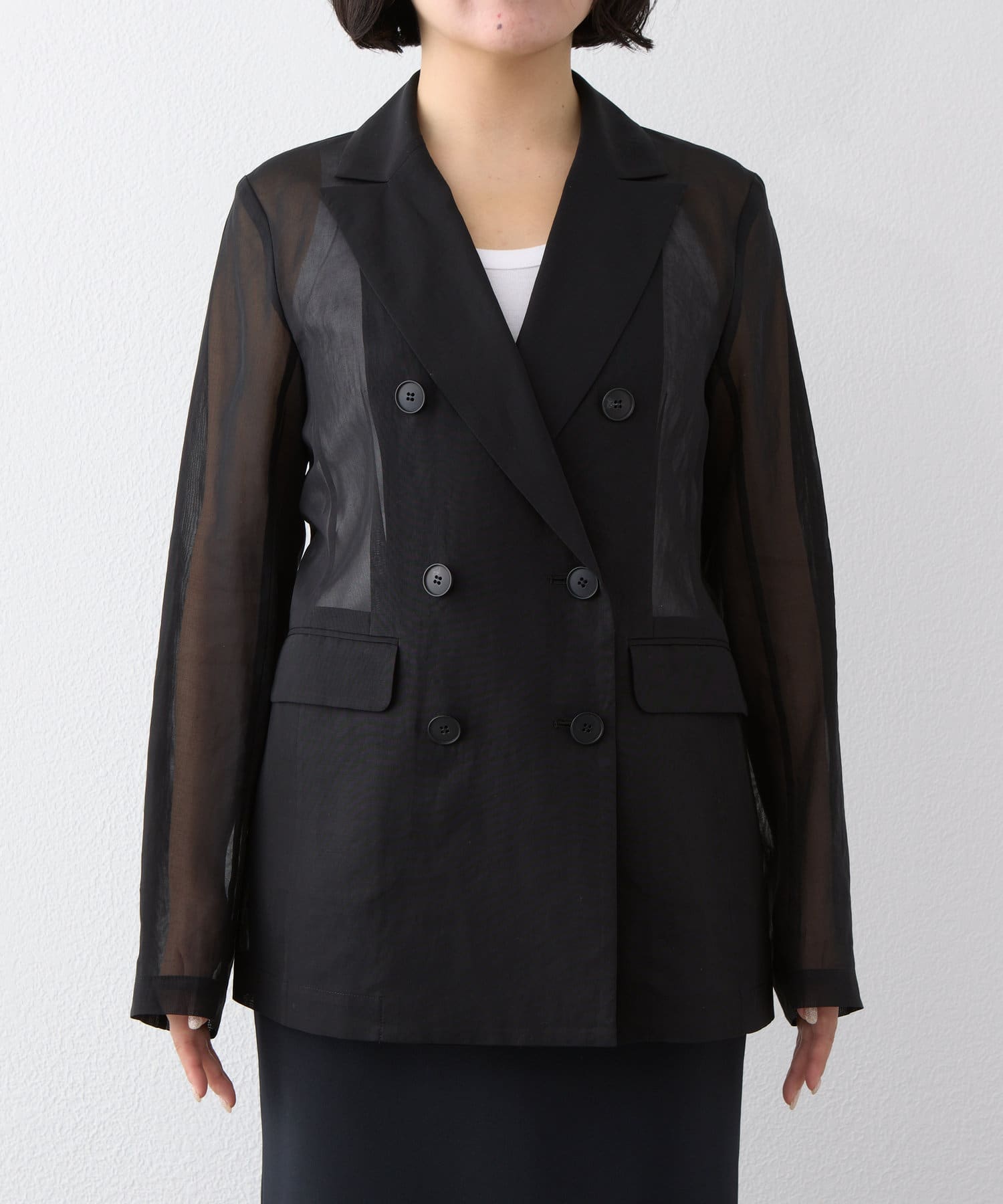 ■程よい透け感が涼しげなダブルジャケット。