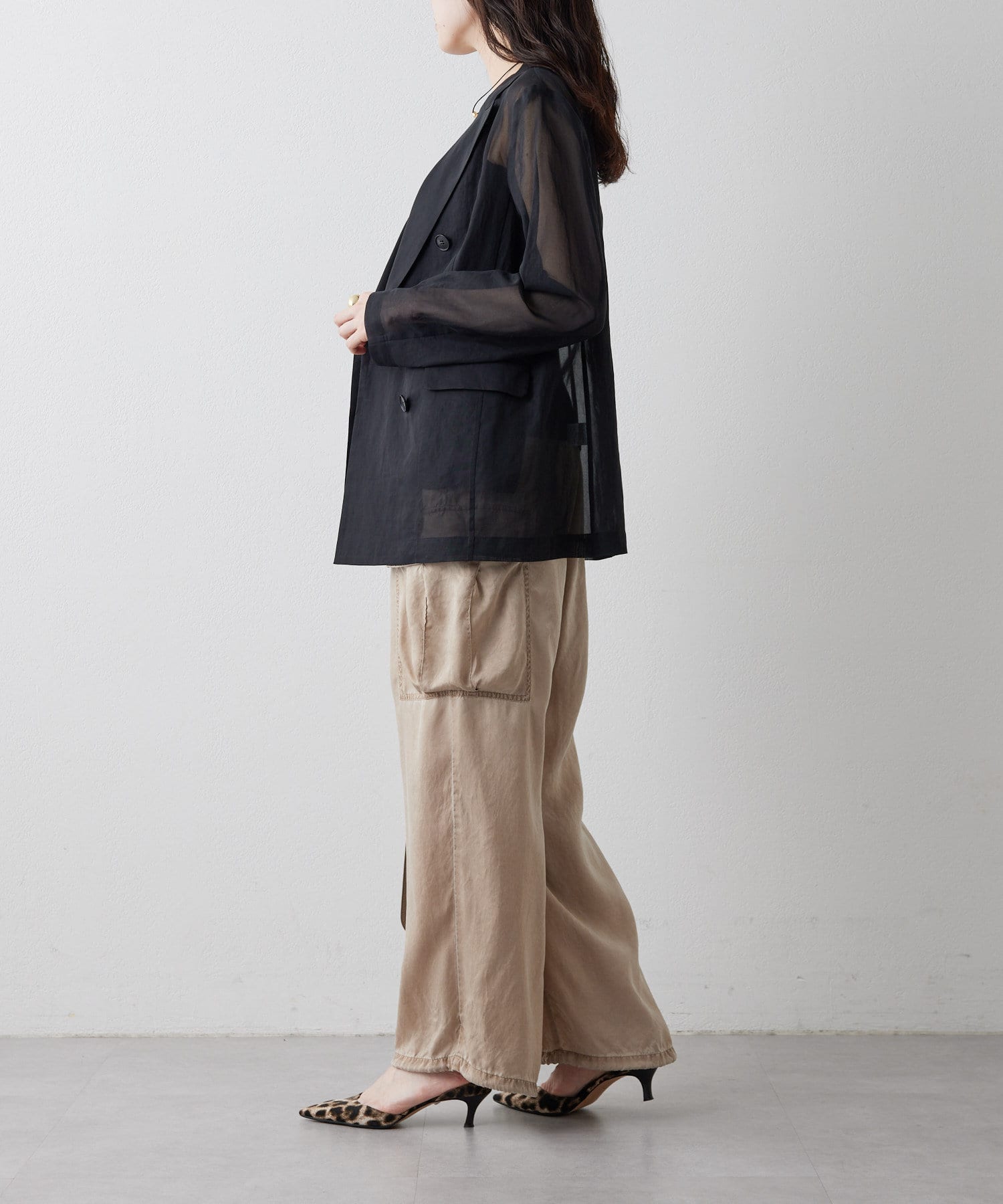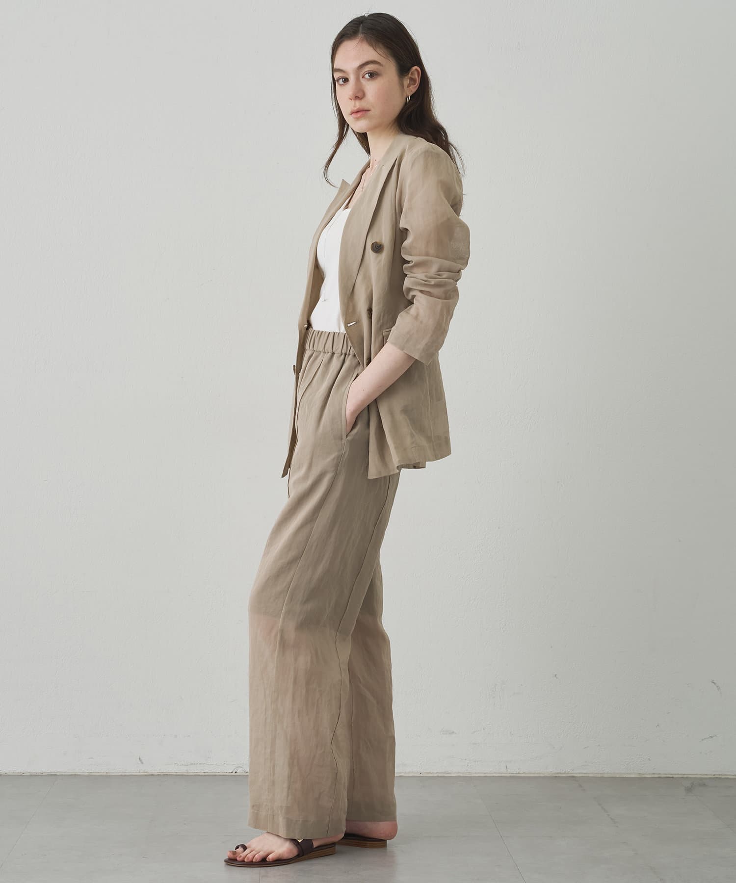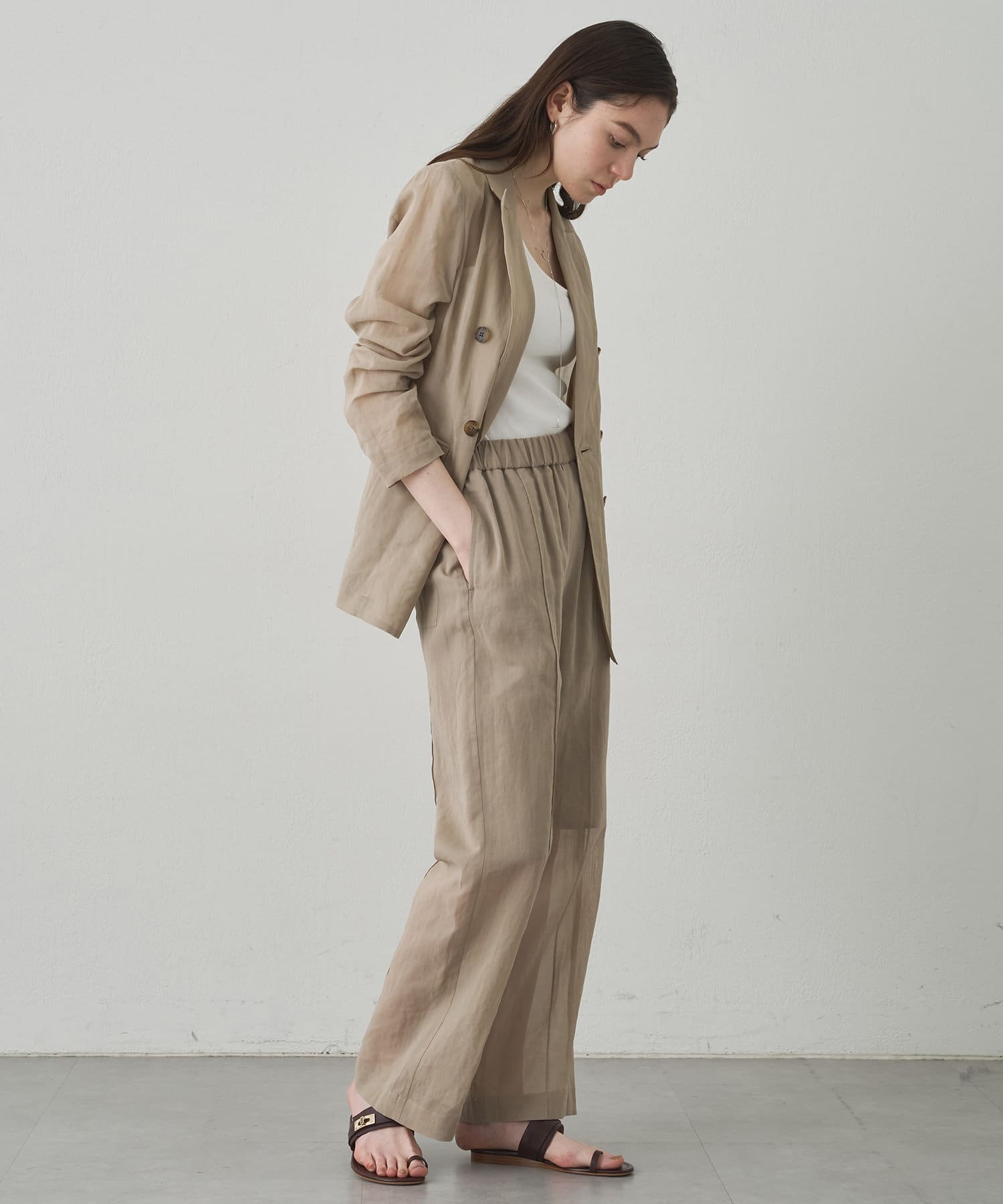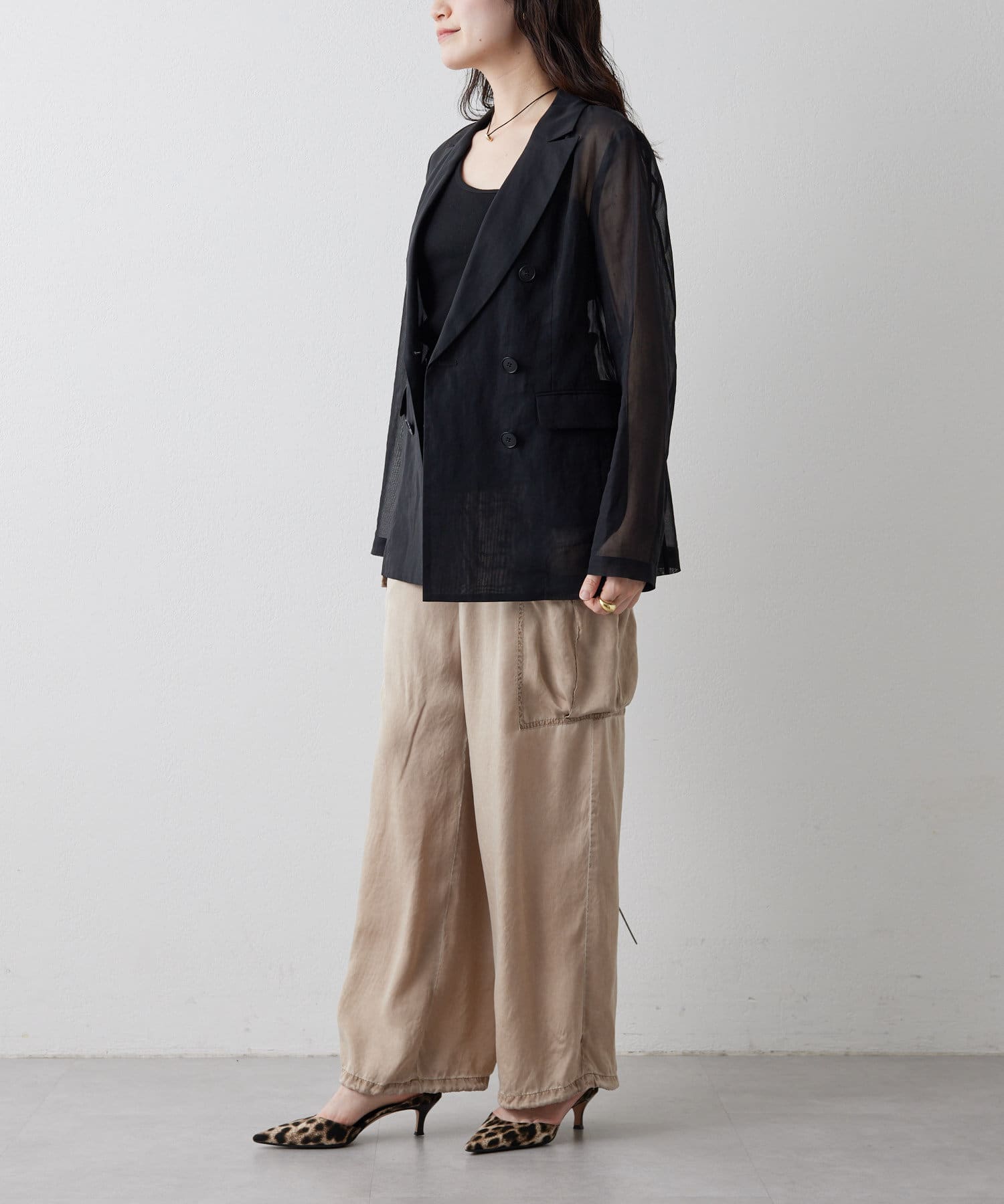 ■程よい透け感が涼しげなダブルジャケット。