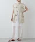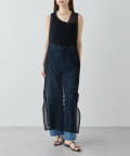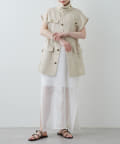 ■サイドスリット入りでボトムとのレイヤードもきれいに決まり、スタイリングに抜け感をプラス。