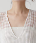 ドライタッチで清涼感のある、四角いネット組織のメッシュニット。