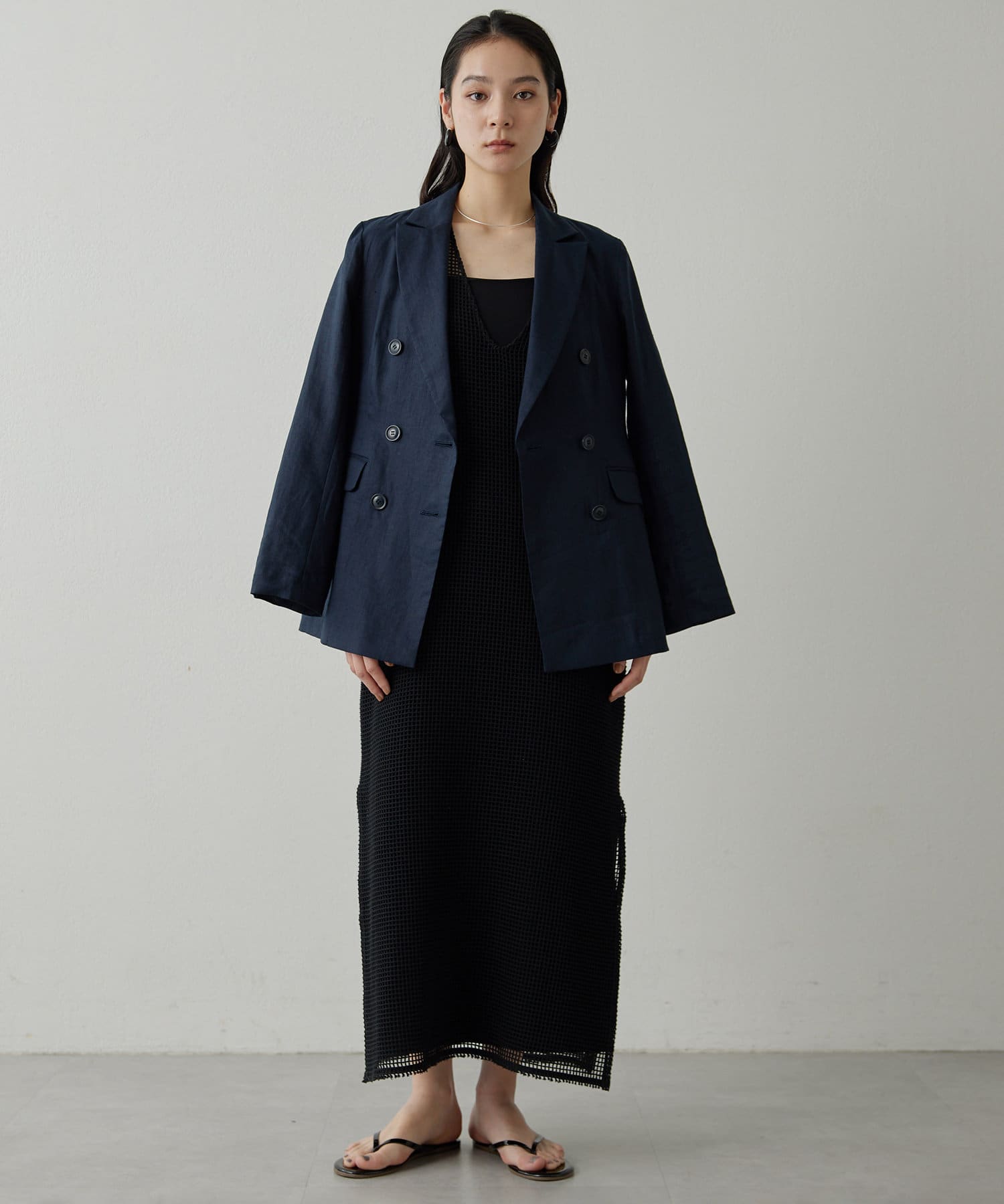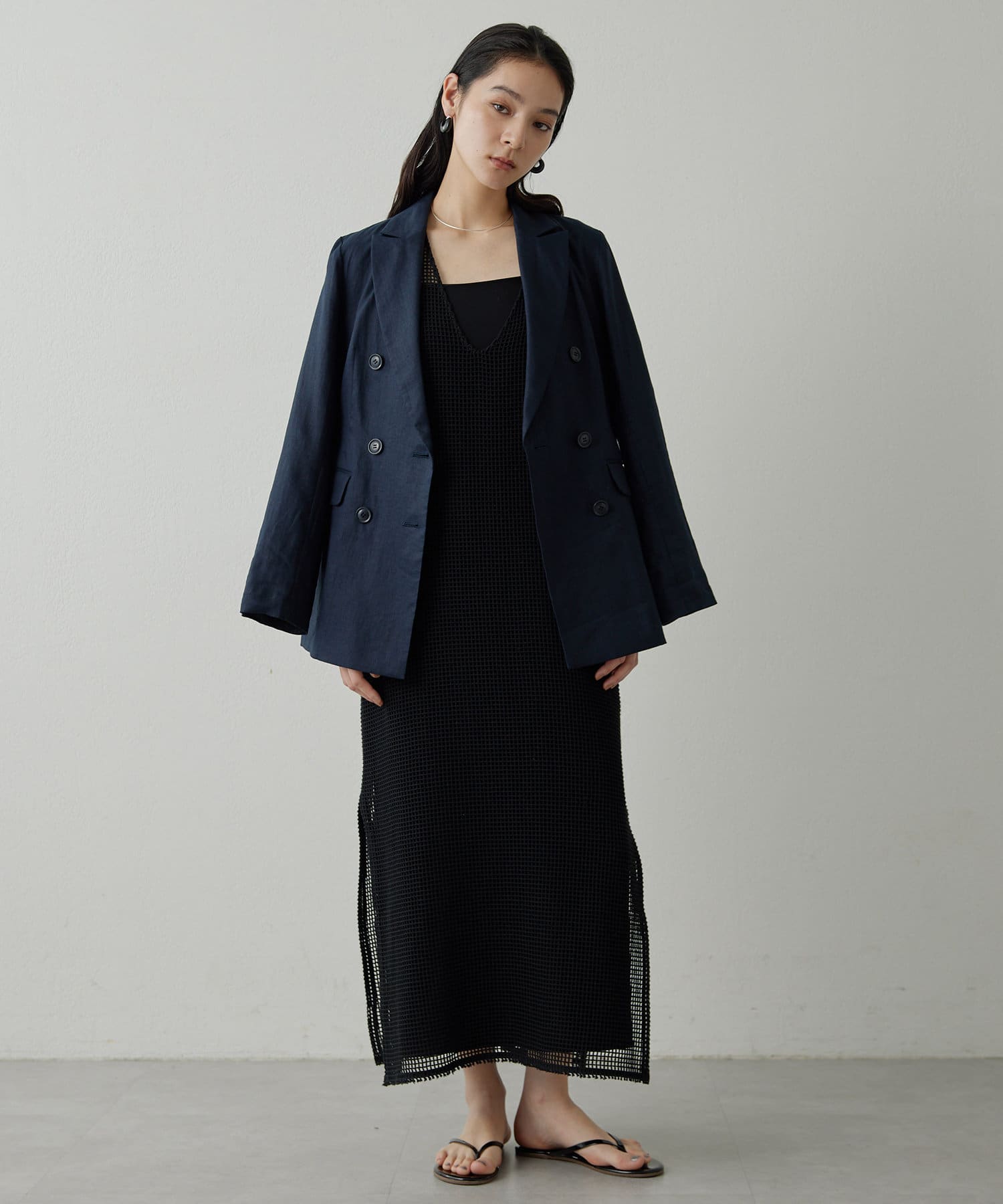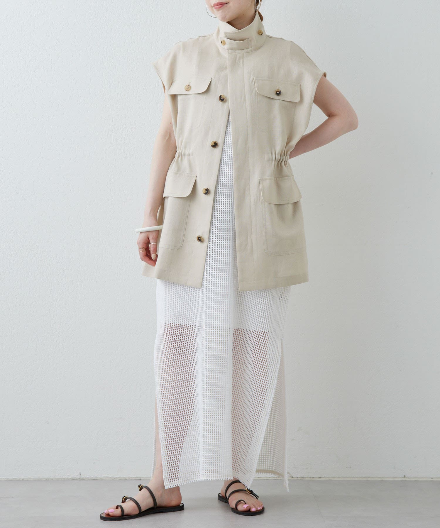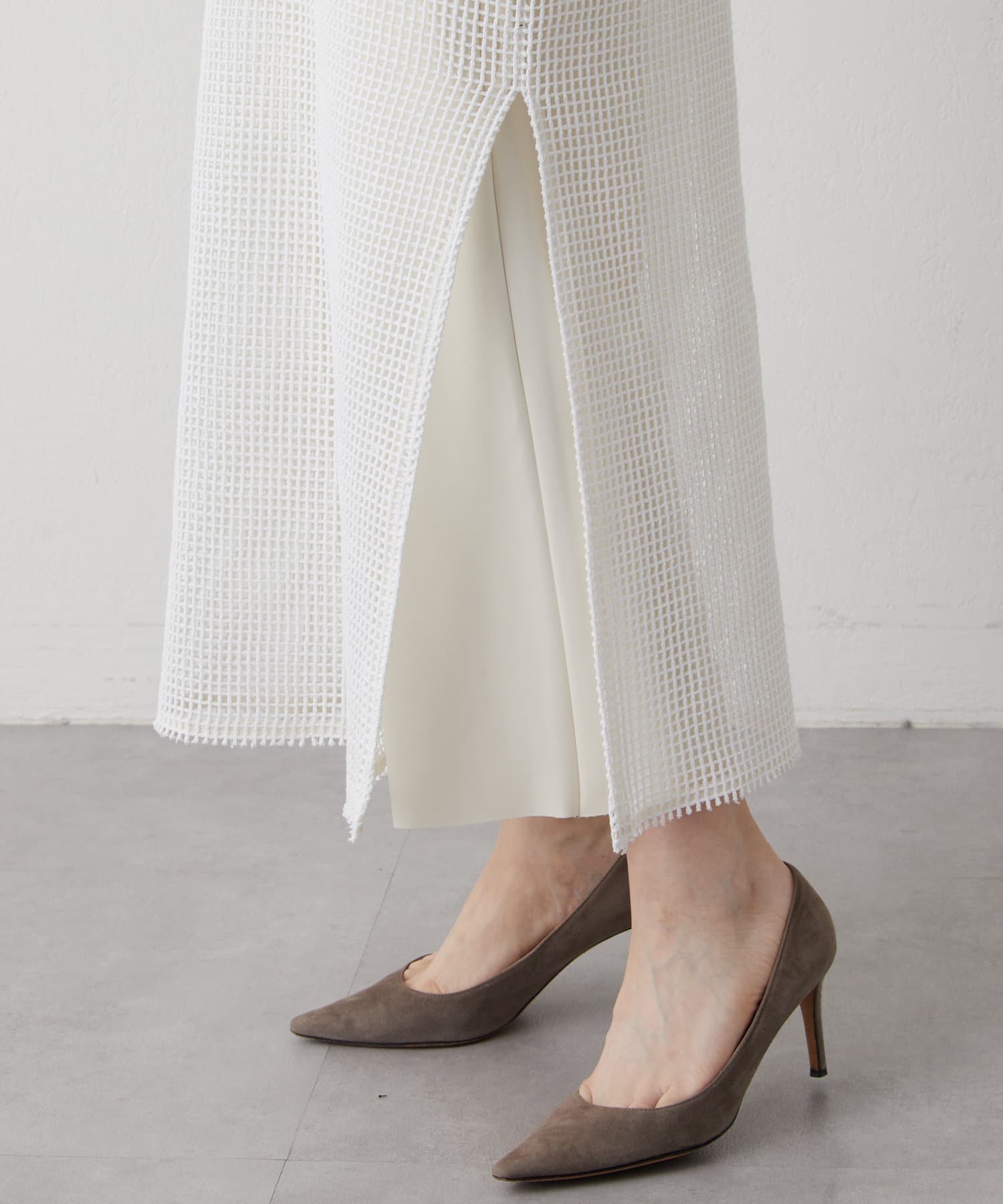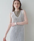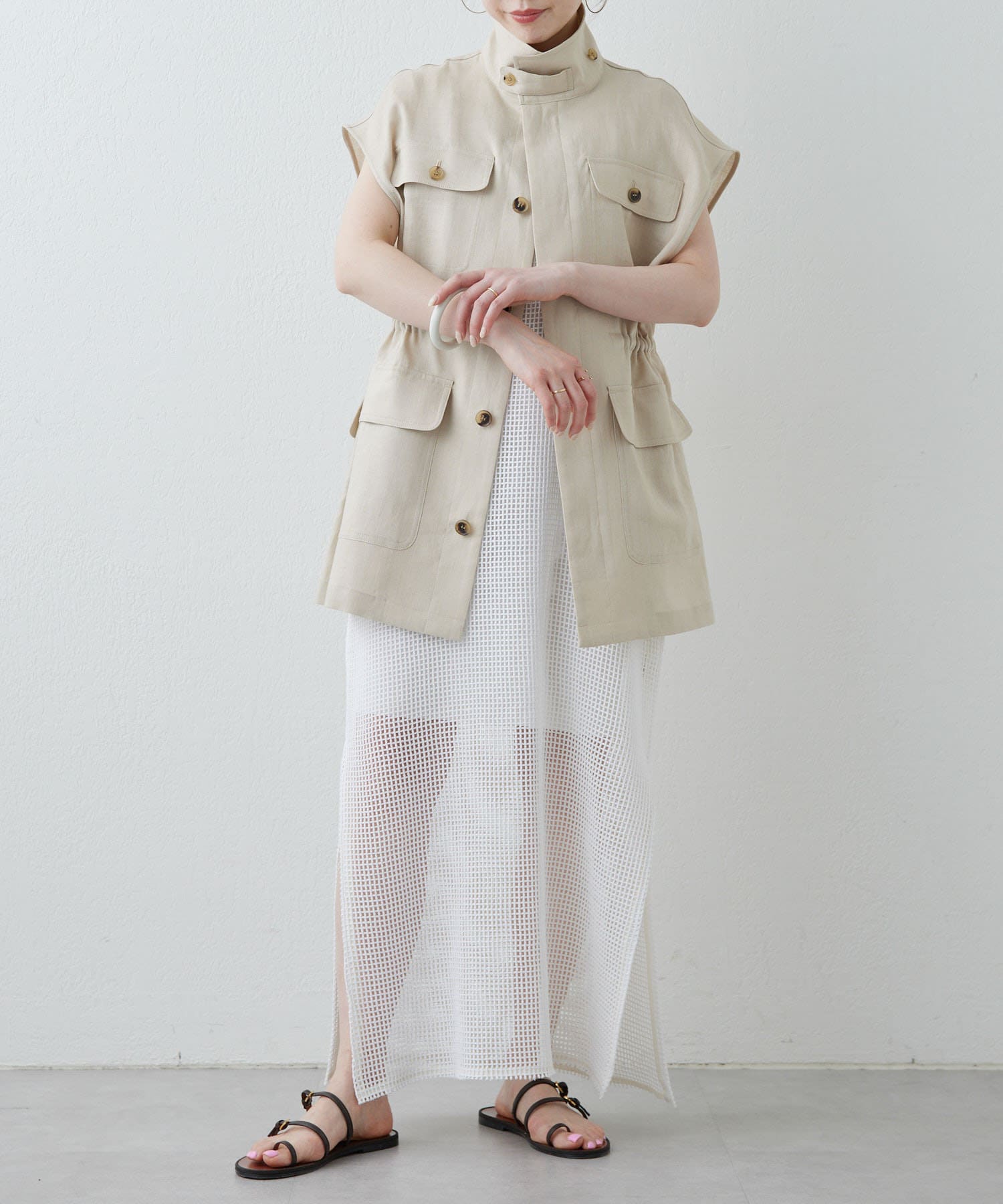 ■スクエアメッシュの表情がポイントのノースリーブワンピース。