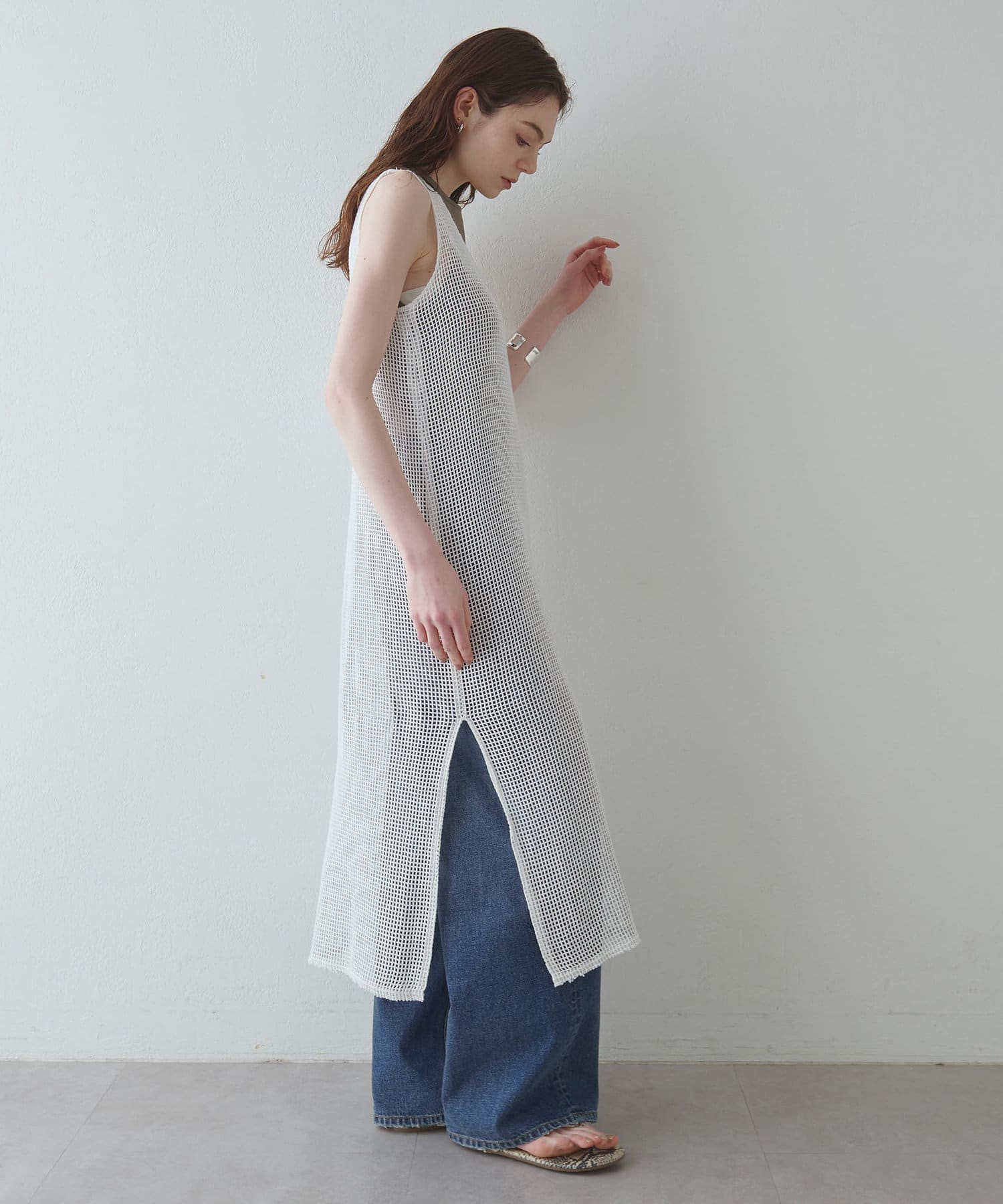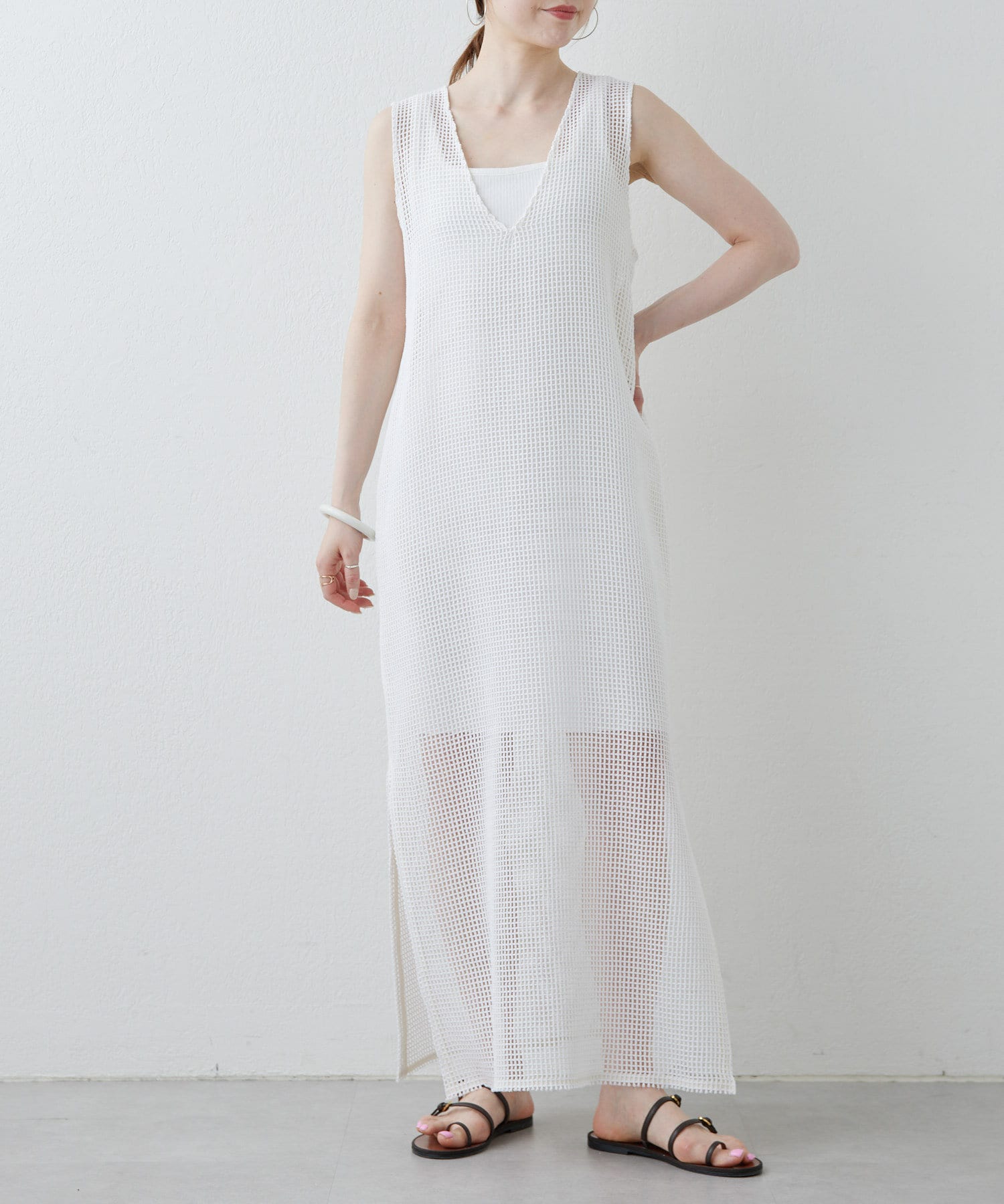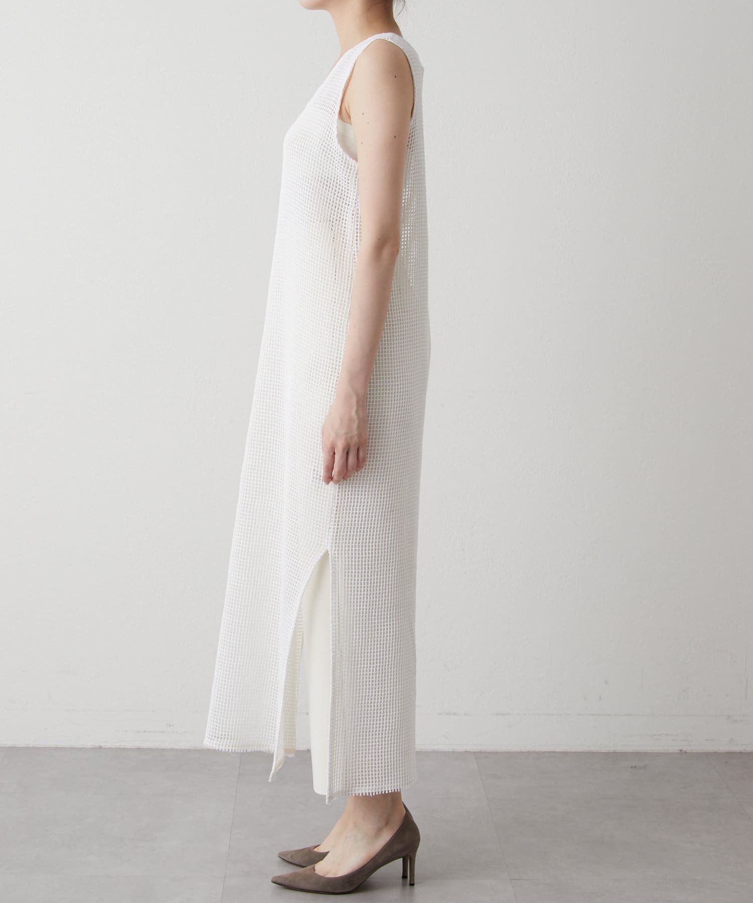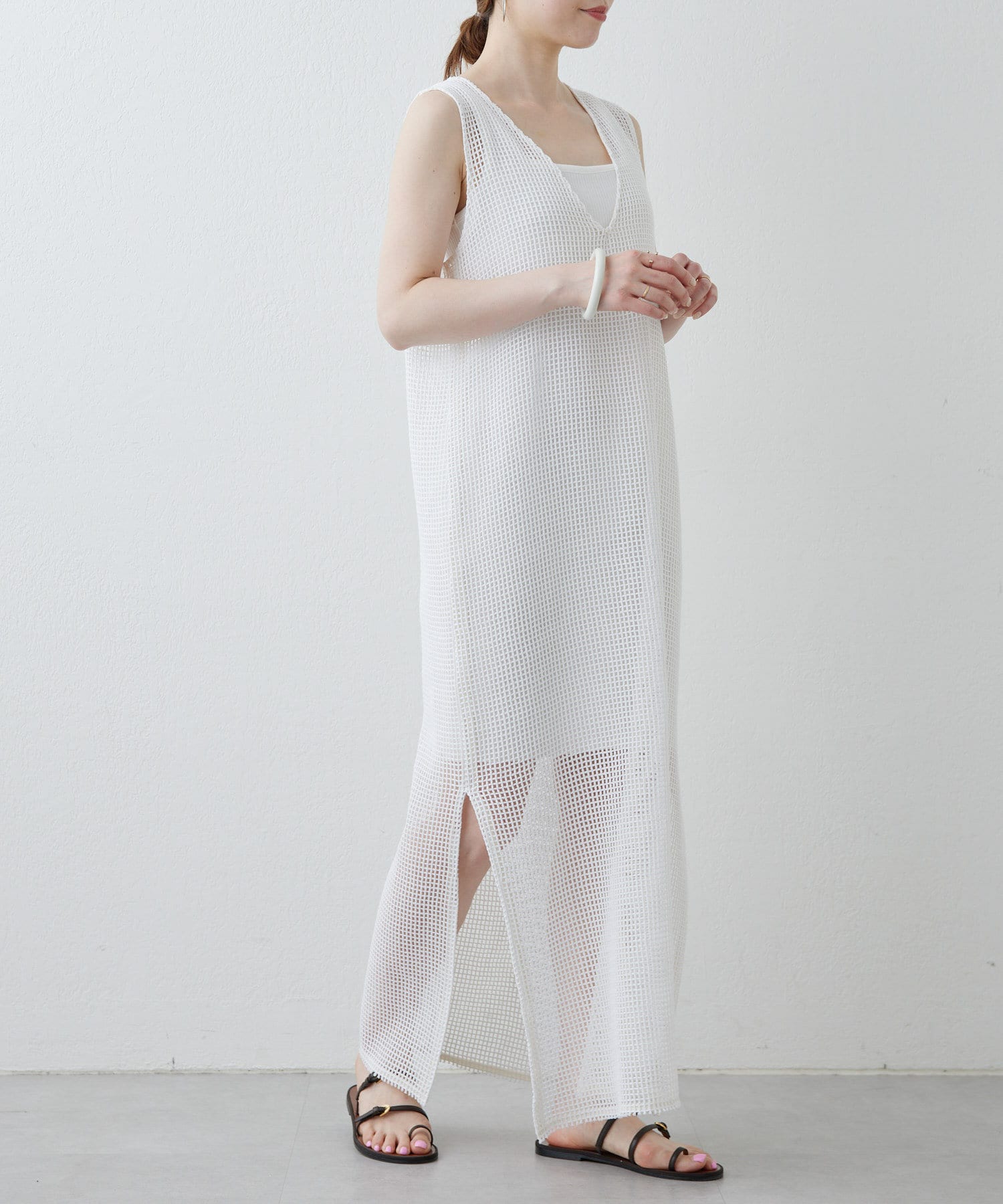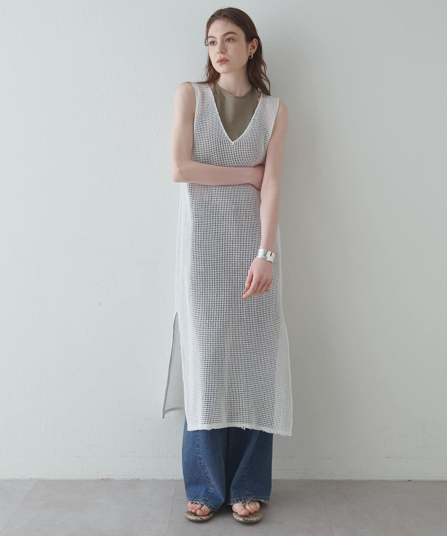 レイヤードスタイルの幅を楽しめるメッシュノースリワンピ