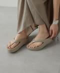 ■ツルツルとした質感のトングがポイントのプラットフォームサンダル。