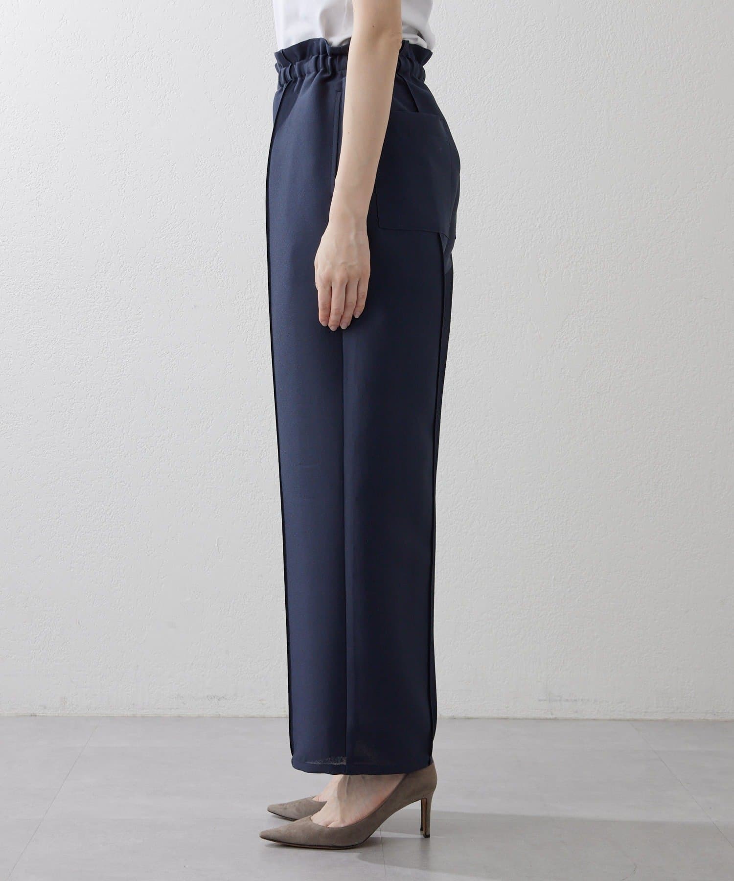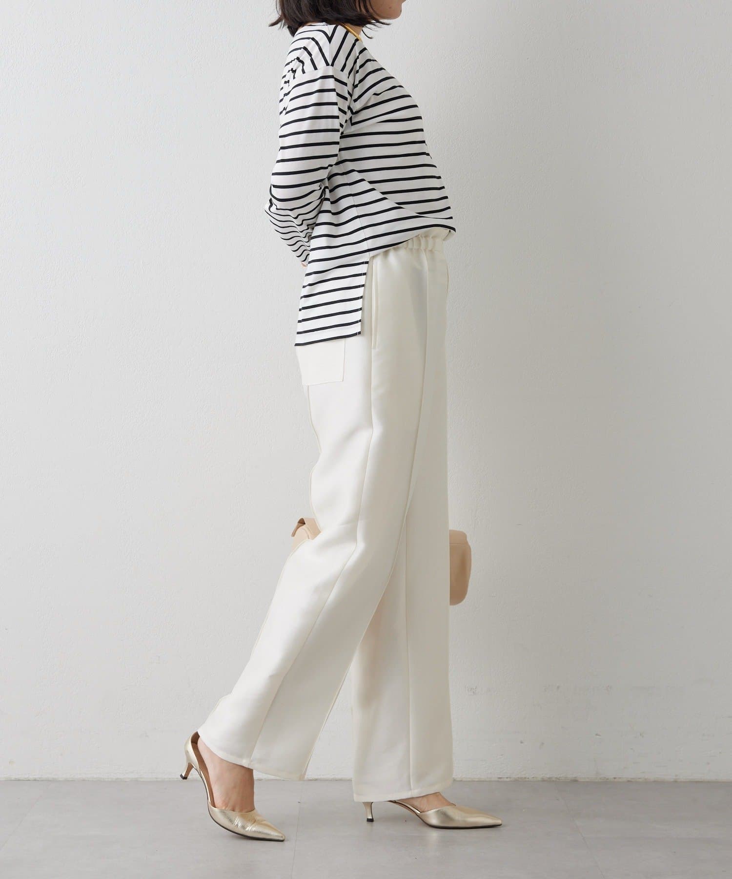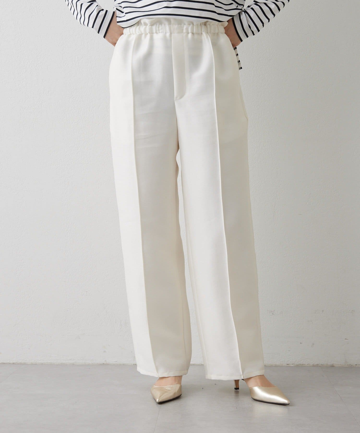 ■きれい見えを叶えつつ、ウエストはエラスティックコードをストッパーに通したゴム仕様でイージーな履き心地に。