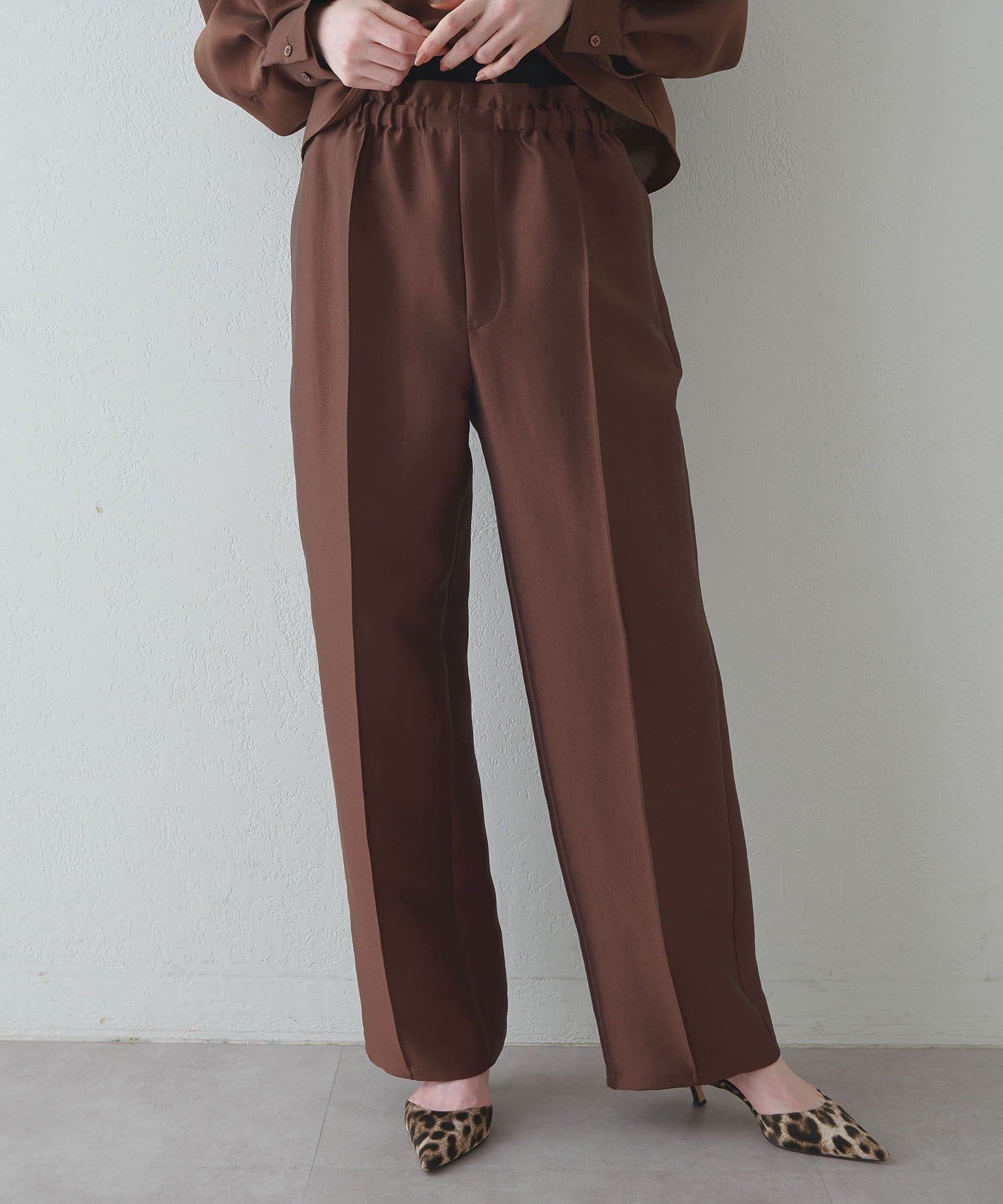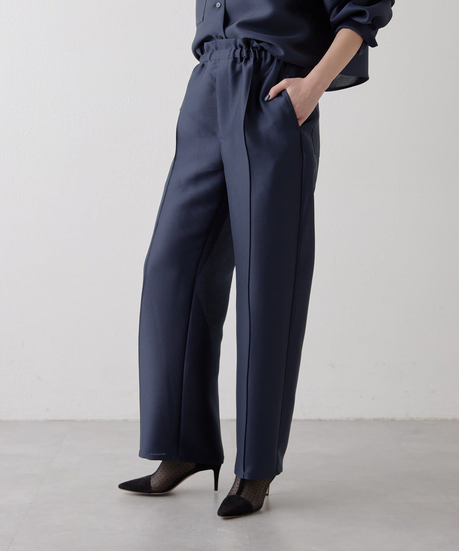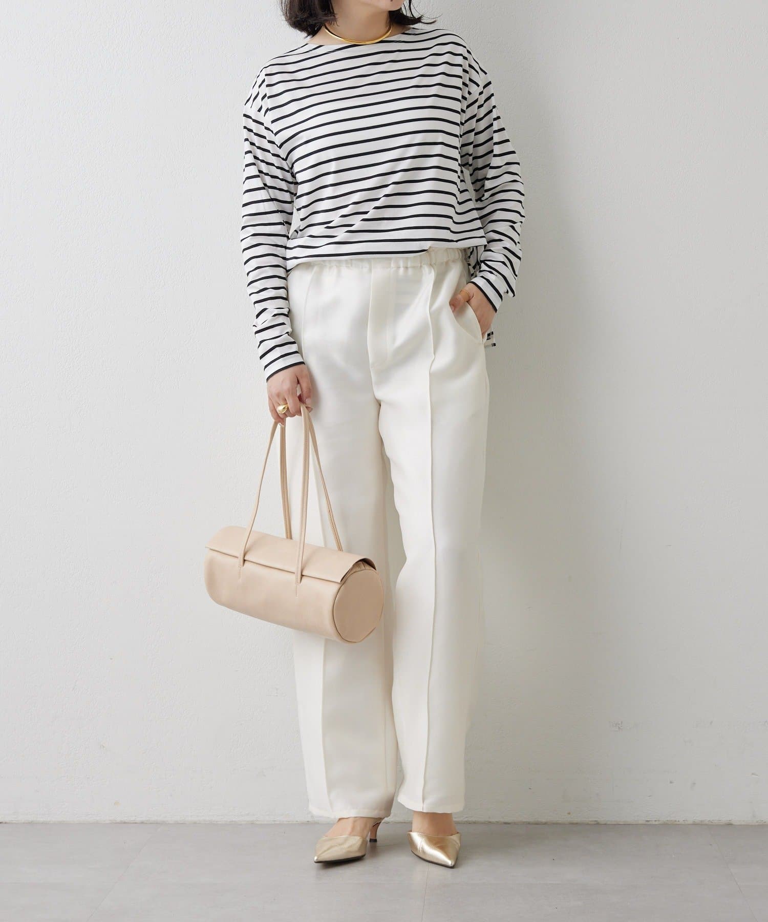 ■きれい見えを叶えつつ、ウエストはエラスティックコードをストッパーに通したゴム仕様でイージーな履き心地に。