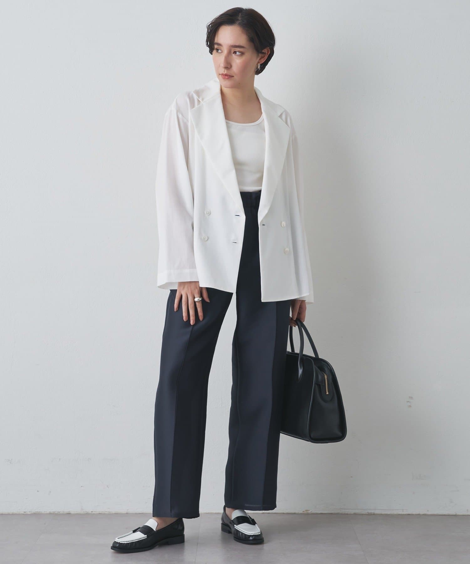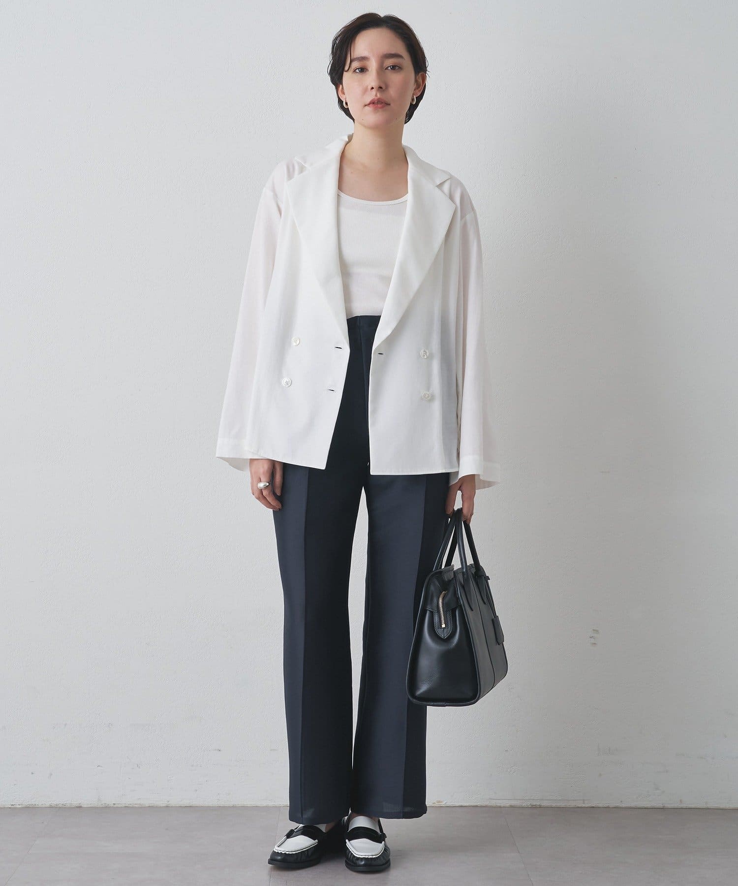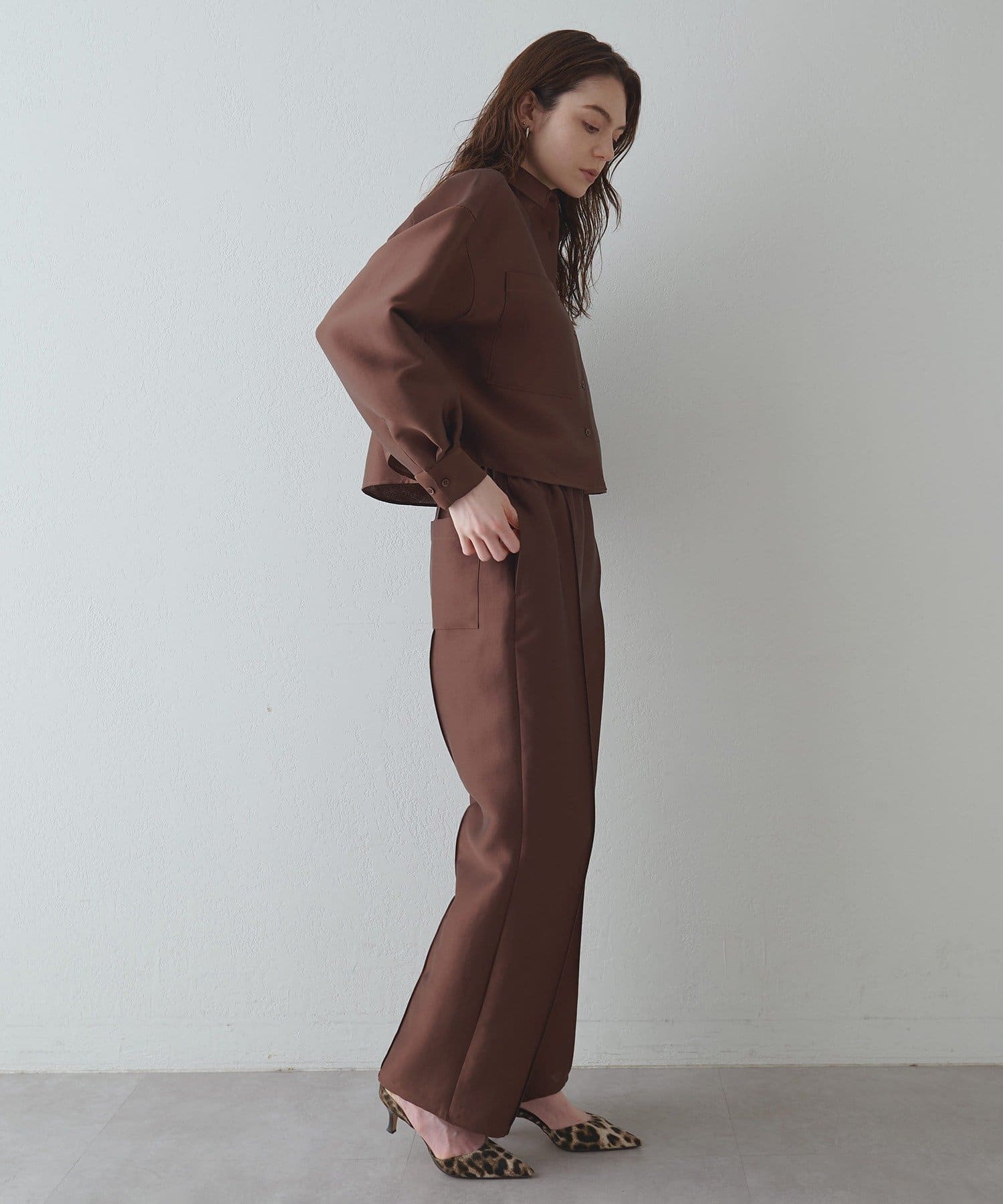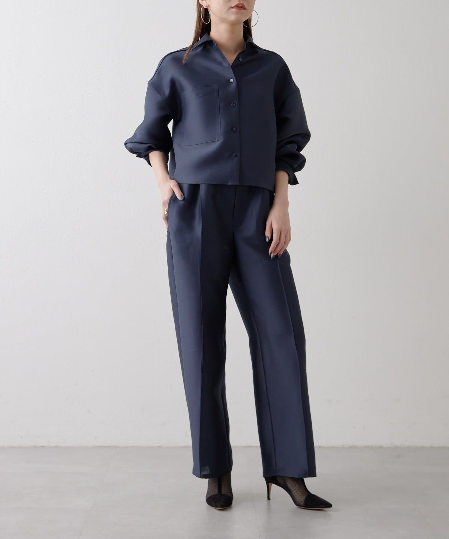 ■同素材のシルキーダブルクロスウエストタックブラウス(ブランド品番:DNZ1051704A0002)とのセットアップもおすすめです。