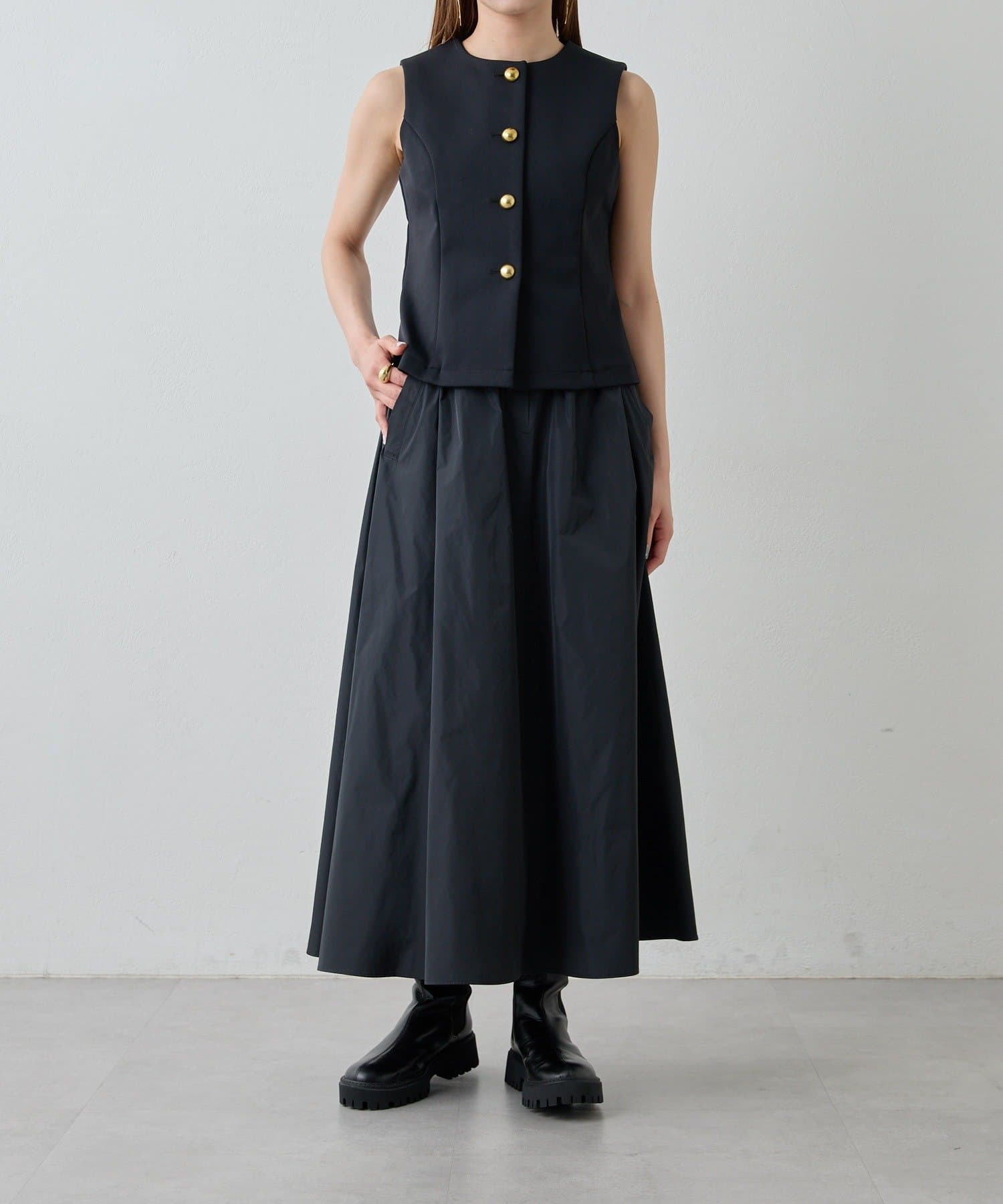 ■マイクロタフタを使用した軽やかなギャザースカート。