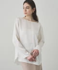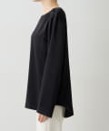 ■やや長めなワイドストレートの袖に、裾をラウンドさせたシルエットが一枚でもサマになるデザイン。
