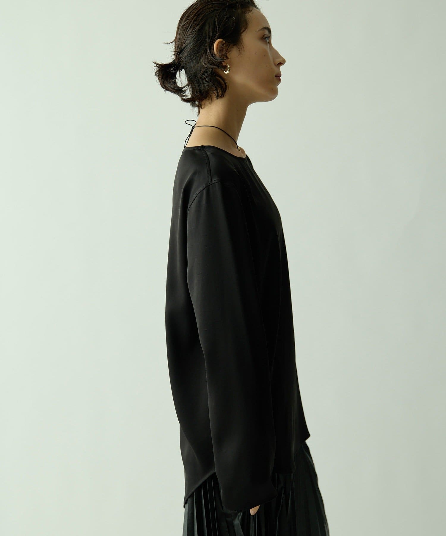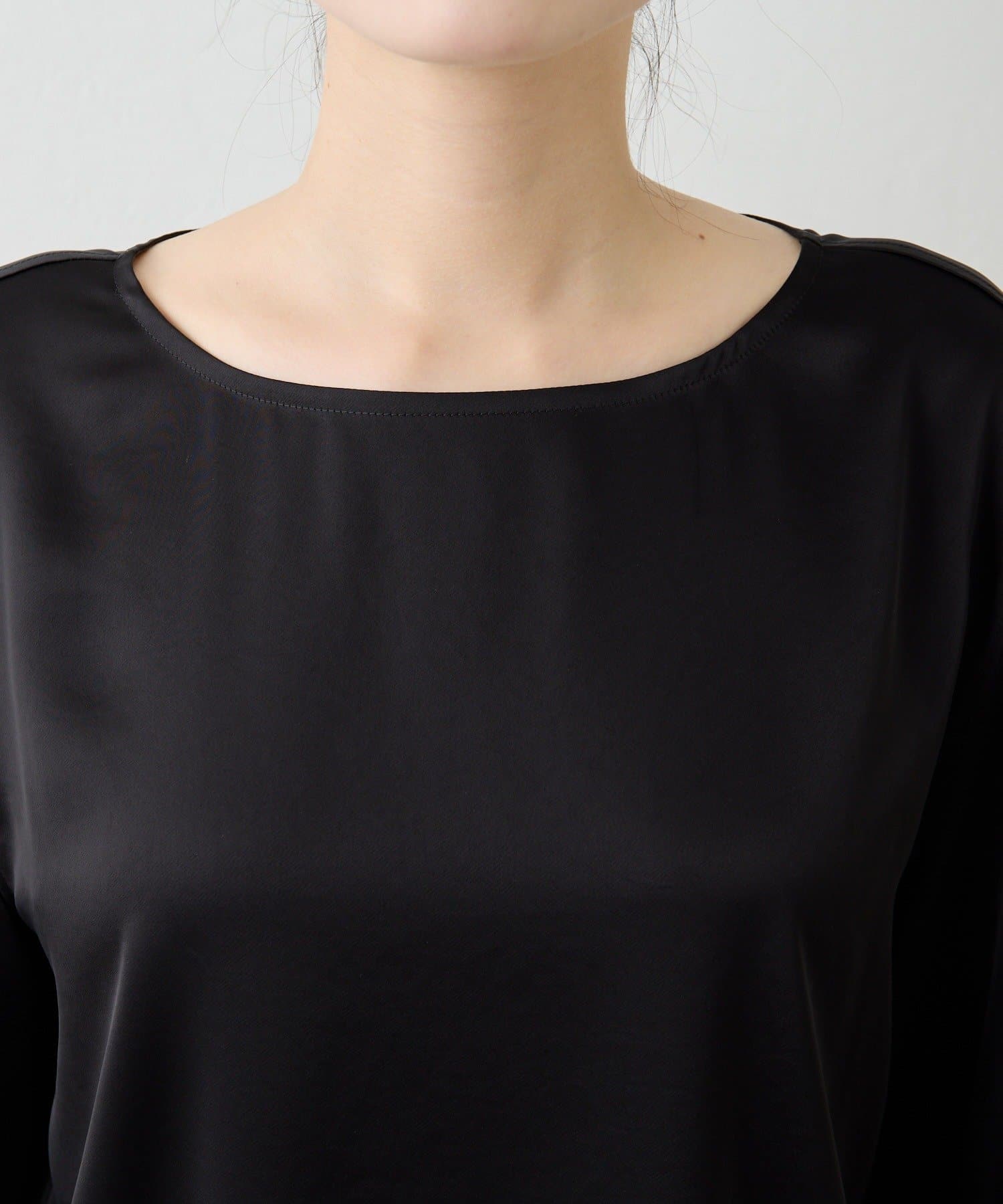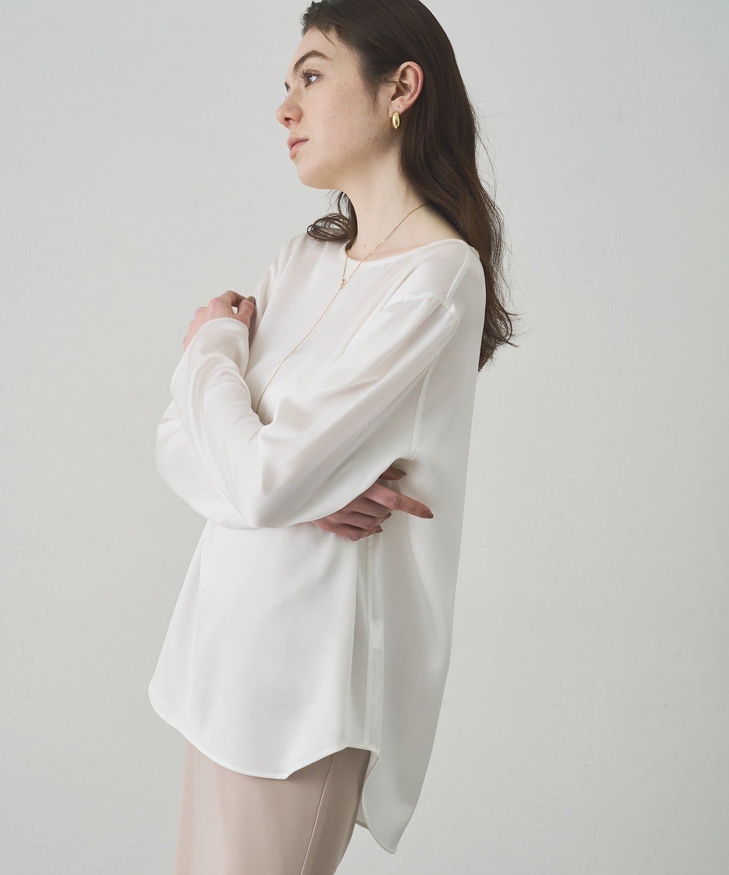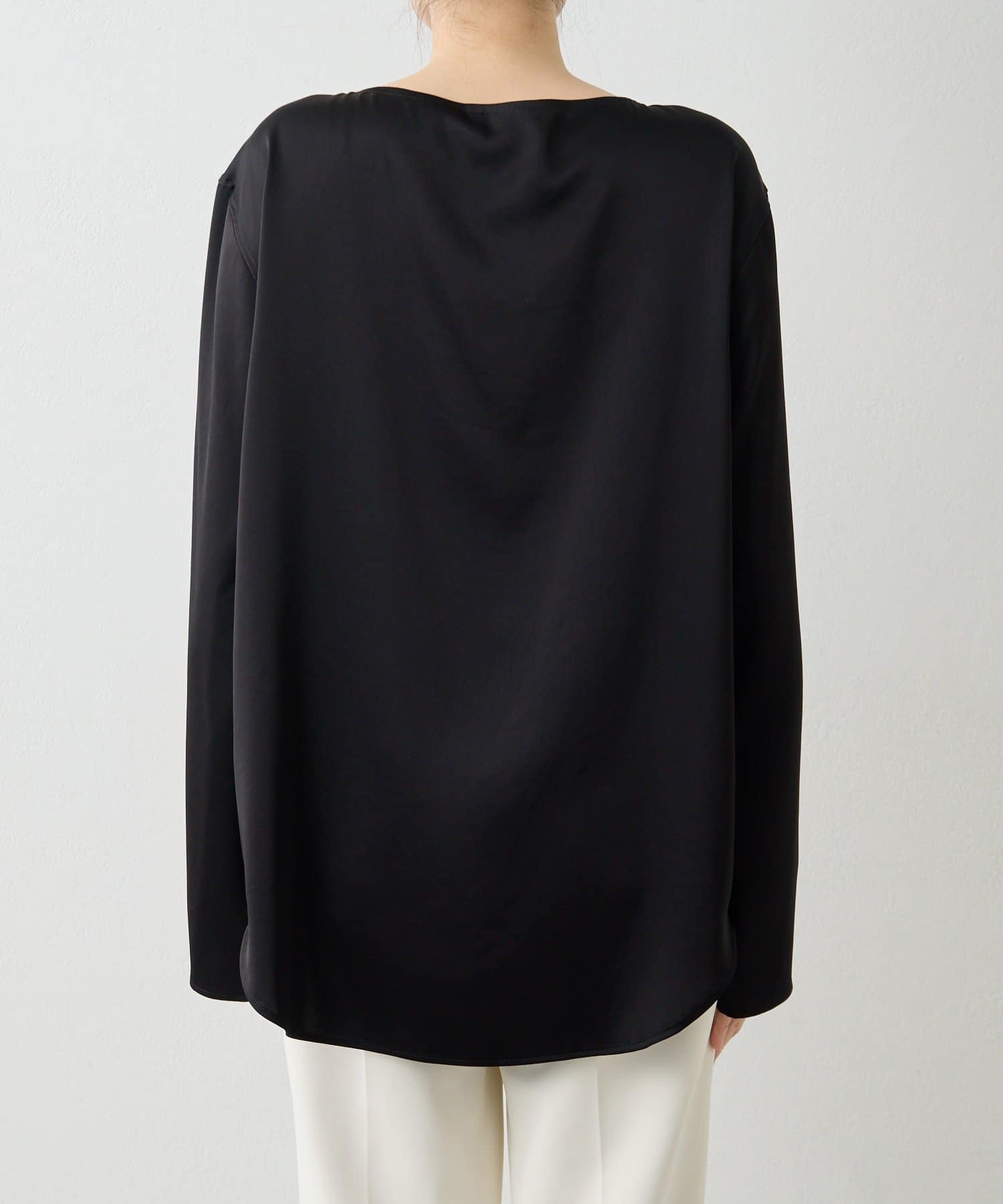 ■シルクライクなサテン生地が上品なプルオーバーブラウス。