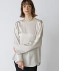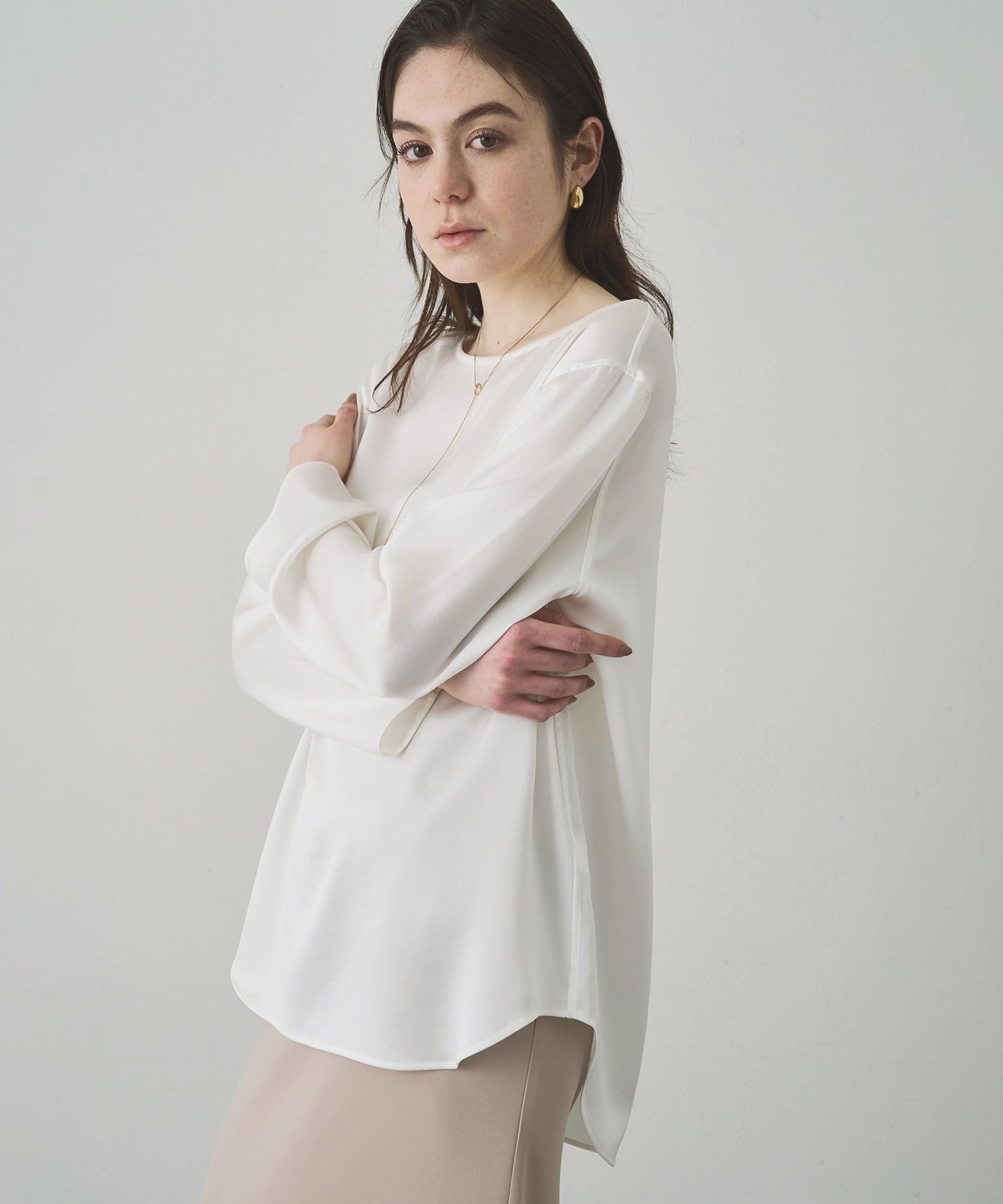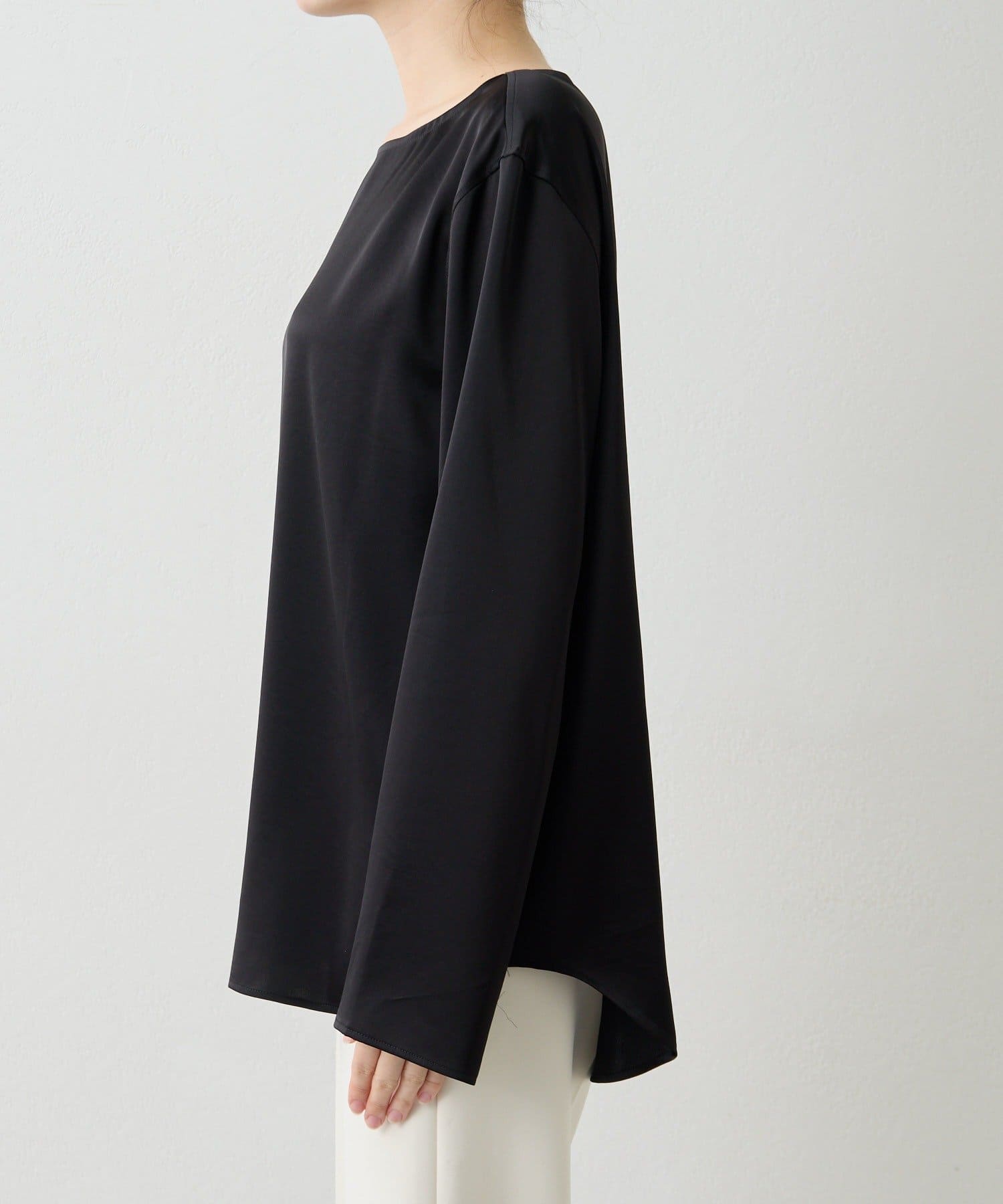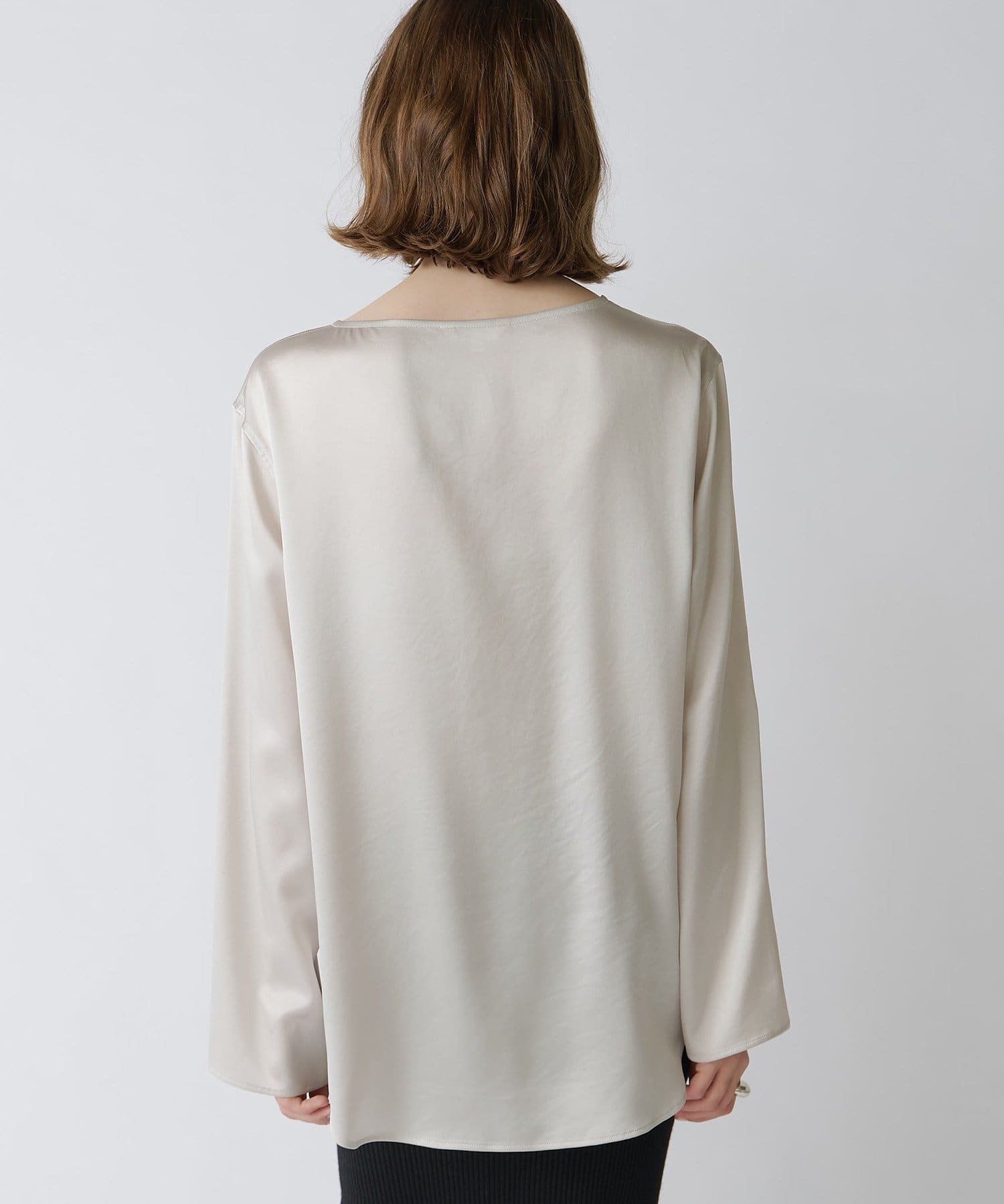 ■シルクライクなサテン生地が上品なプルオーバーブラウス。