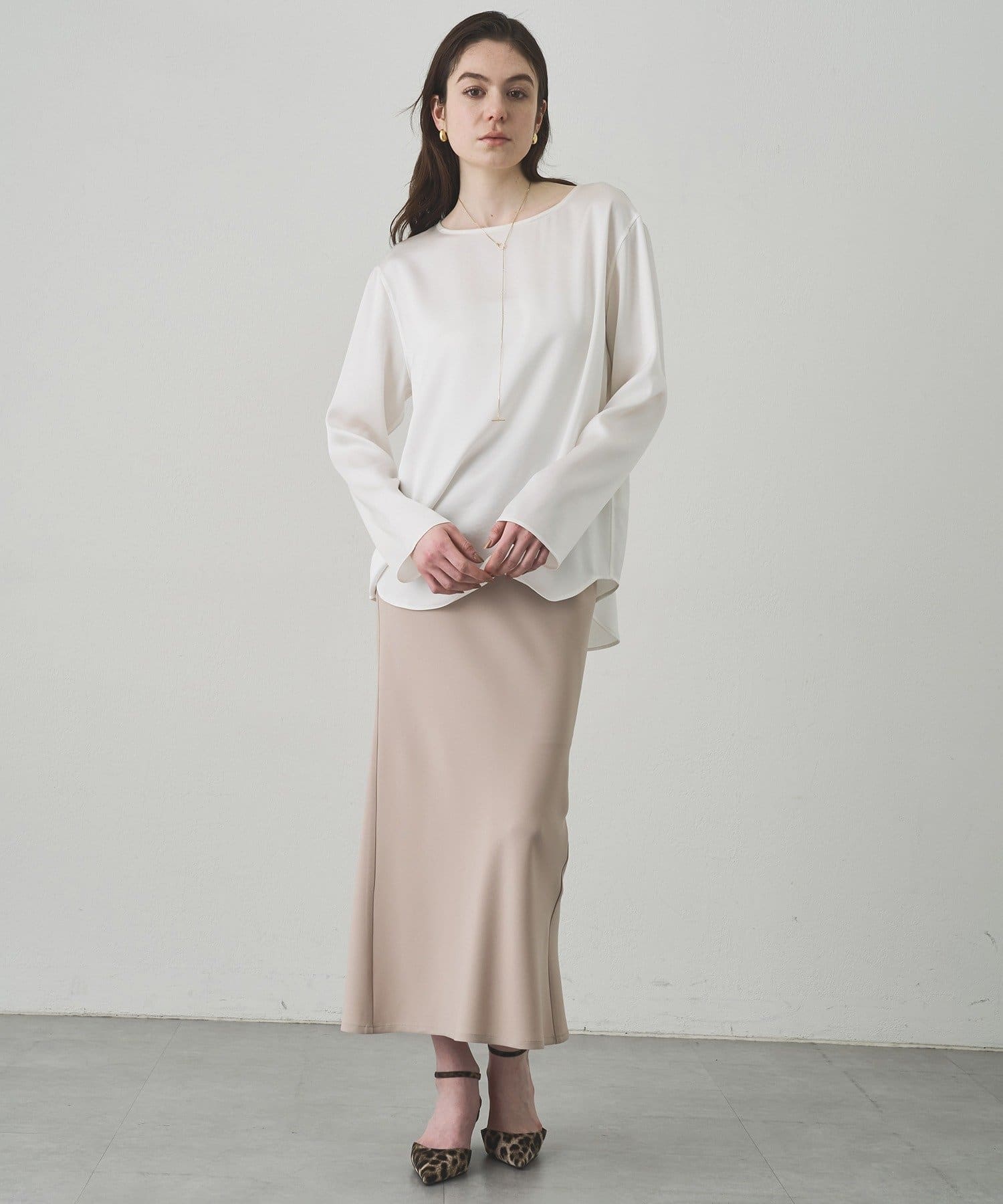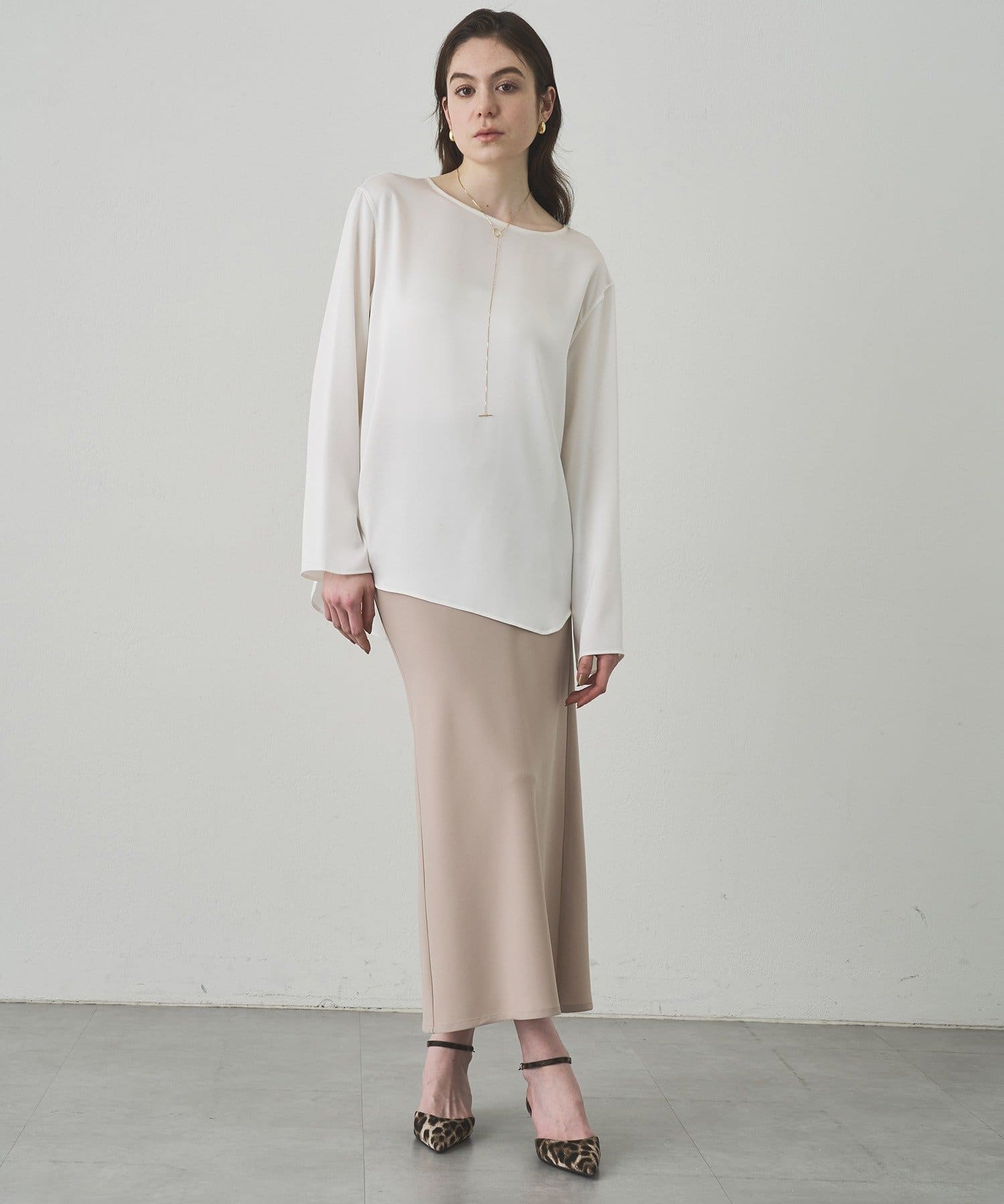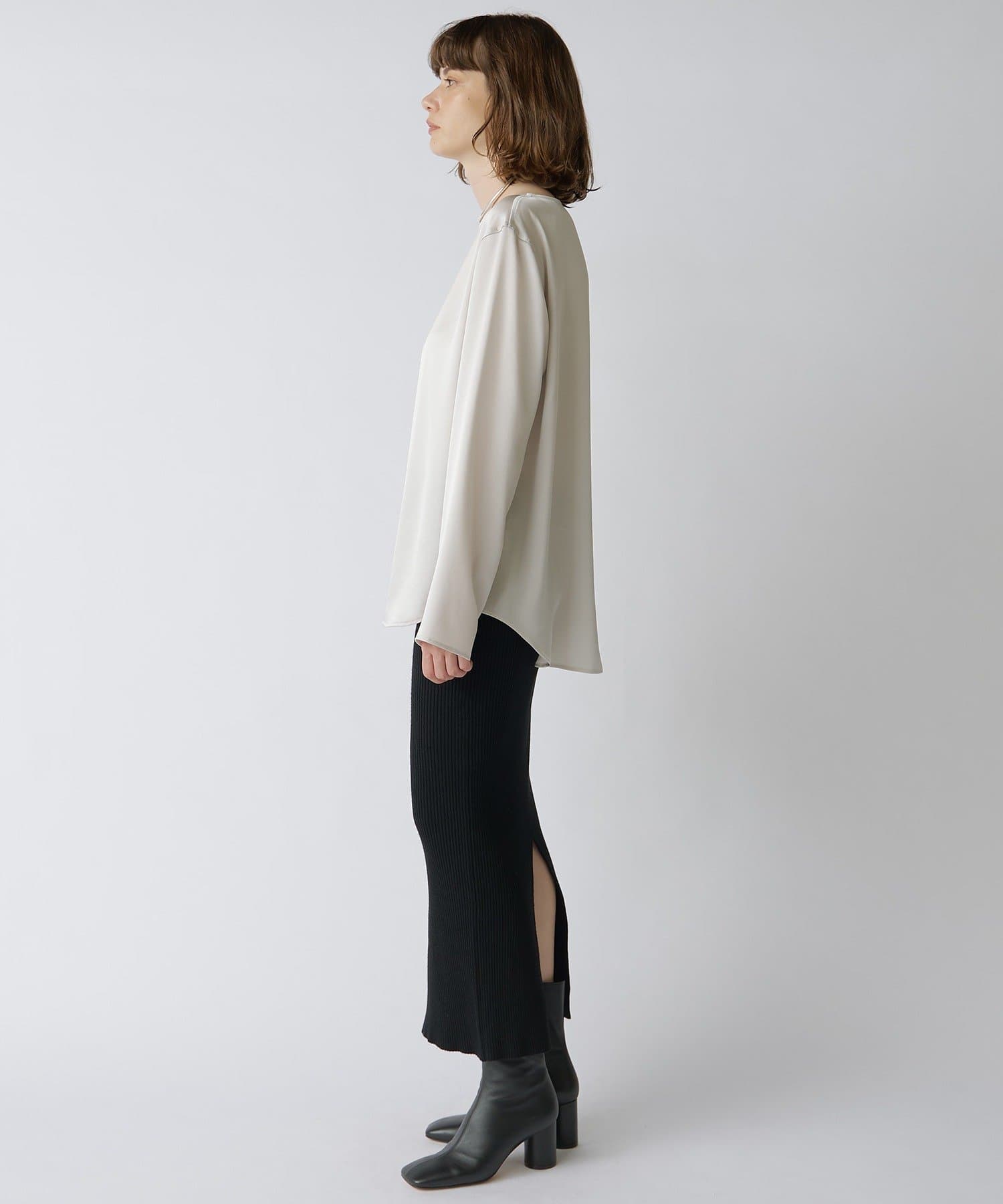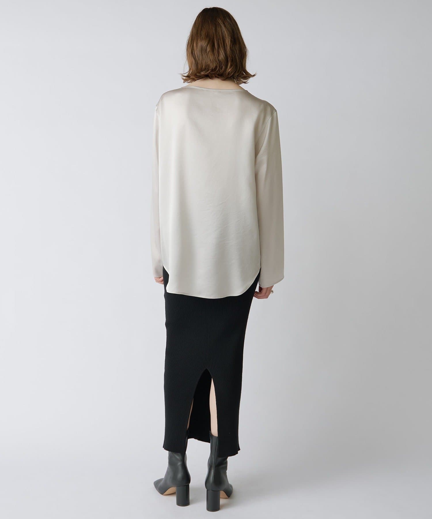 ■シルクライクなサテン生地が上品なプルオーバーブラウス。