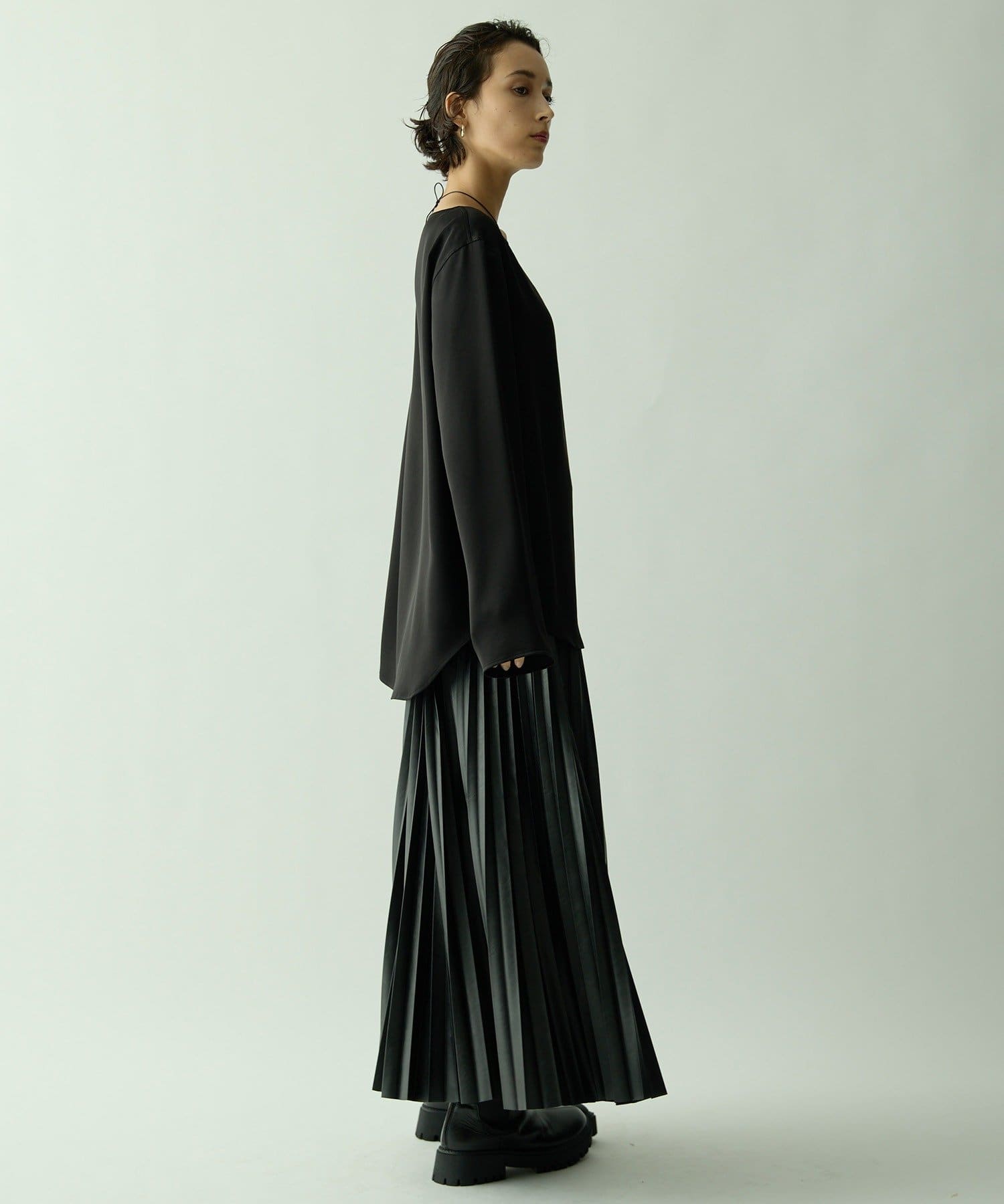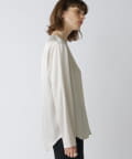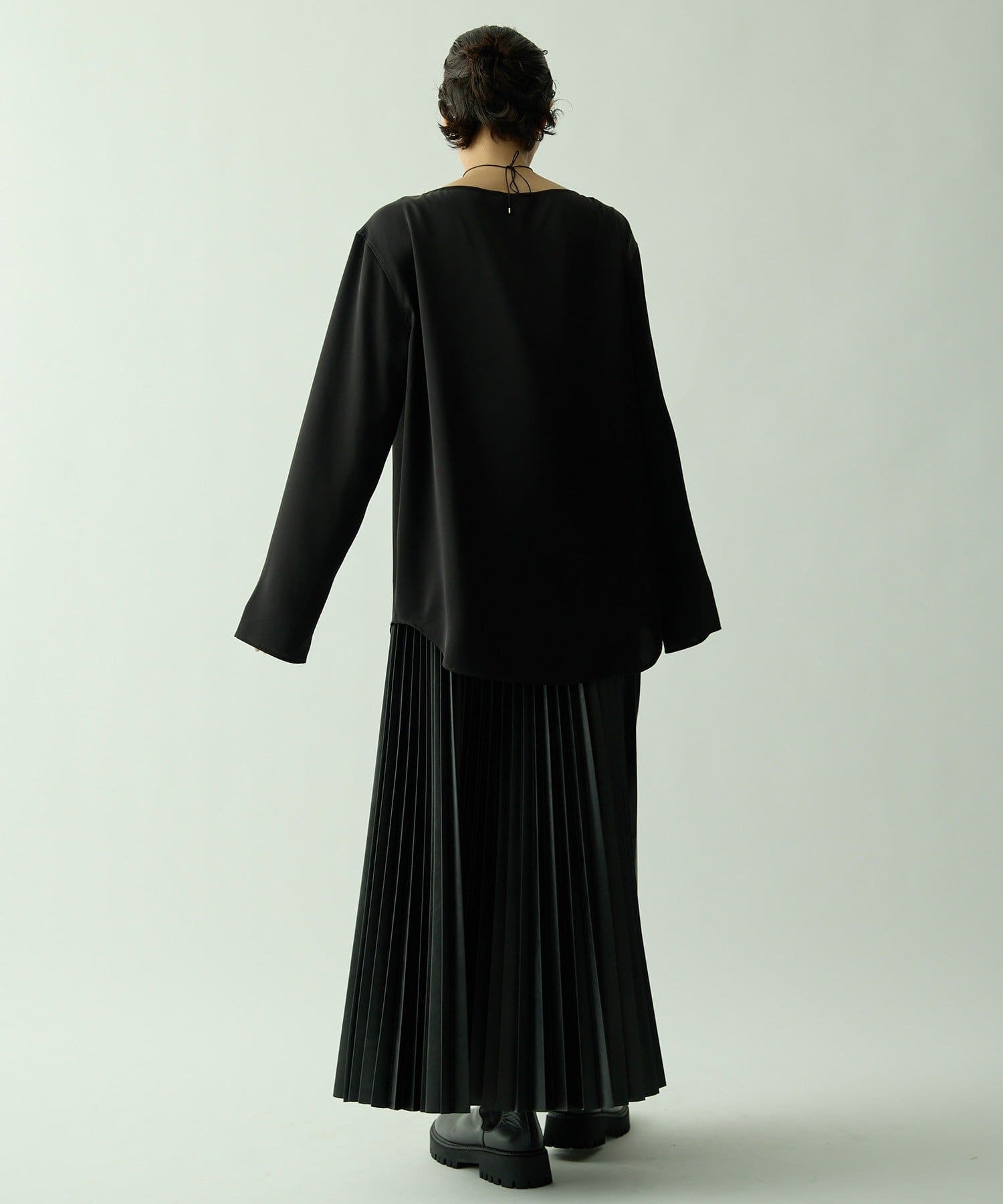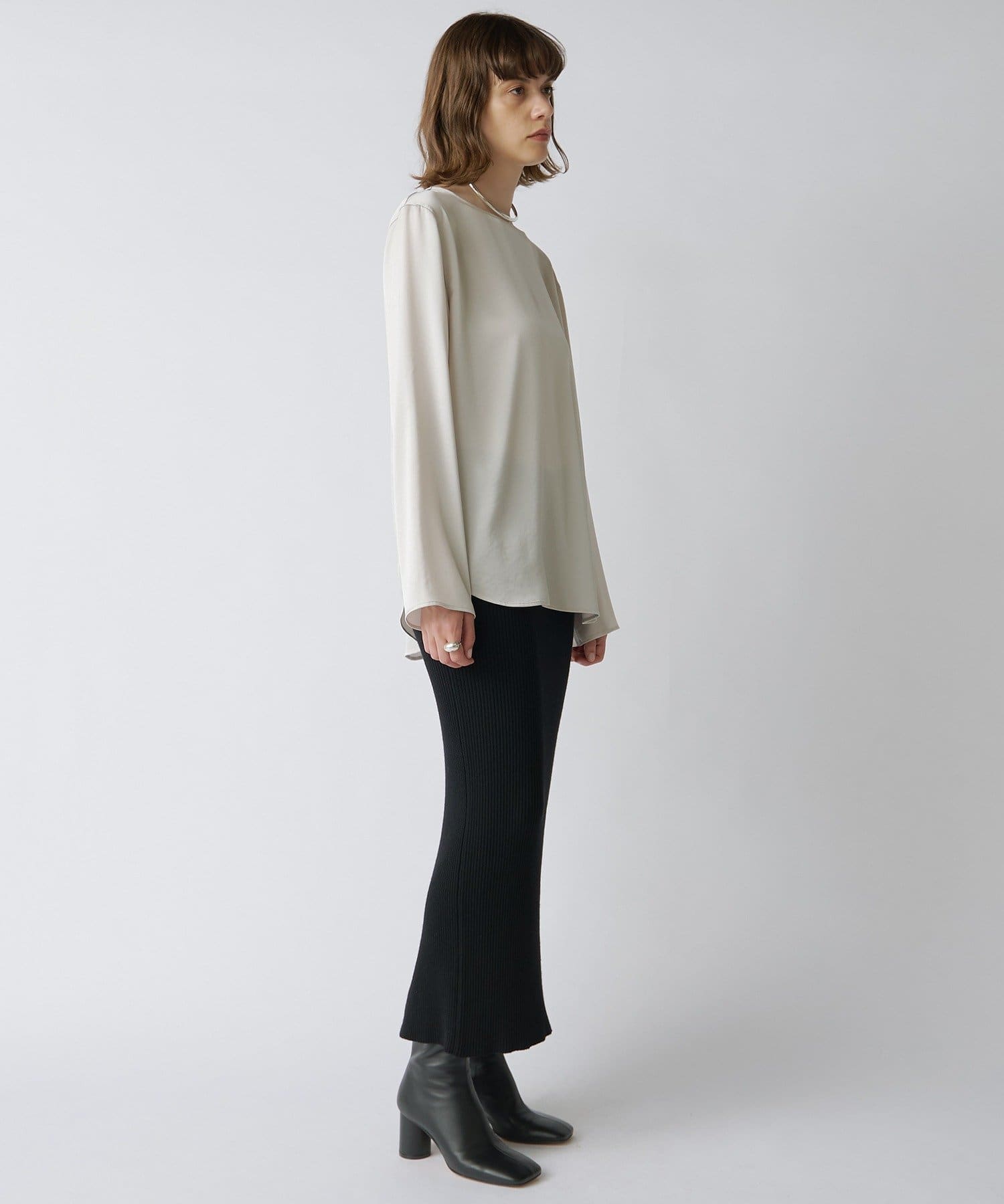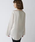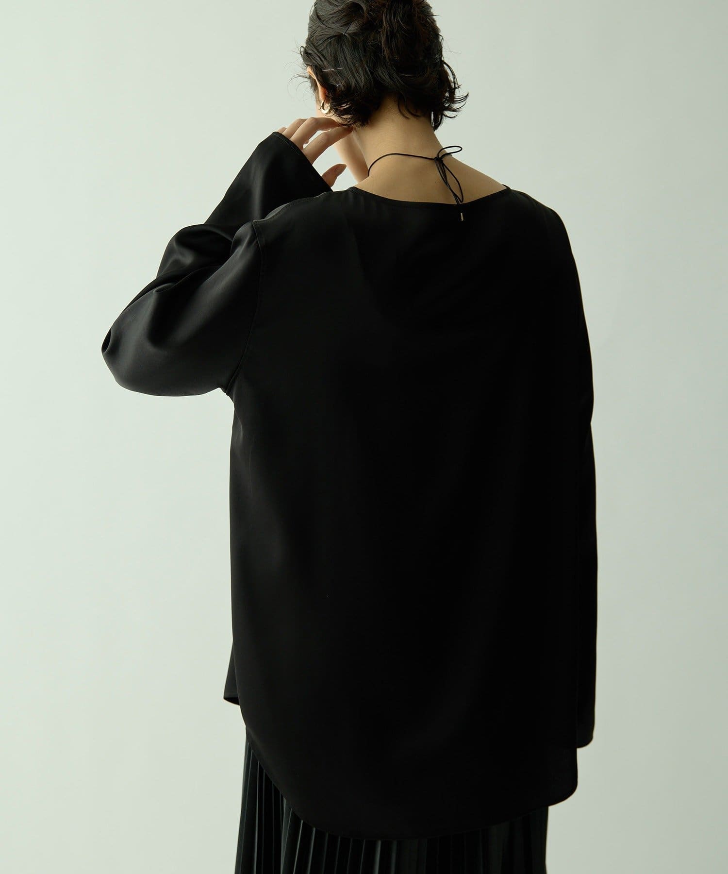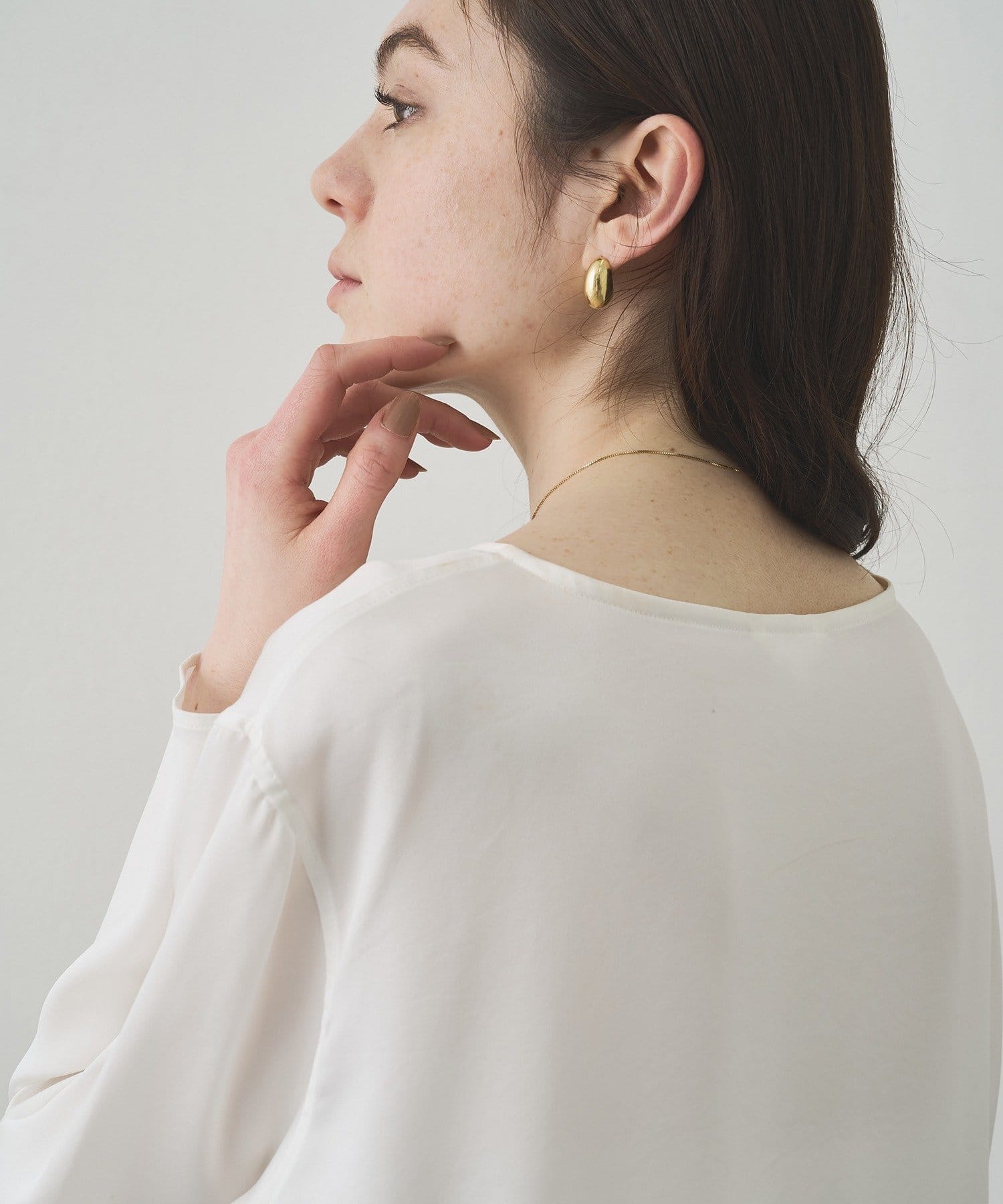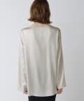 シルクに見える素材ですが扱いはとても楽ちん。シワもそれほど気になりません。首元は横に開いているのでお手持ちのニットやスウェットで重ねた時も綺麗に重なってくれます。