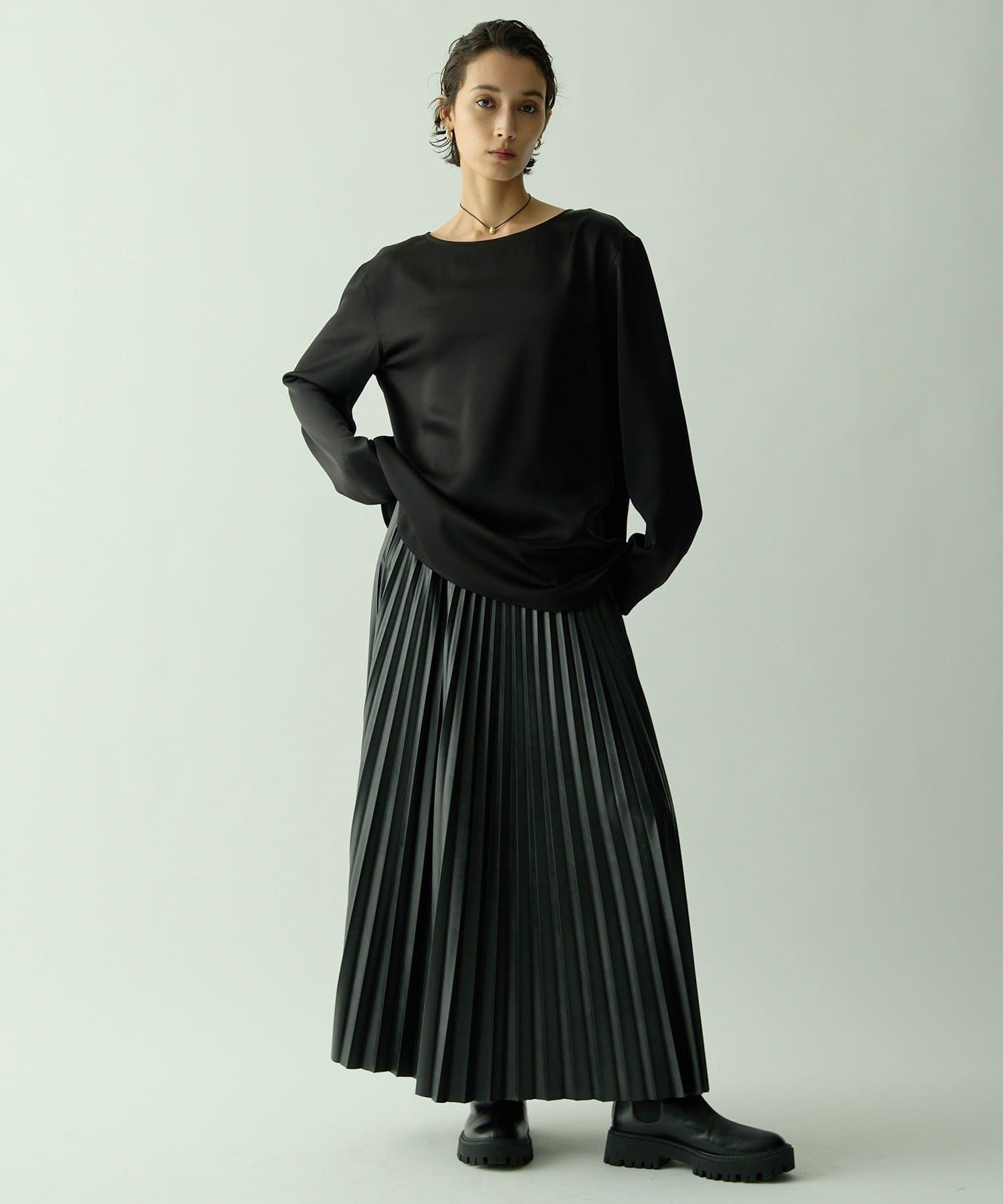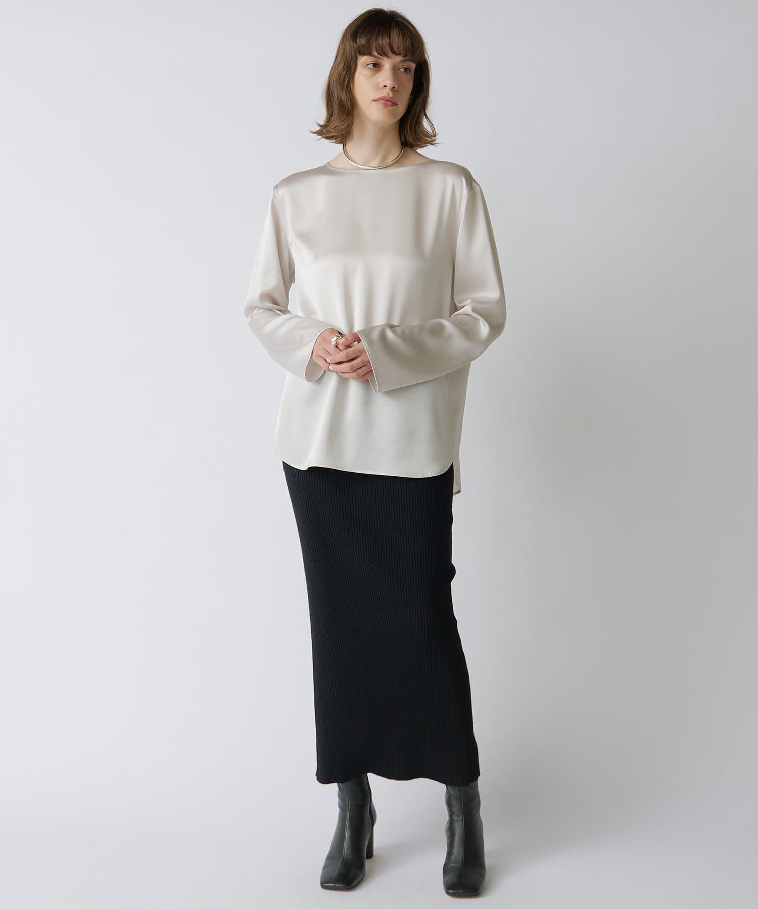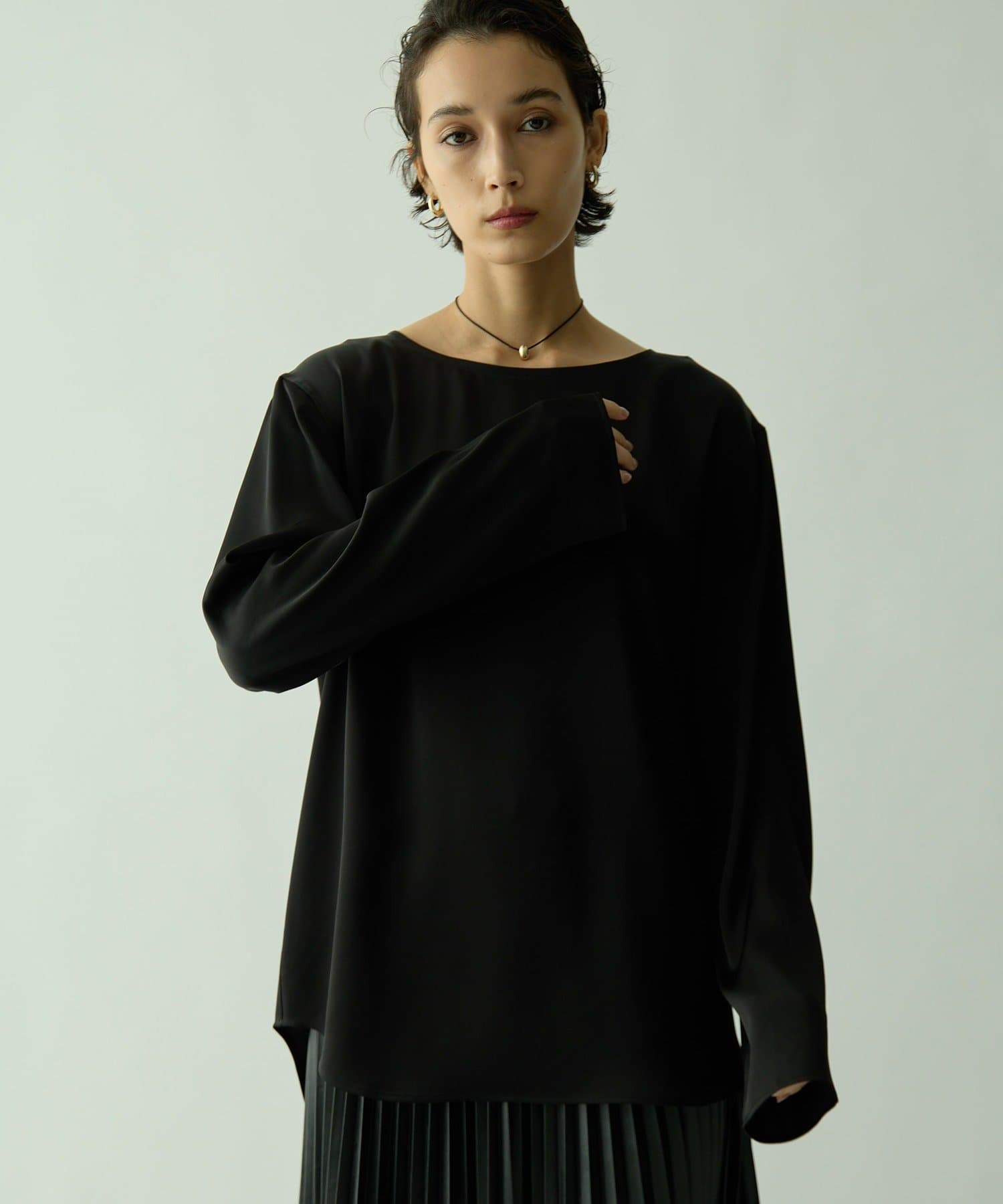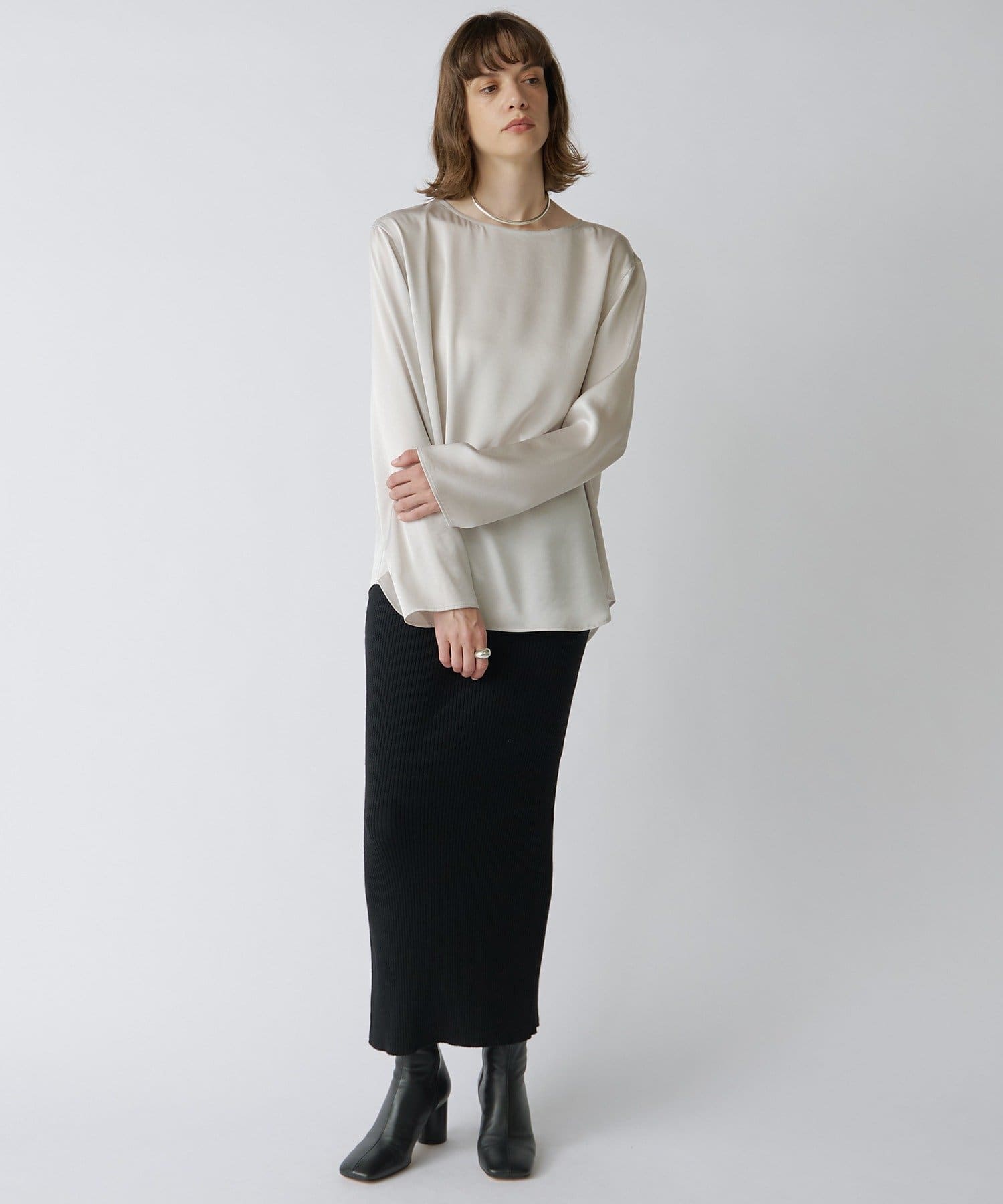 人気のサテンボートブラウス!単体でも、インナーでも、重ね着でも万能な1枚です◎ボートネックで適度に抜け感があるので、ジャケットを羽織っても首が詰まりすぎないですし、重ね着しても、変に襟が出てくることがなく綺麗です。