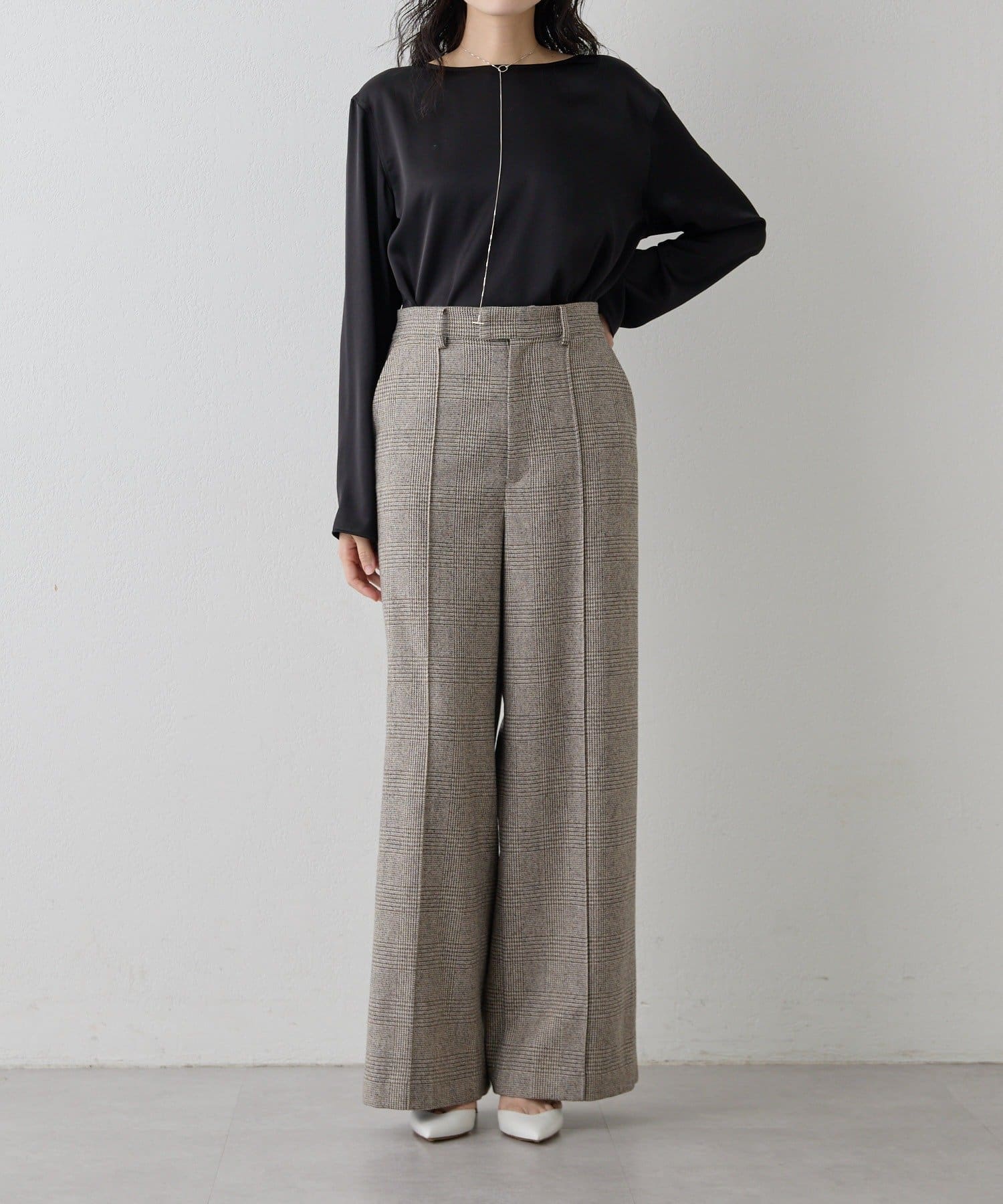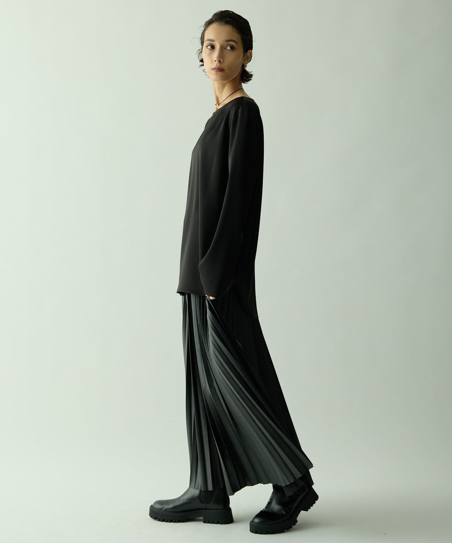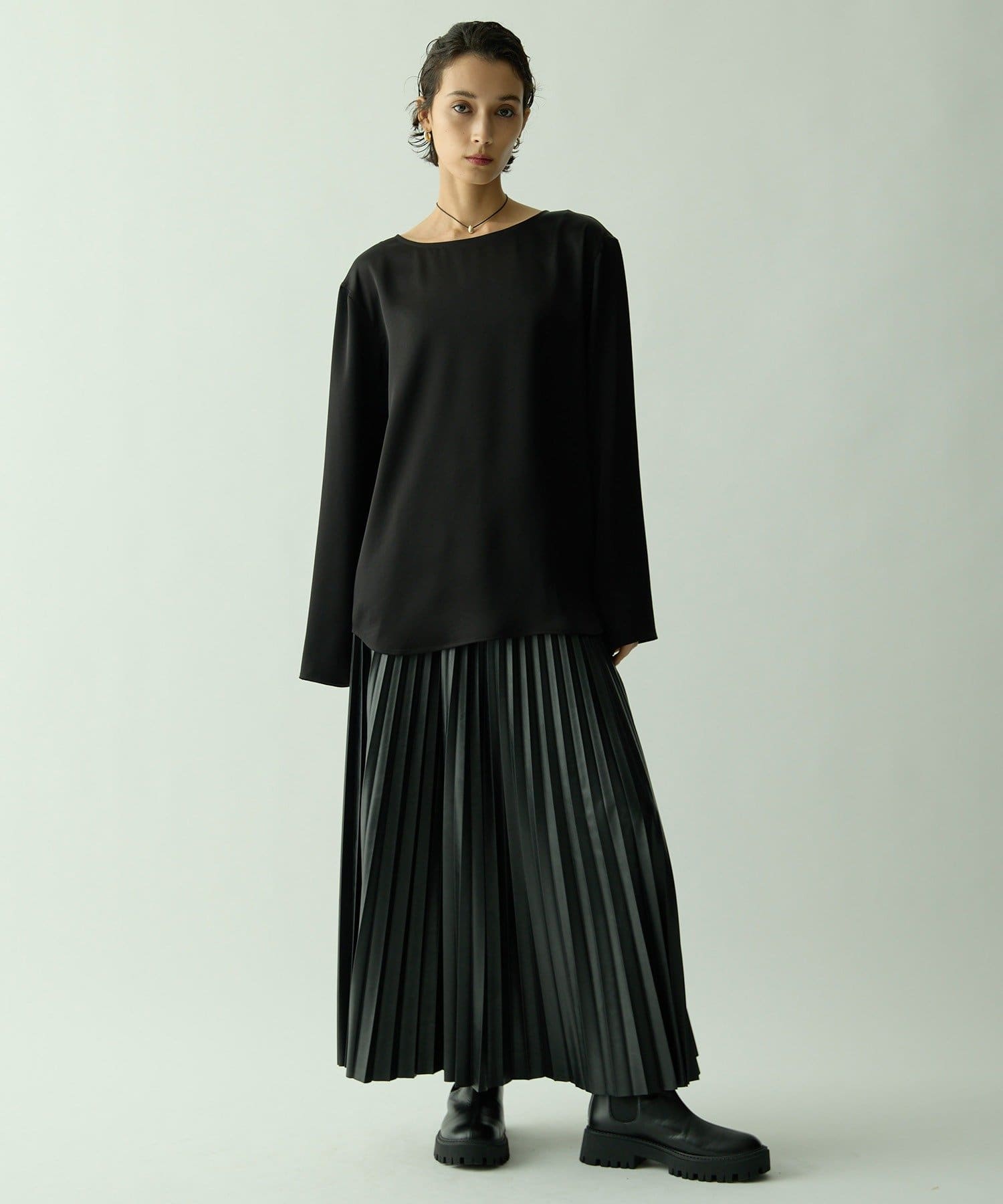 ■首元はデコルテのきれいに見える緩やかなボートネックで女性らしさをプラス。