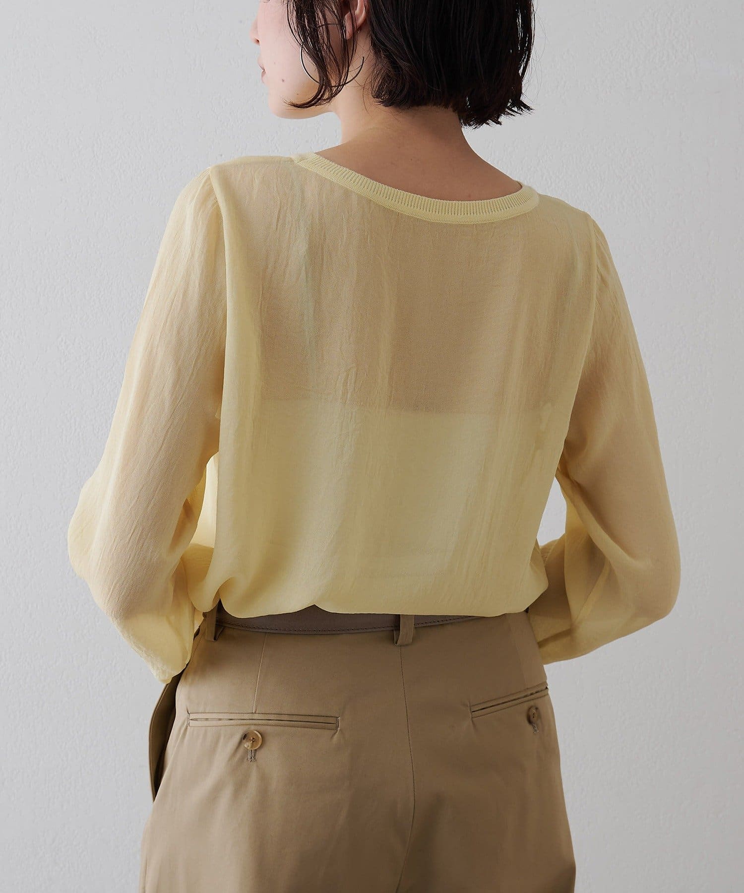 ■薄手のジョーゼット素材を使用したシアーブラウス。