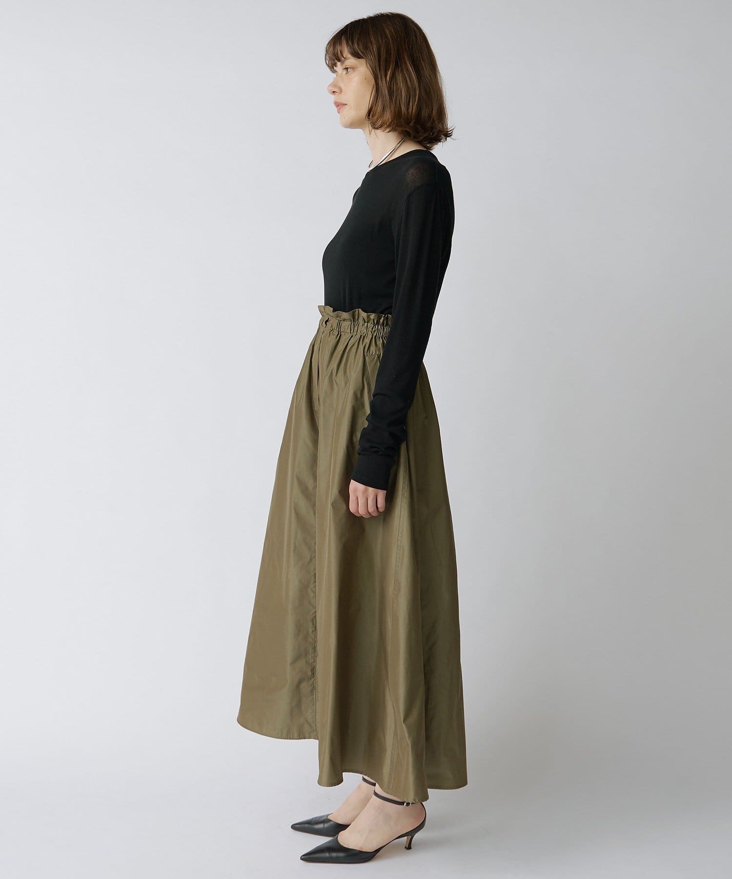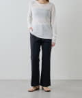 ■ゆるみのある素材感を生かした程よいゆとりのあるサイズ感で、身体のラインを拾いすぎないのもポイント。