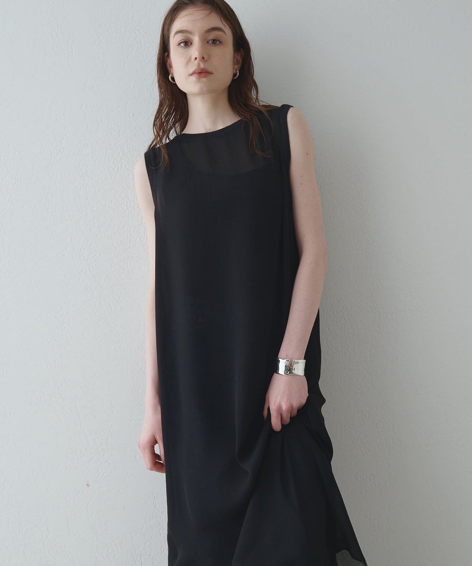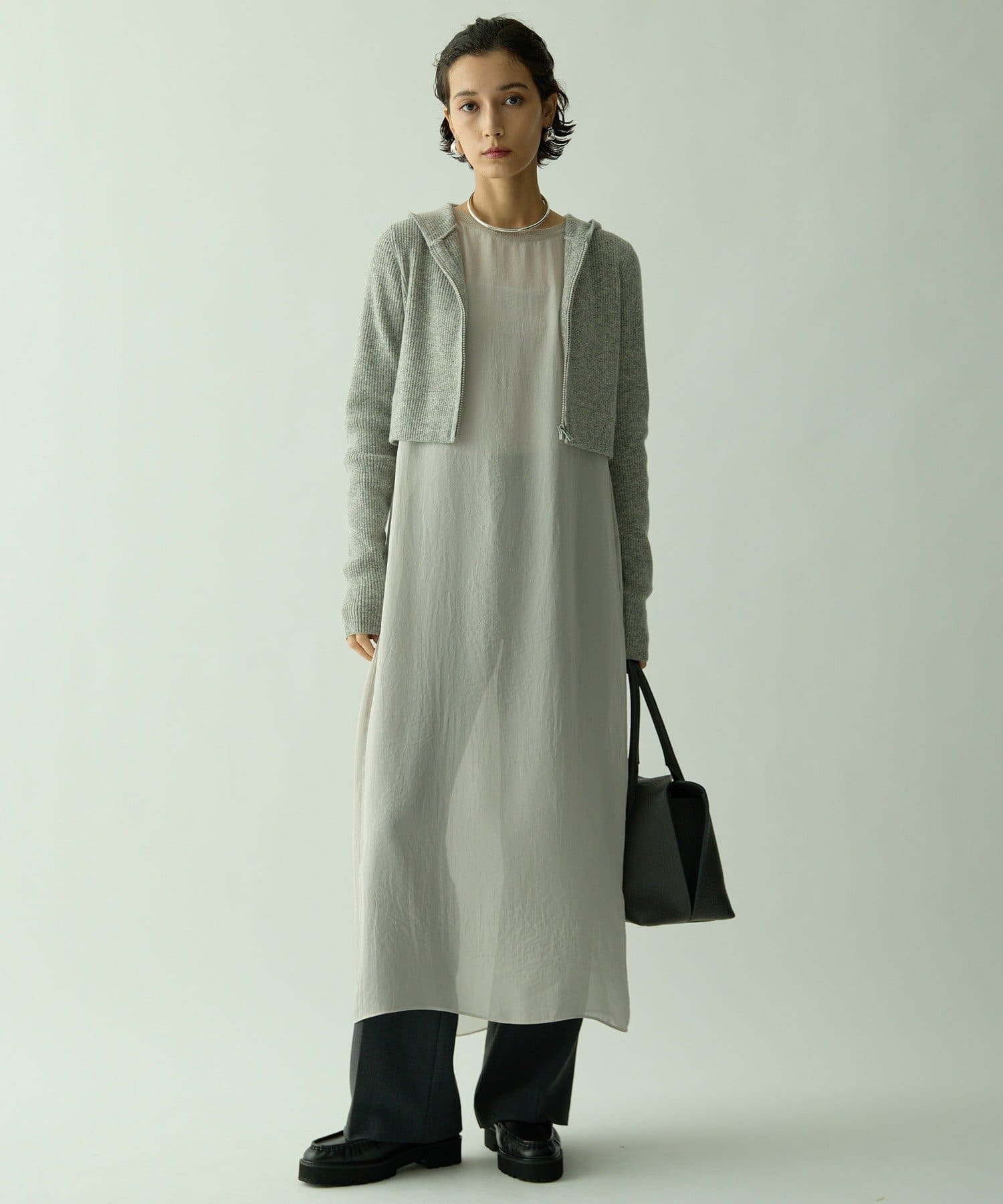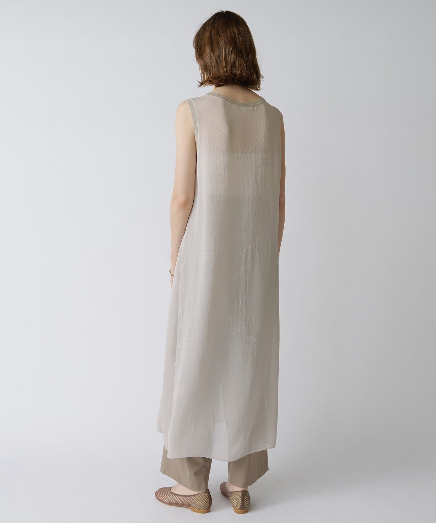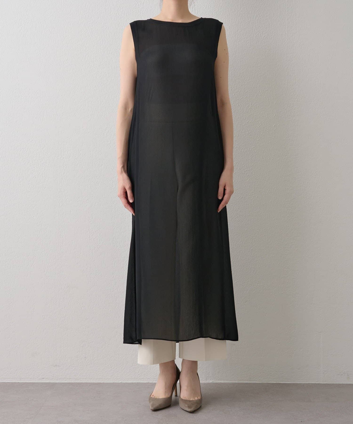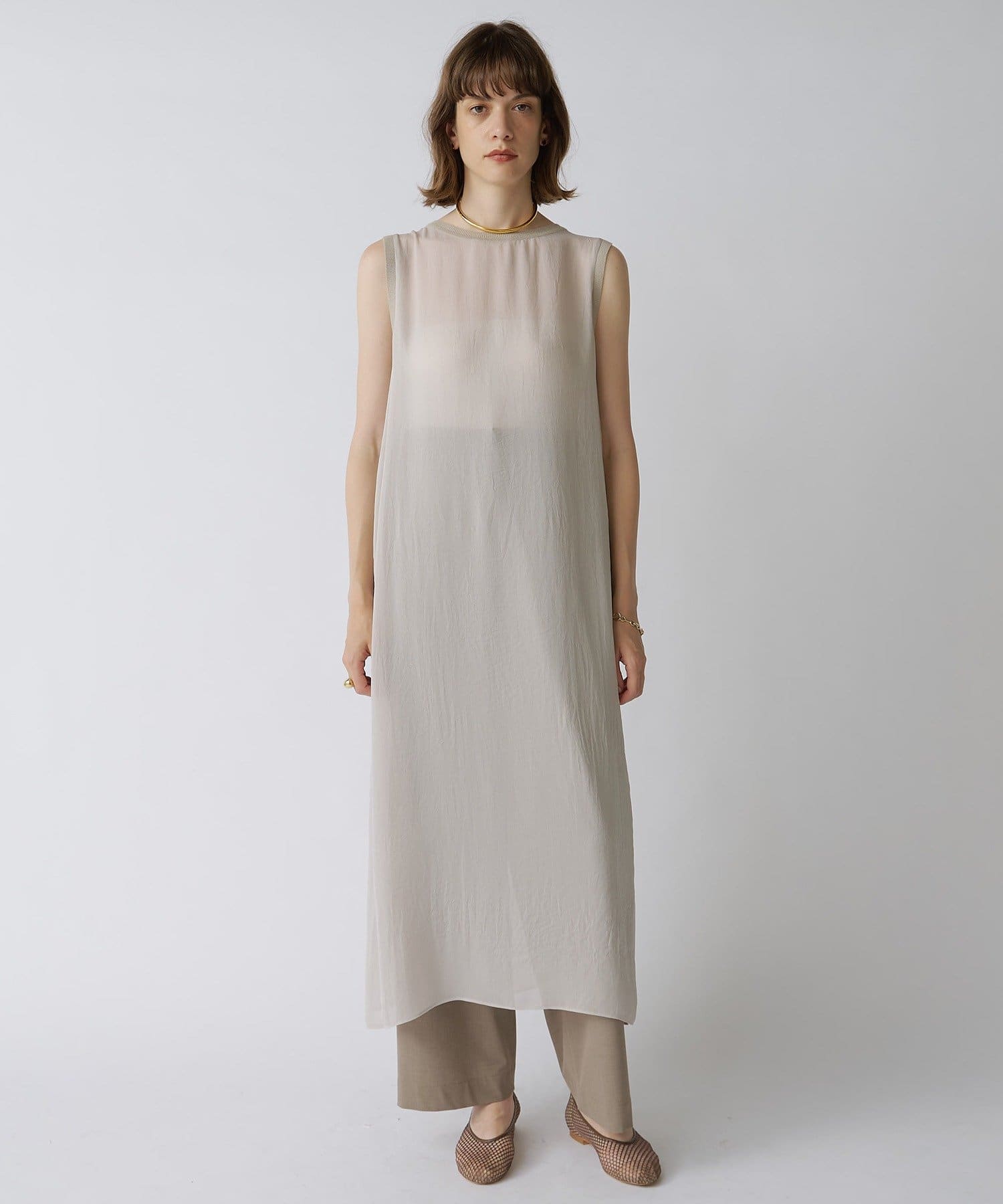 ■薄手のジョーゼット素材を使用したシアーワンピース。