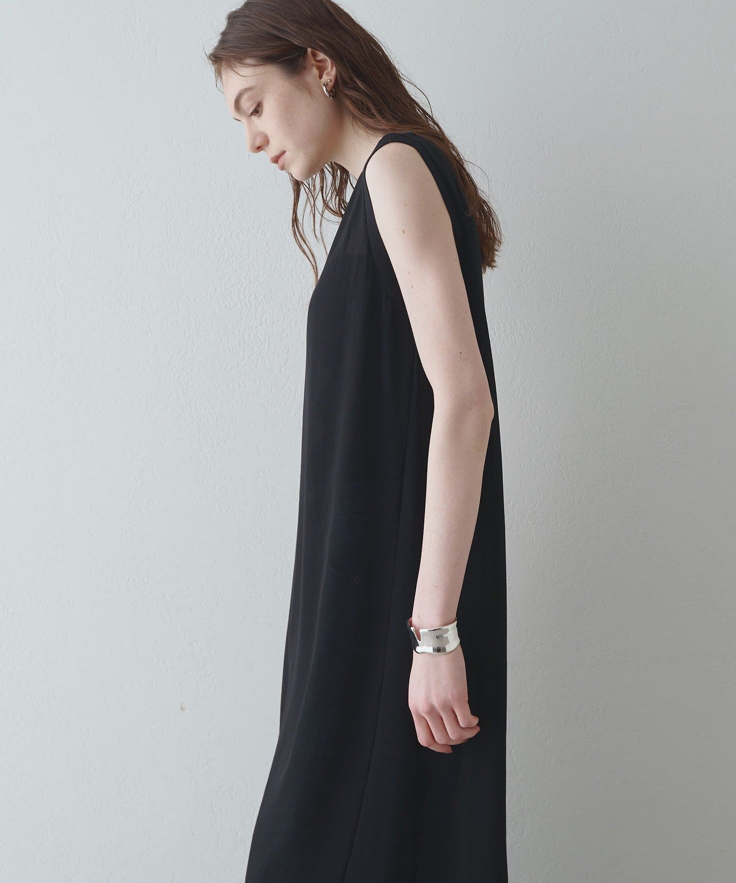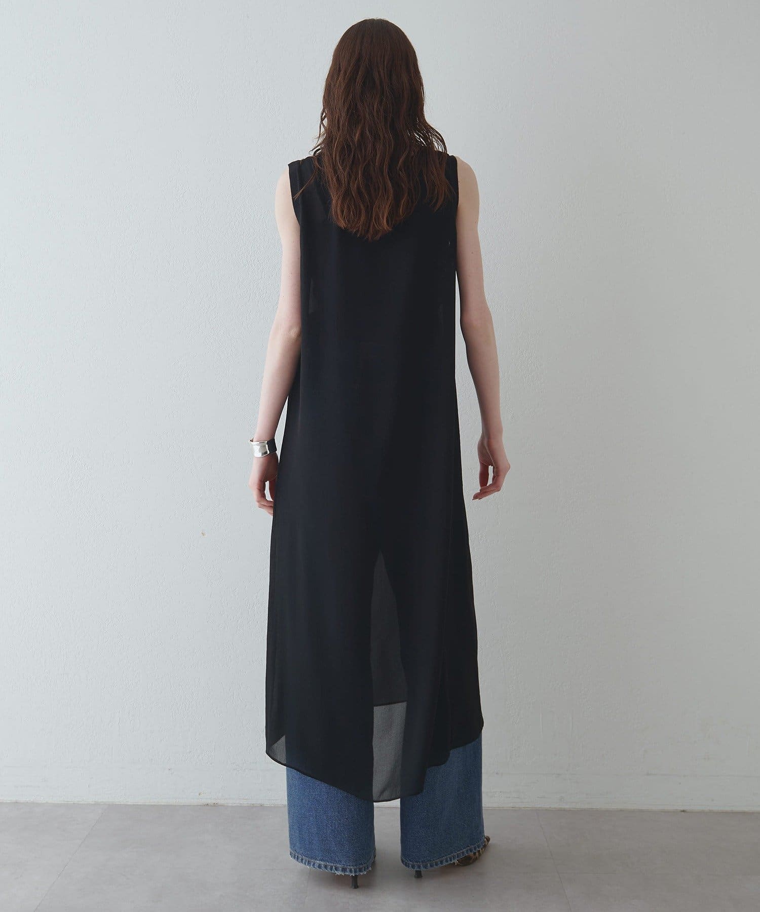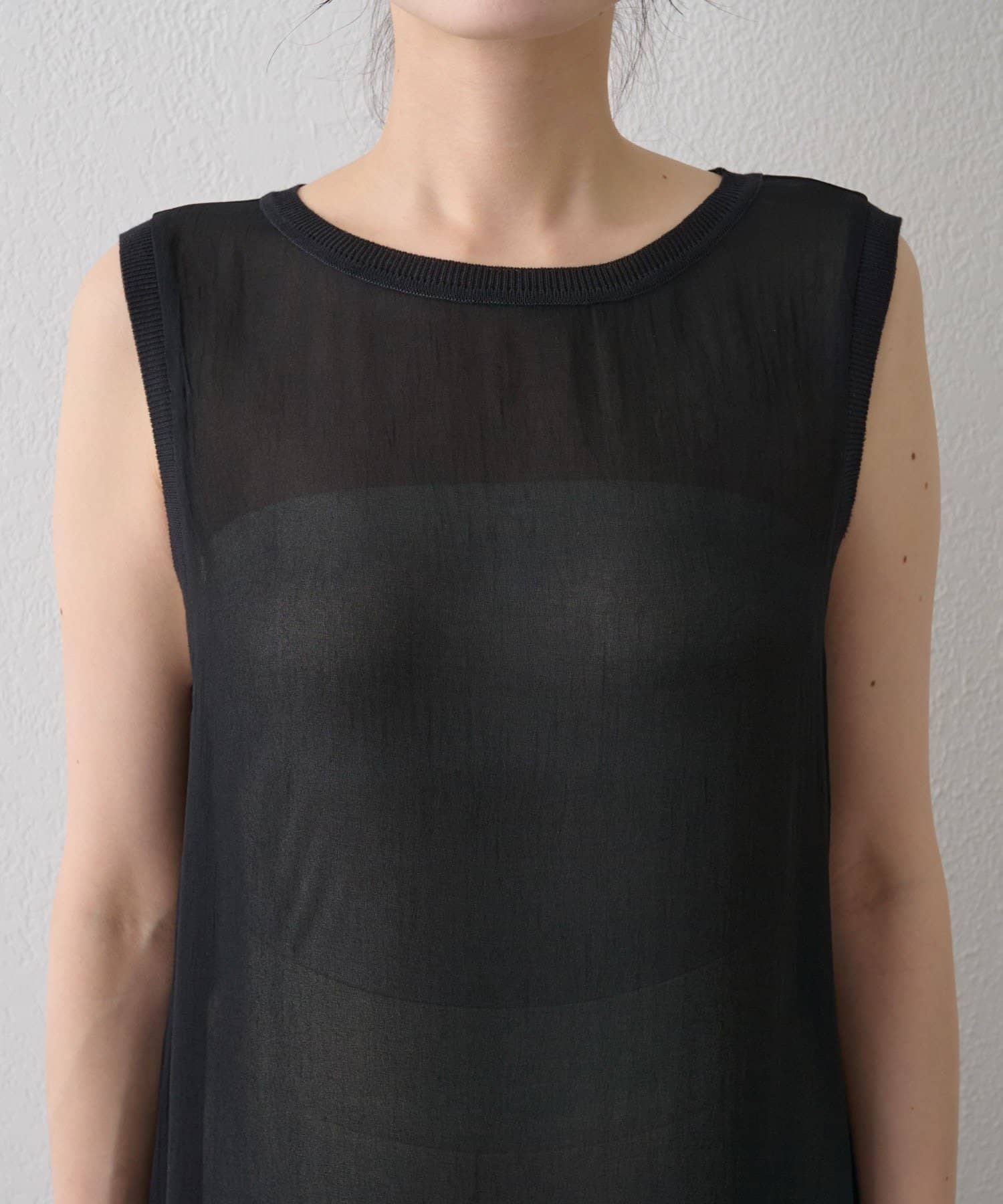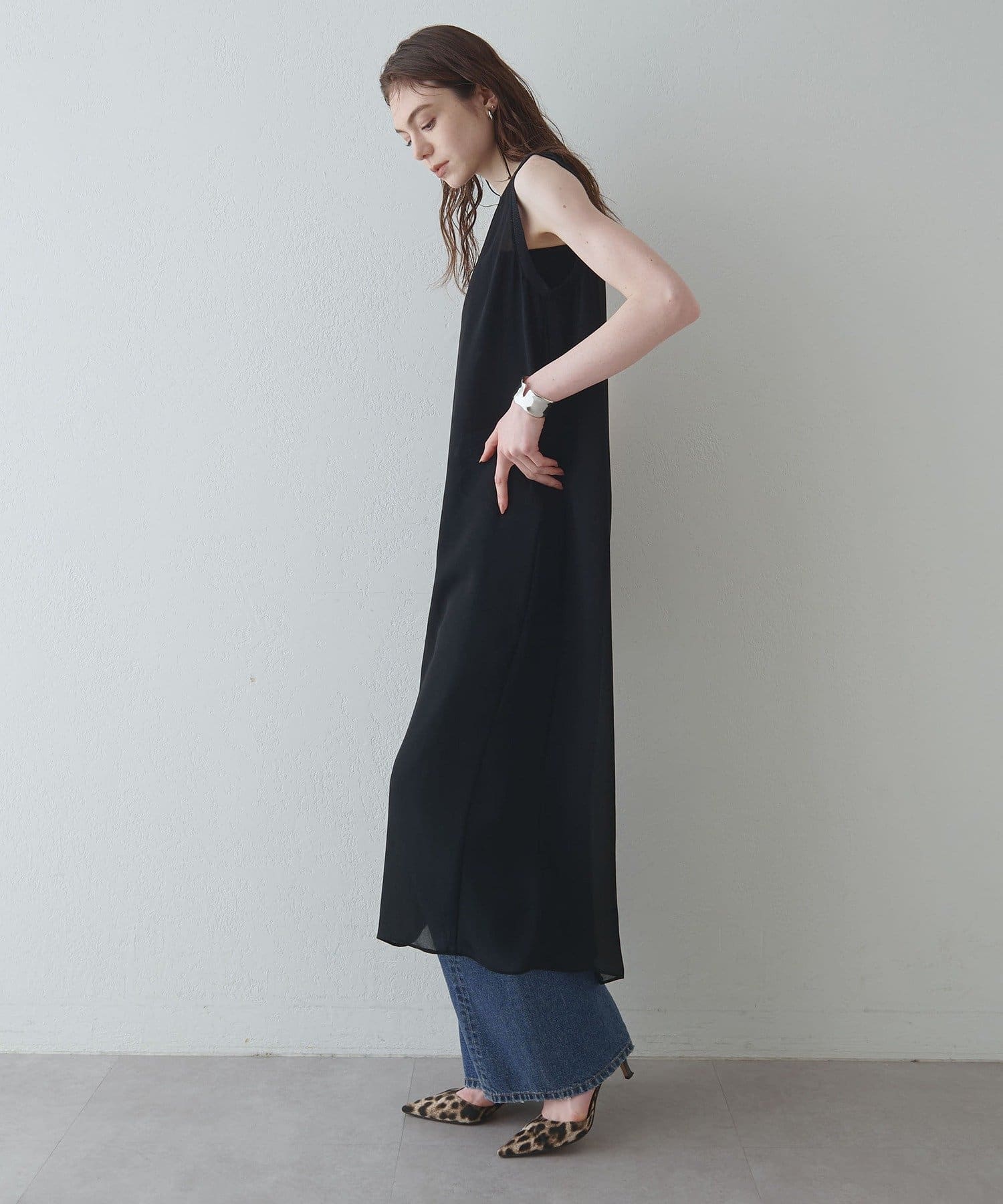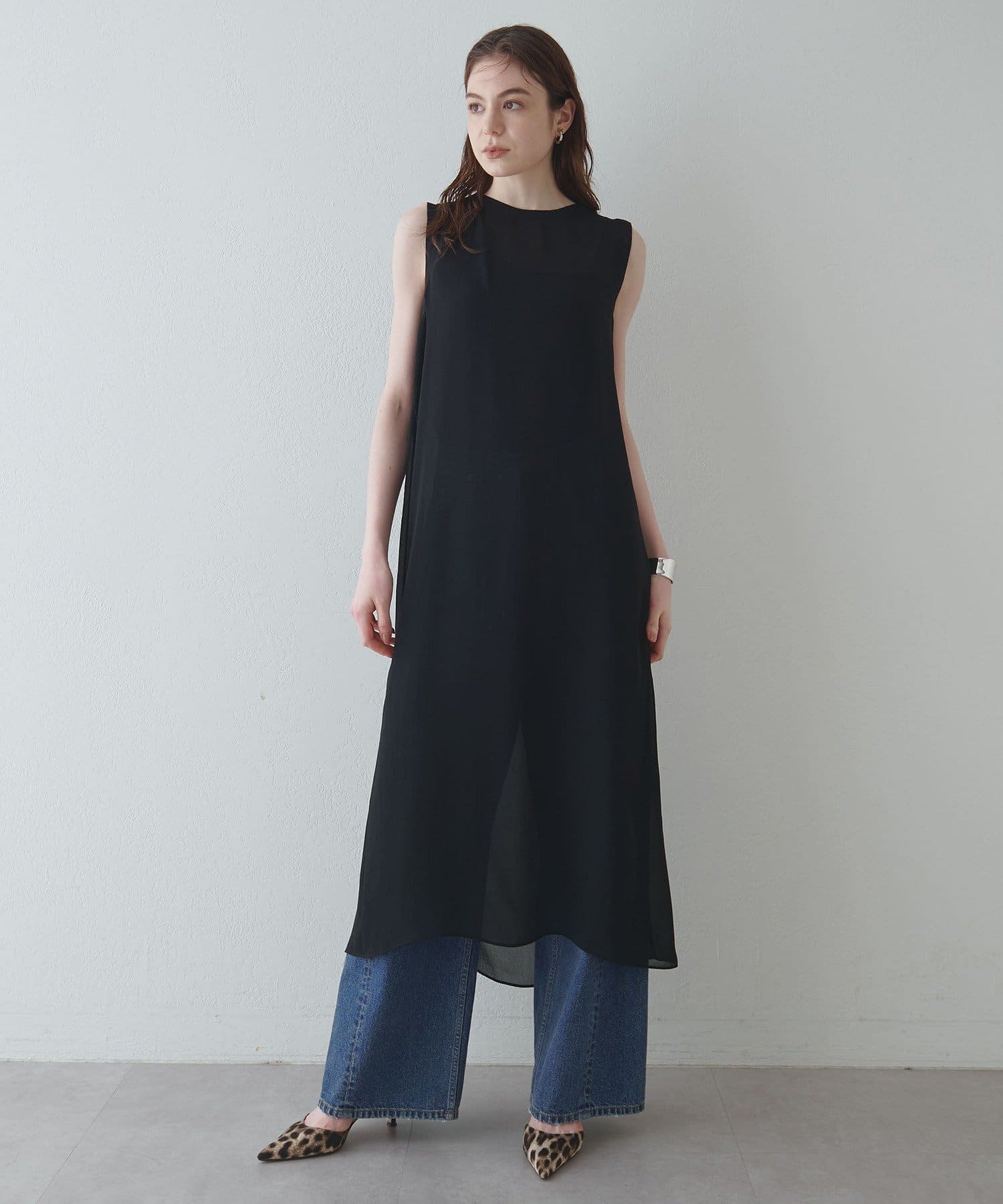 ■薄手のジョーゼット素材を使用したシアーワンピース。