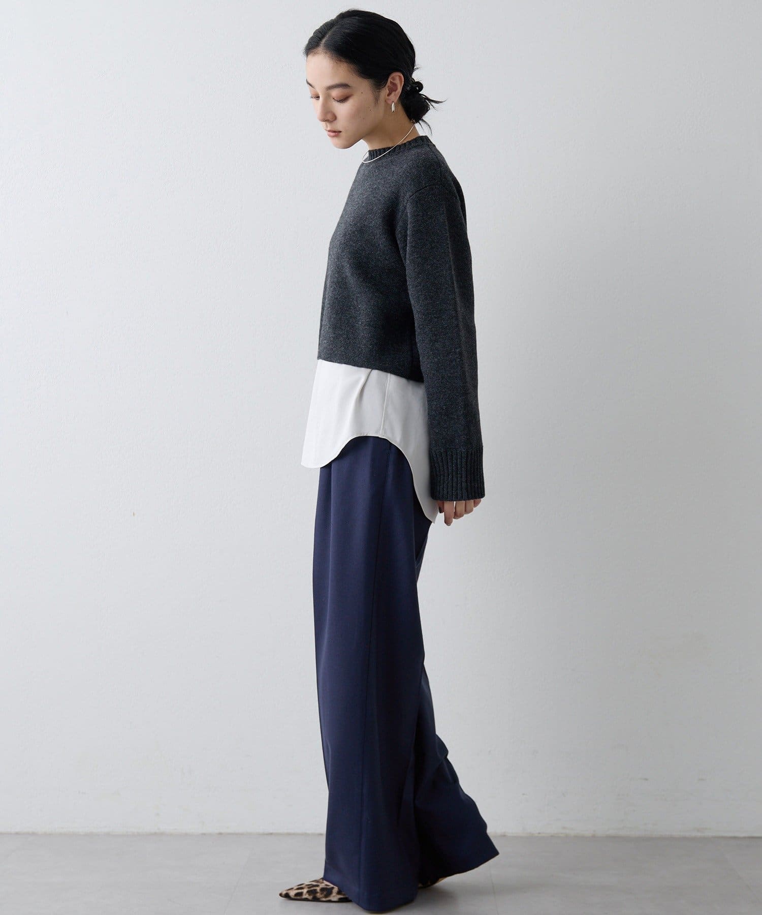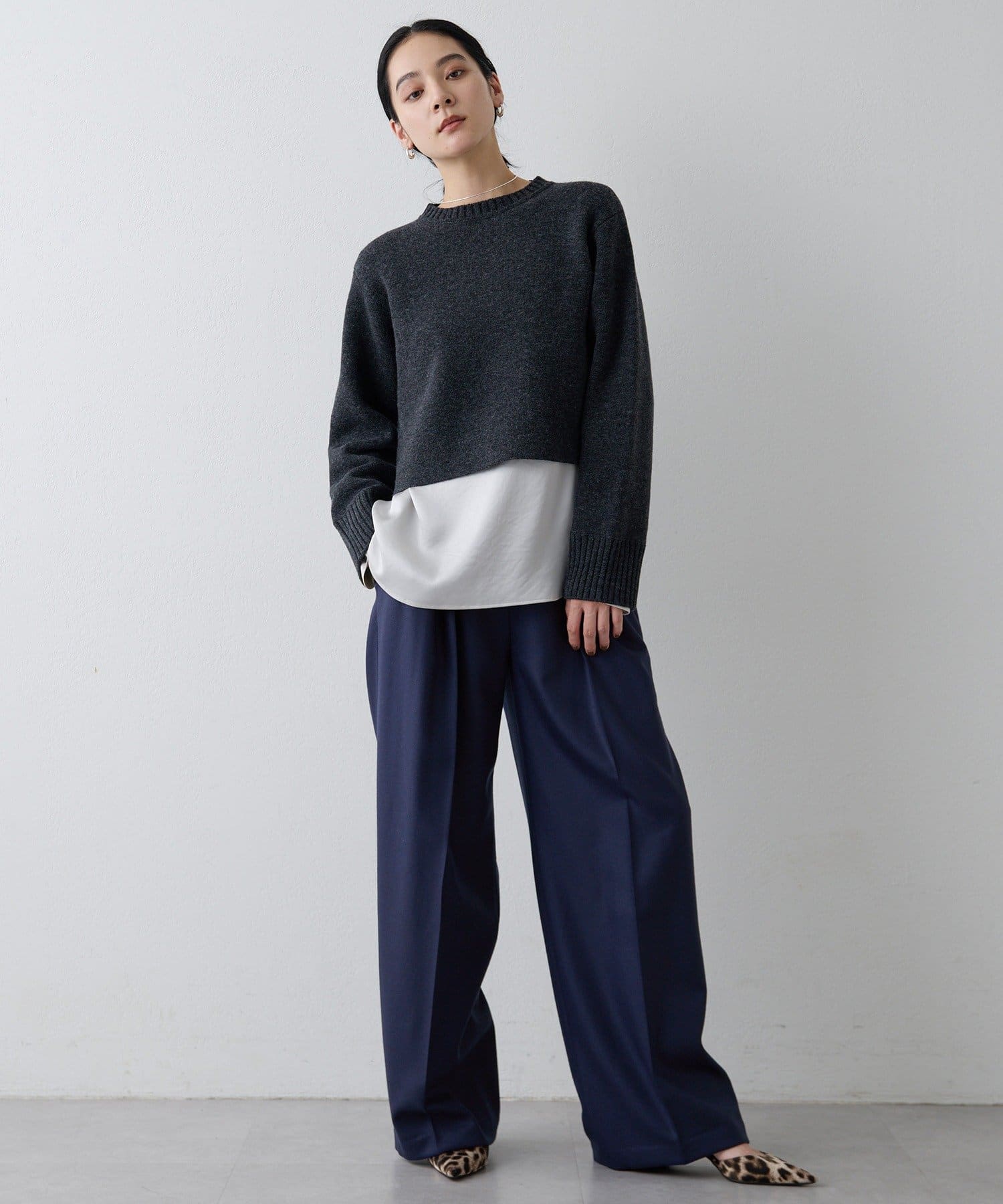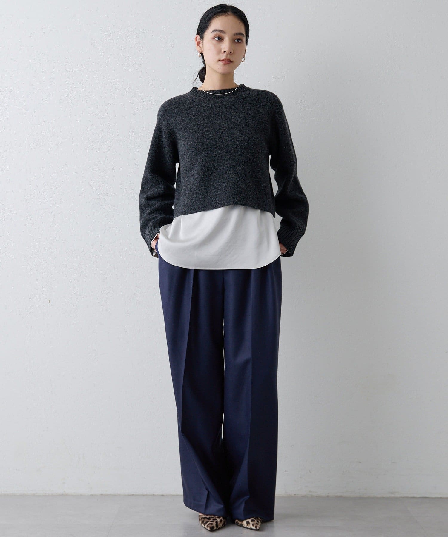 ■ワイドパンツとも好相性で、すっきりとスタイルアップして見えるのもポイント。