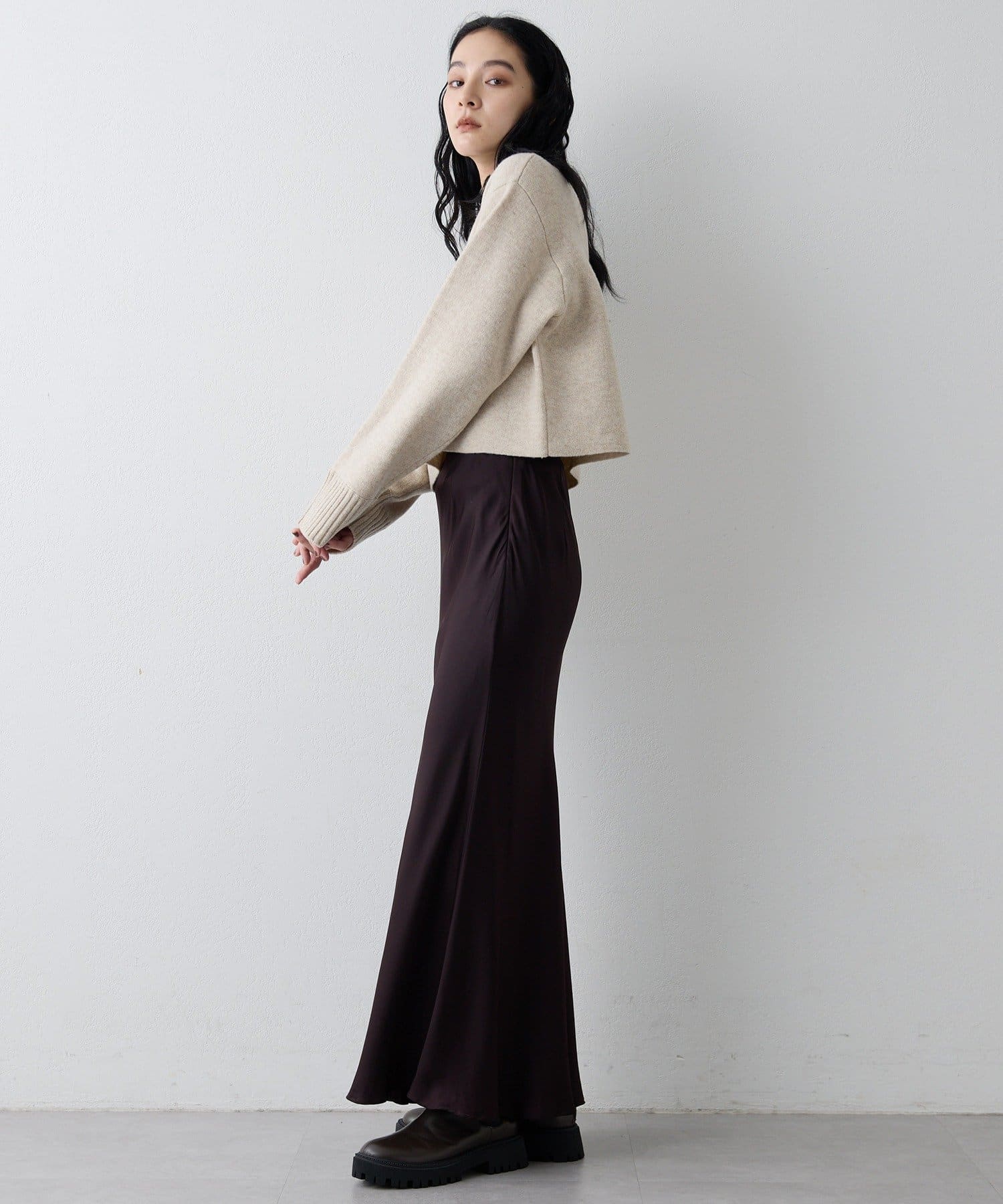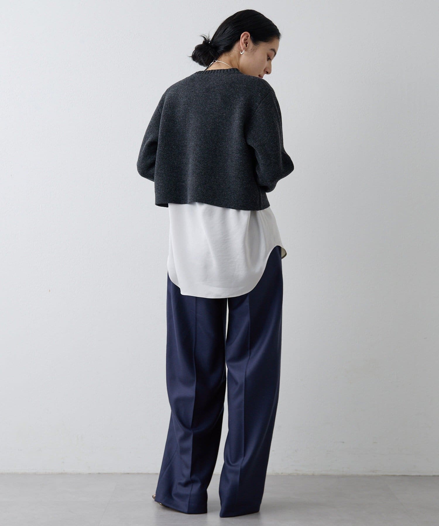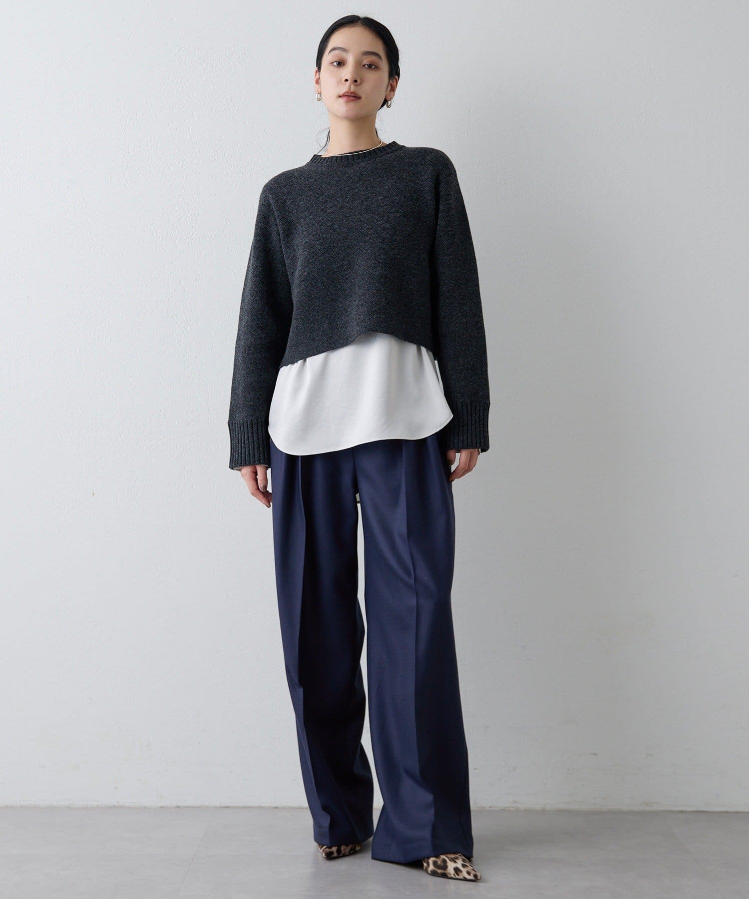 ■ワイドパンツとも好相性で、すっきりとスタイルアップして見えるのもポイント。