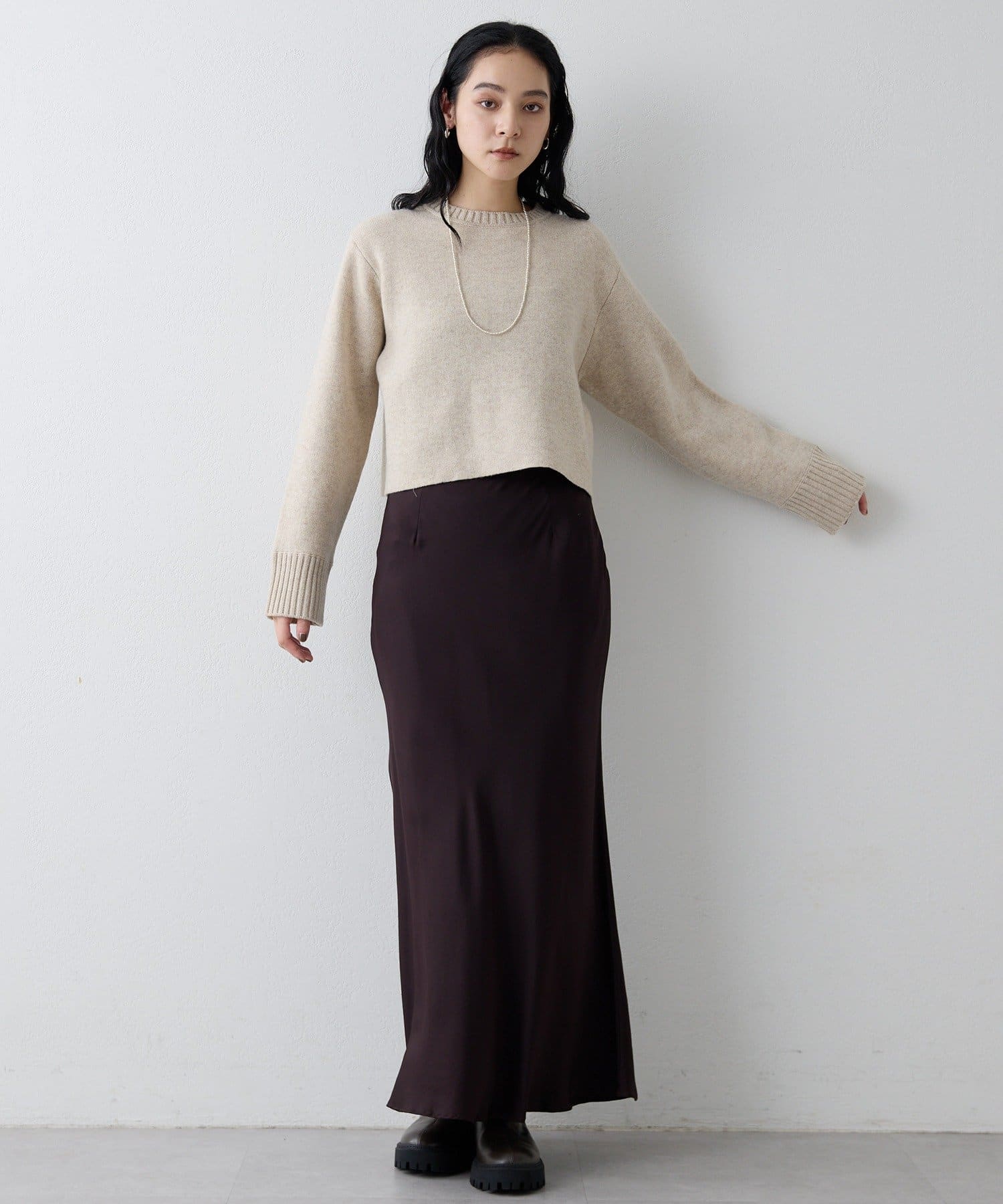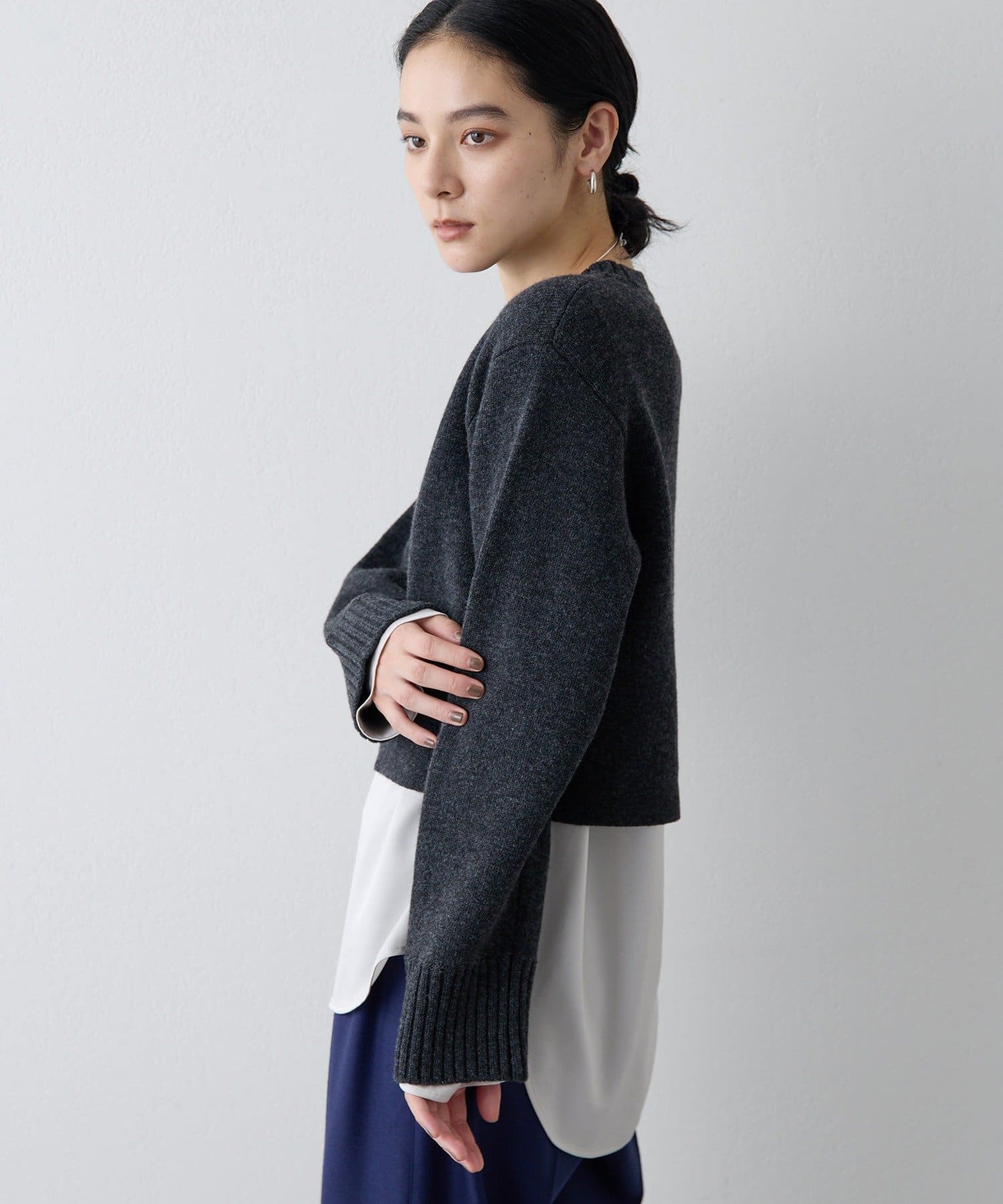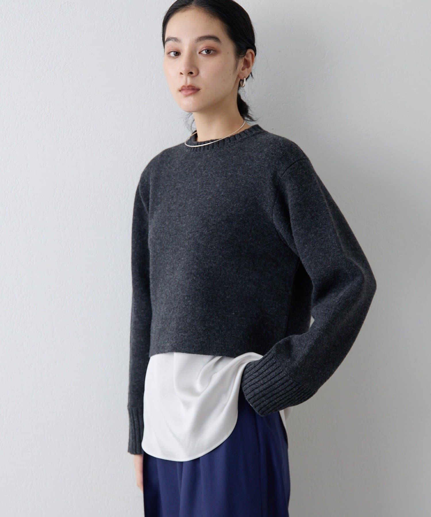■ウールカシミヤ混のクロップドニットプルオーバー。