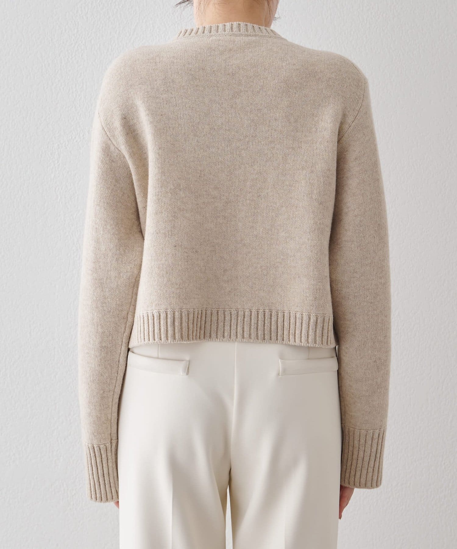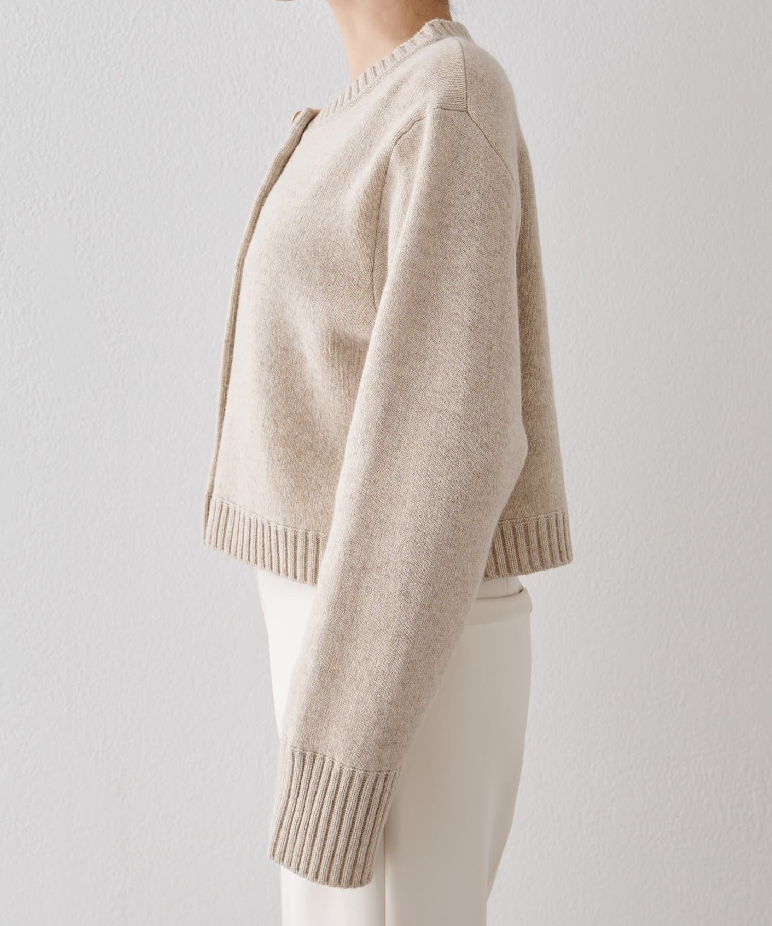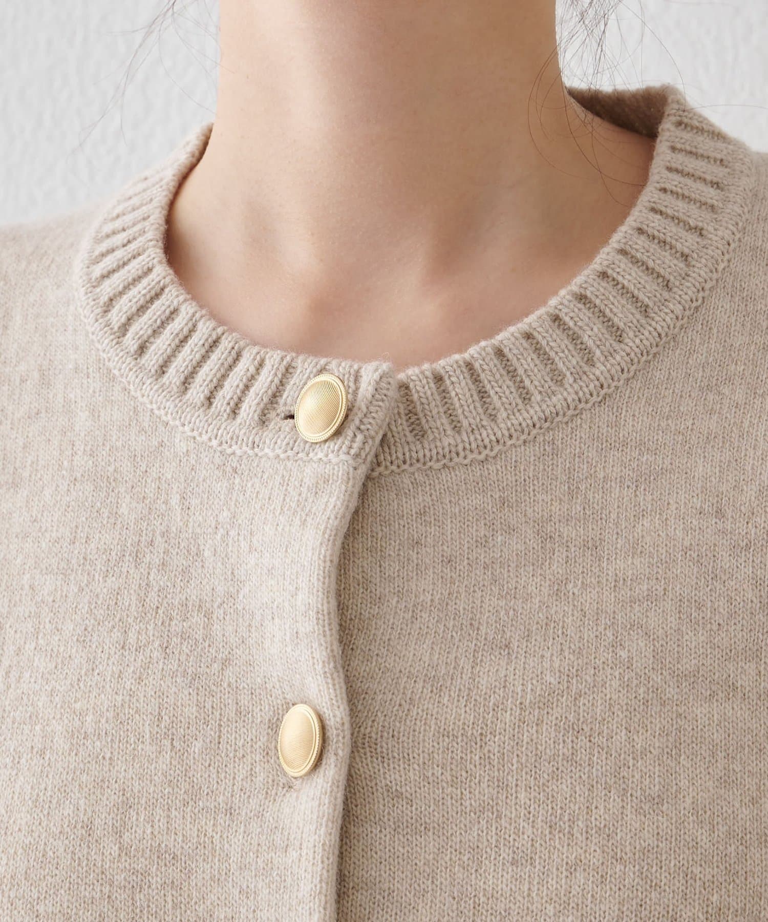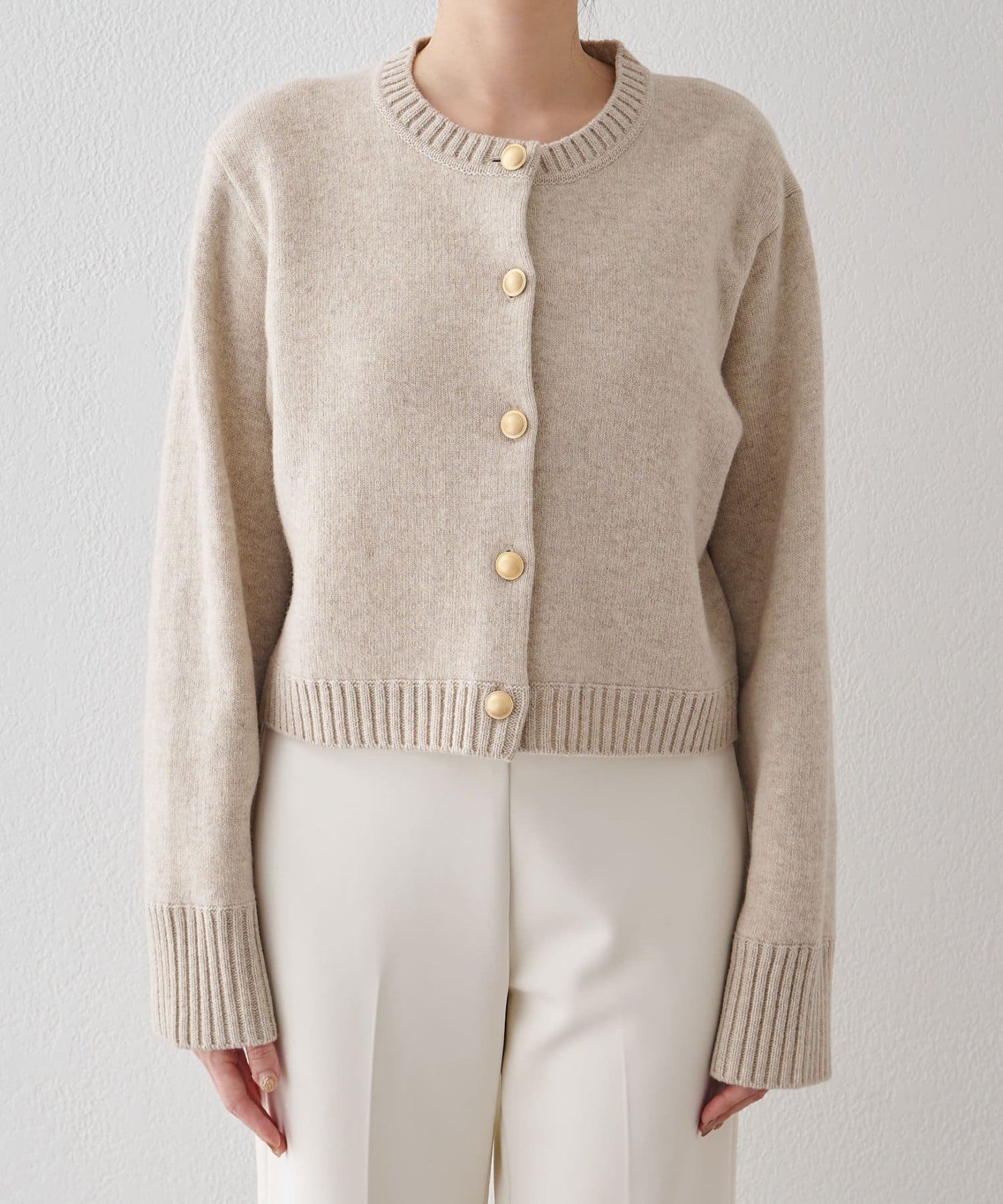 ■ウールカシミヤ混のクルーネックニットカーディガン。