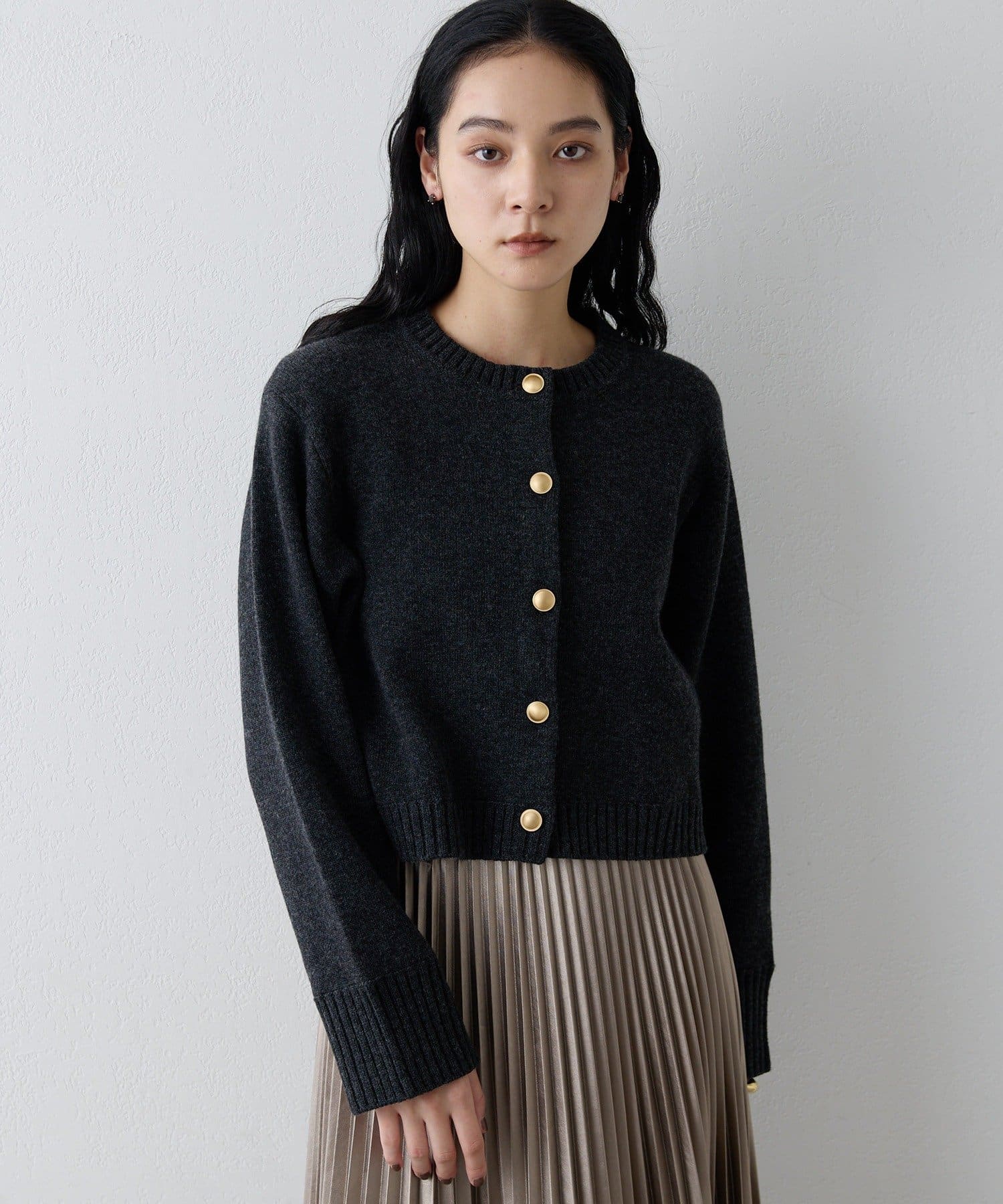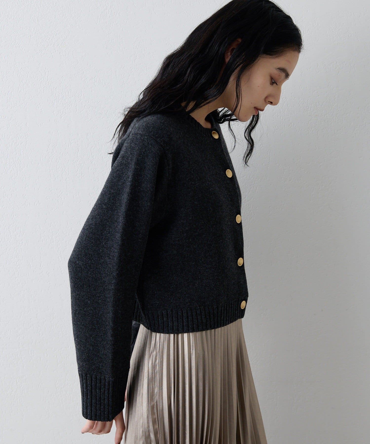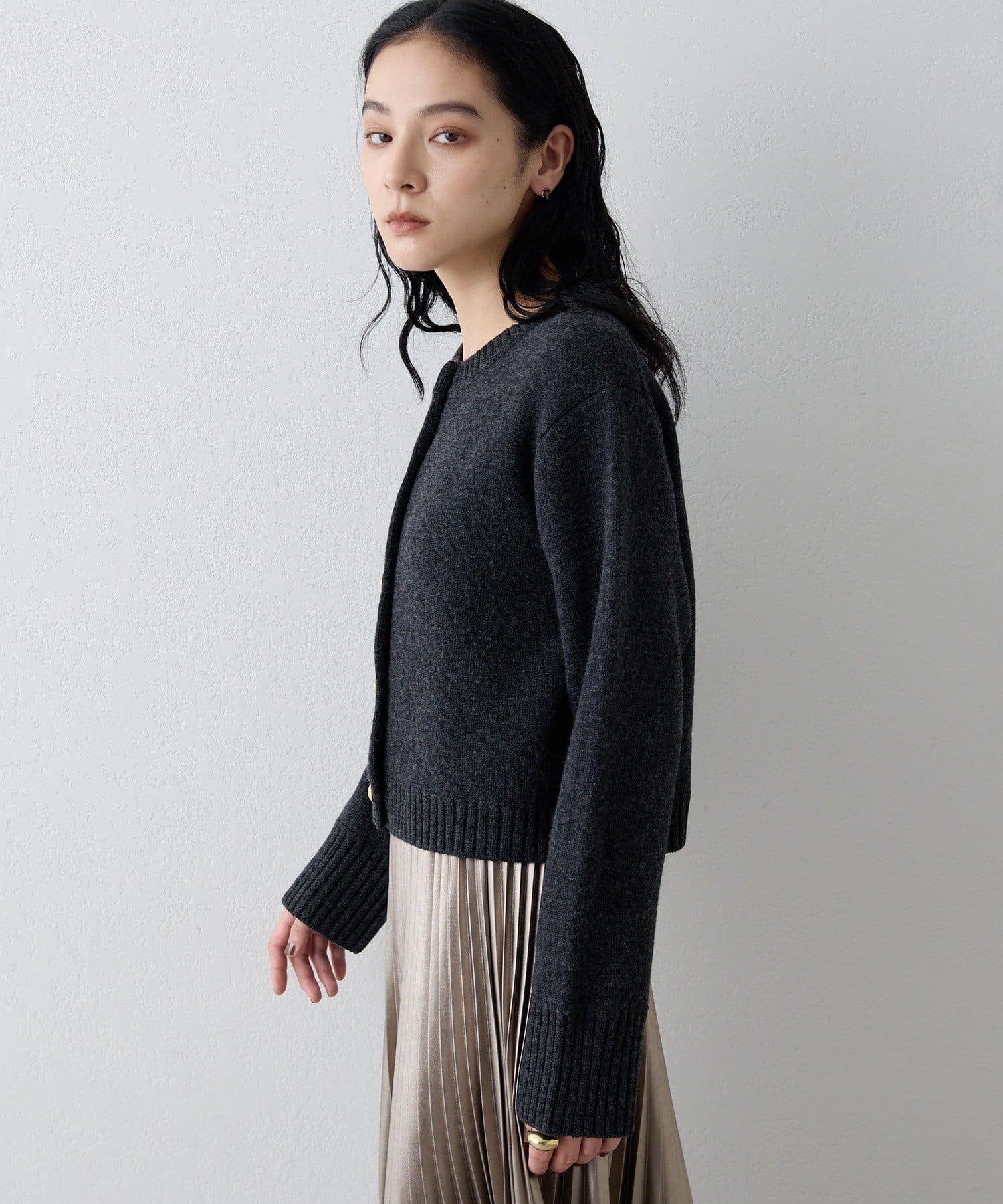 ■ウールカシミヤ混のクルーネックニットカーディガン。