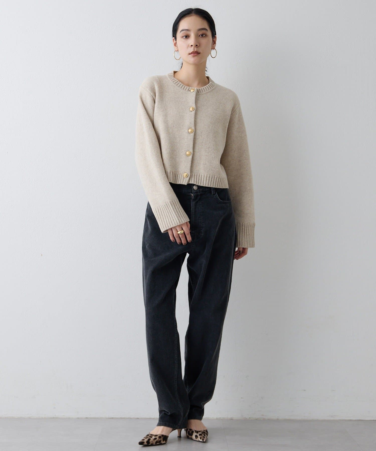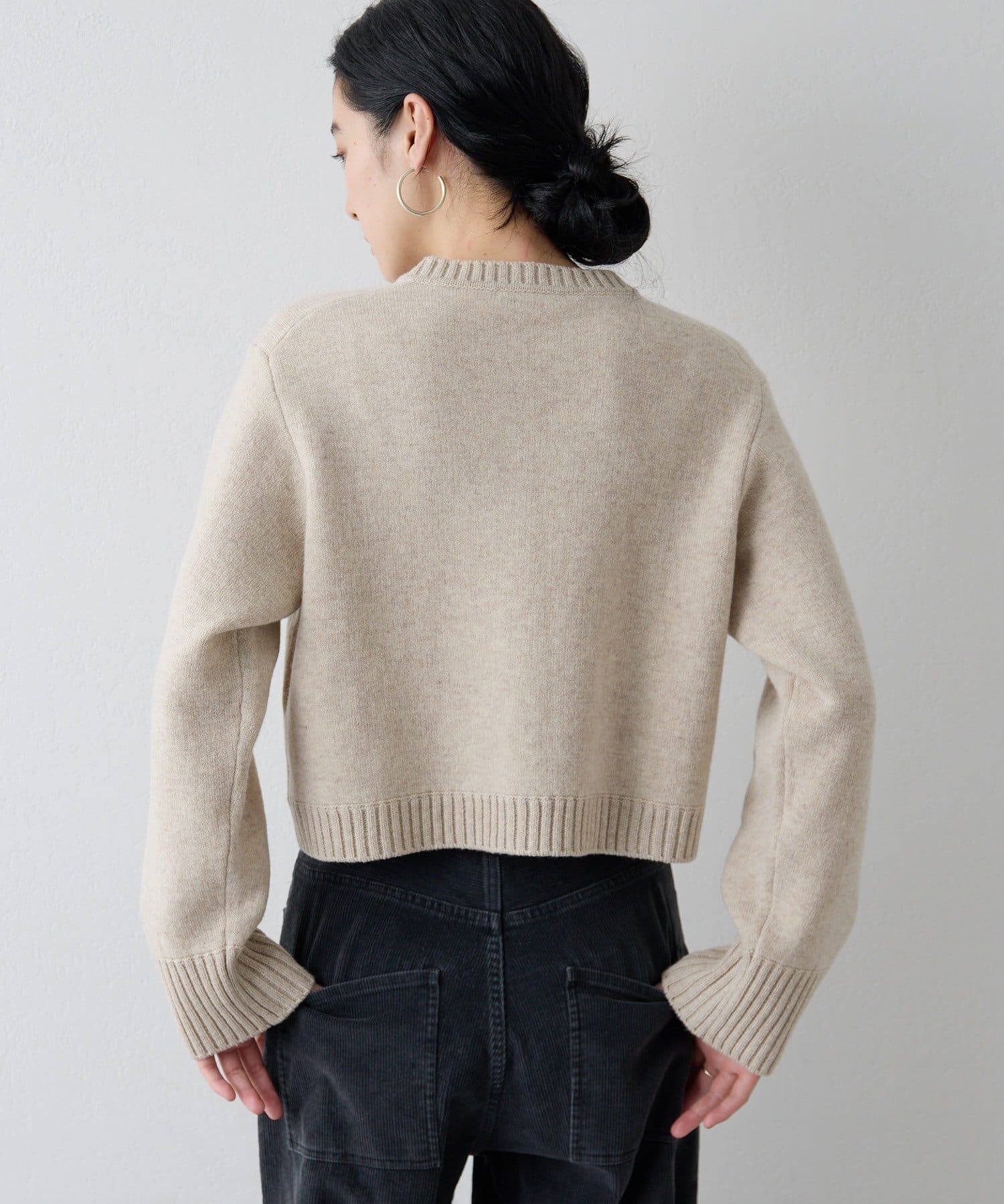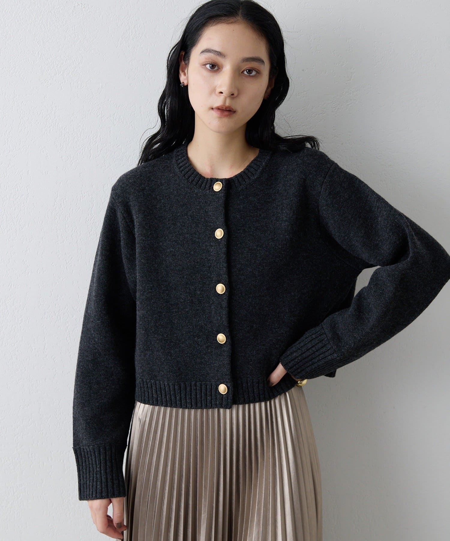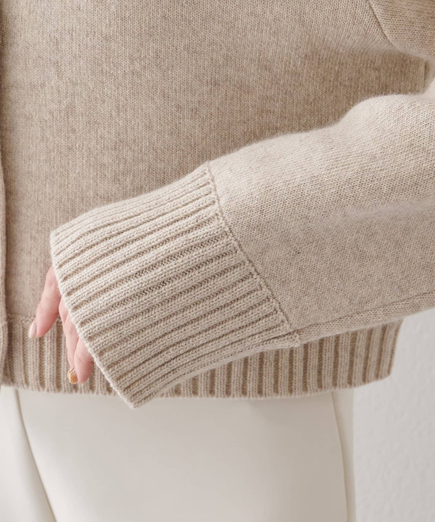 ■ウールカシミヤ混のクルーネックニットカーディガン。