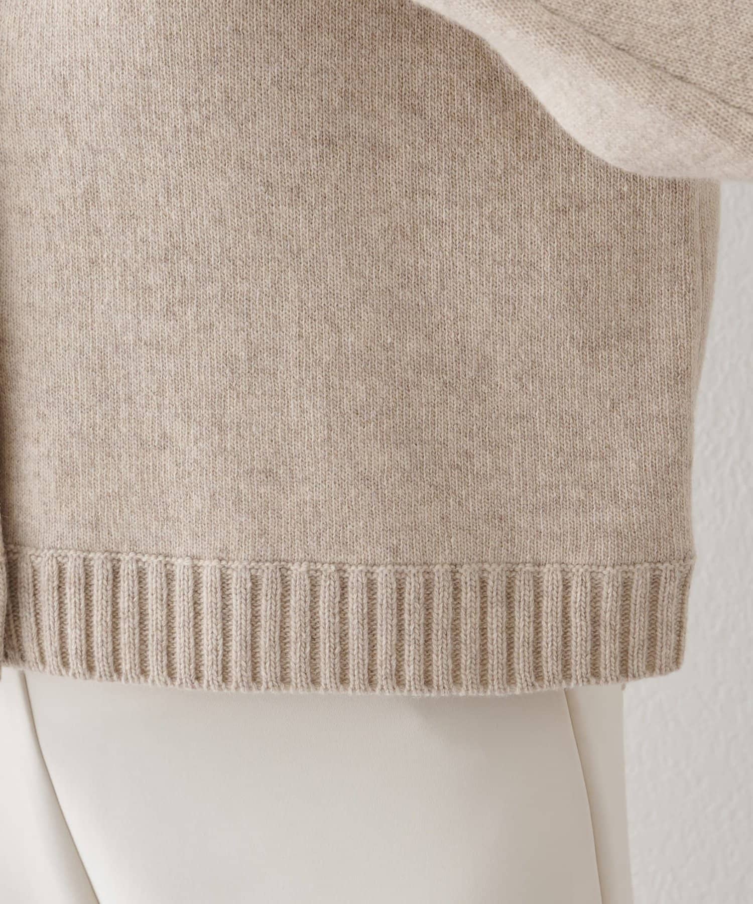 ■編地は接結編みにすることで立体感が生まれ、カジュアルながらも大人の定番ニットに。