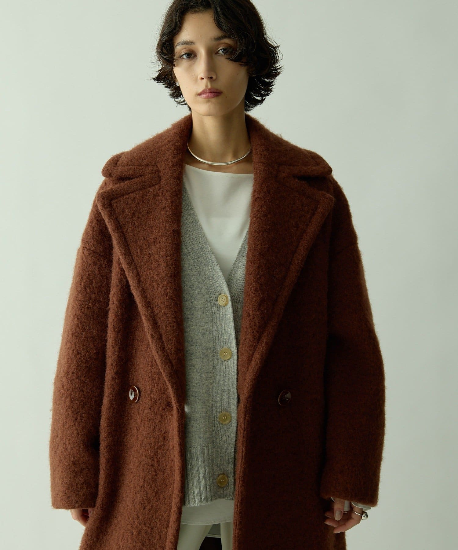 ■長すぎず短すぎない程よい着丈が様々なスタイリングに合わせやすく、デイリーにさらりと羽織れるアイテム。