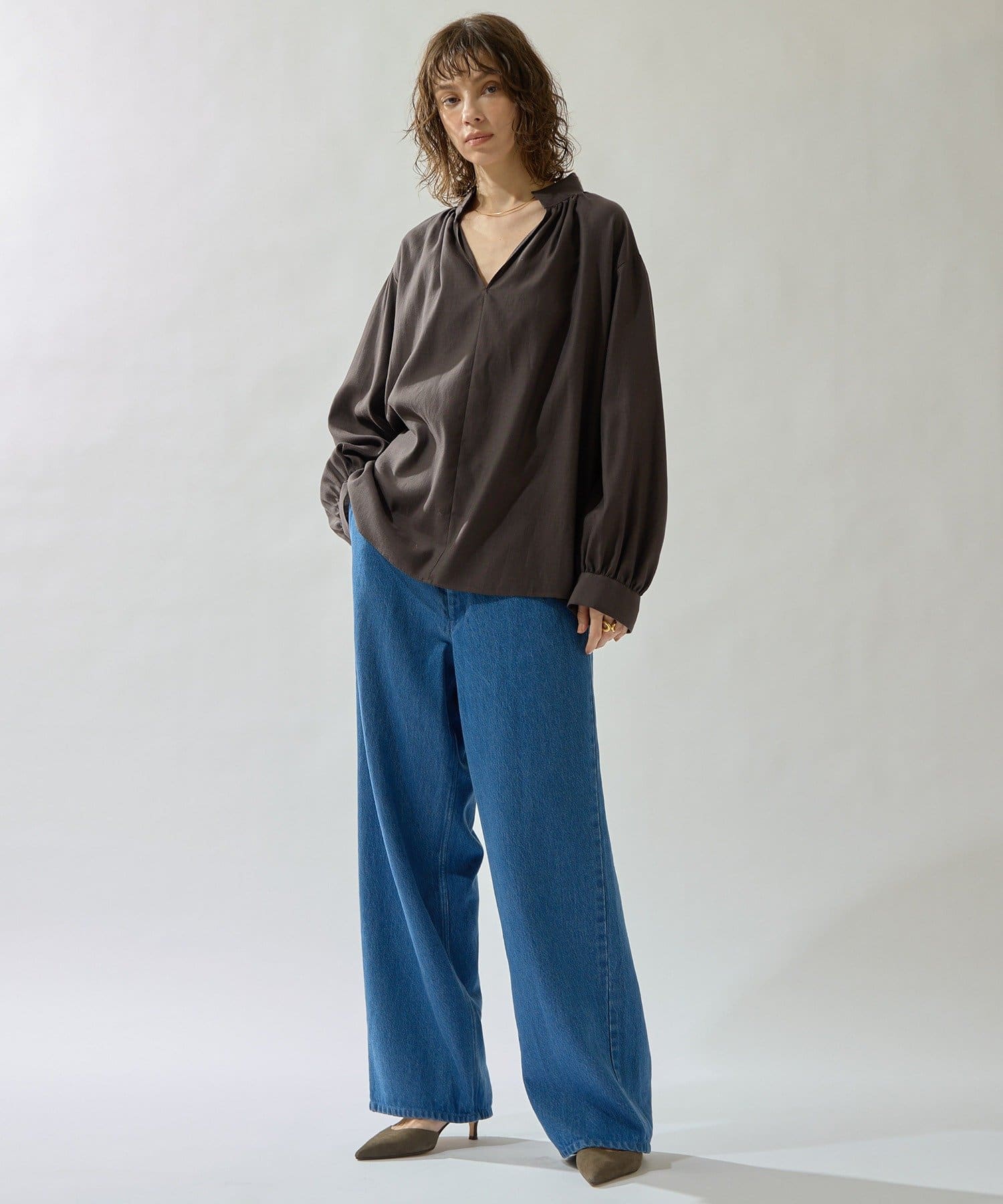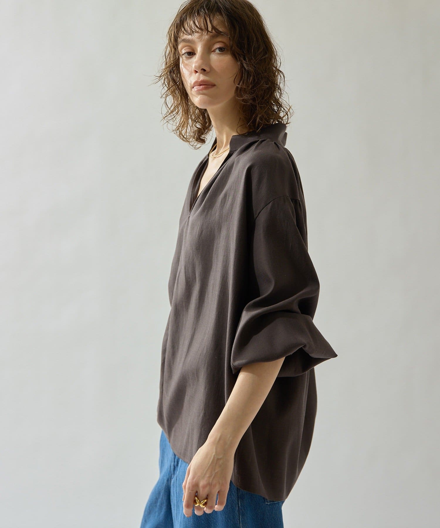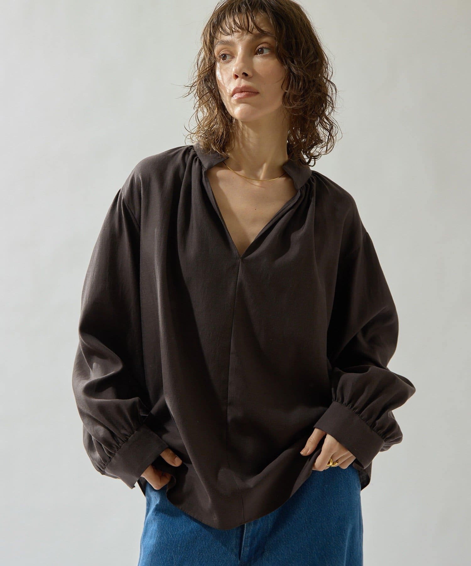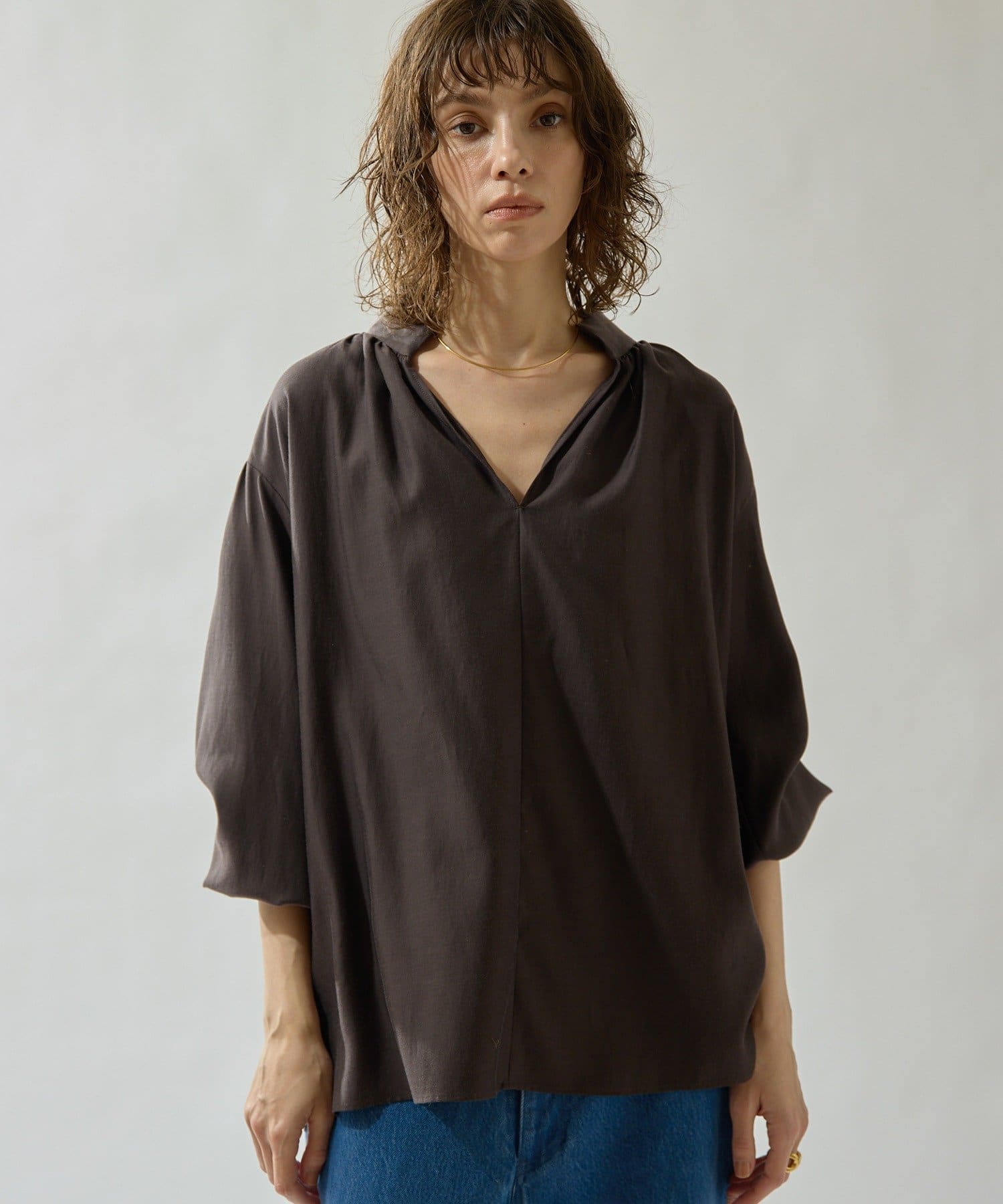 • Drawing Numbers(ドローイングナンバーズ) コットンキュプラビエラスキッパーブラウス